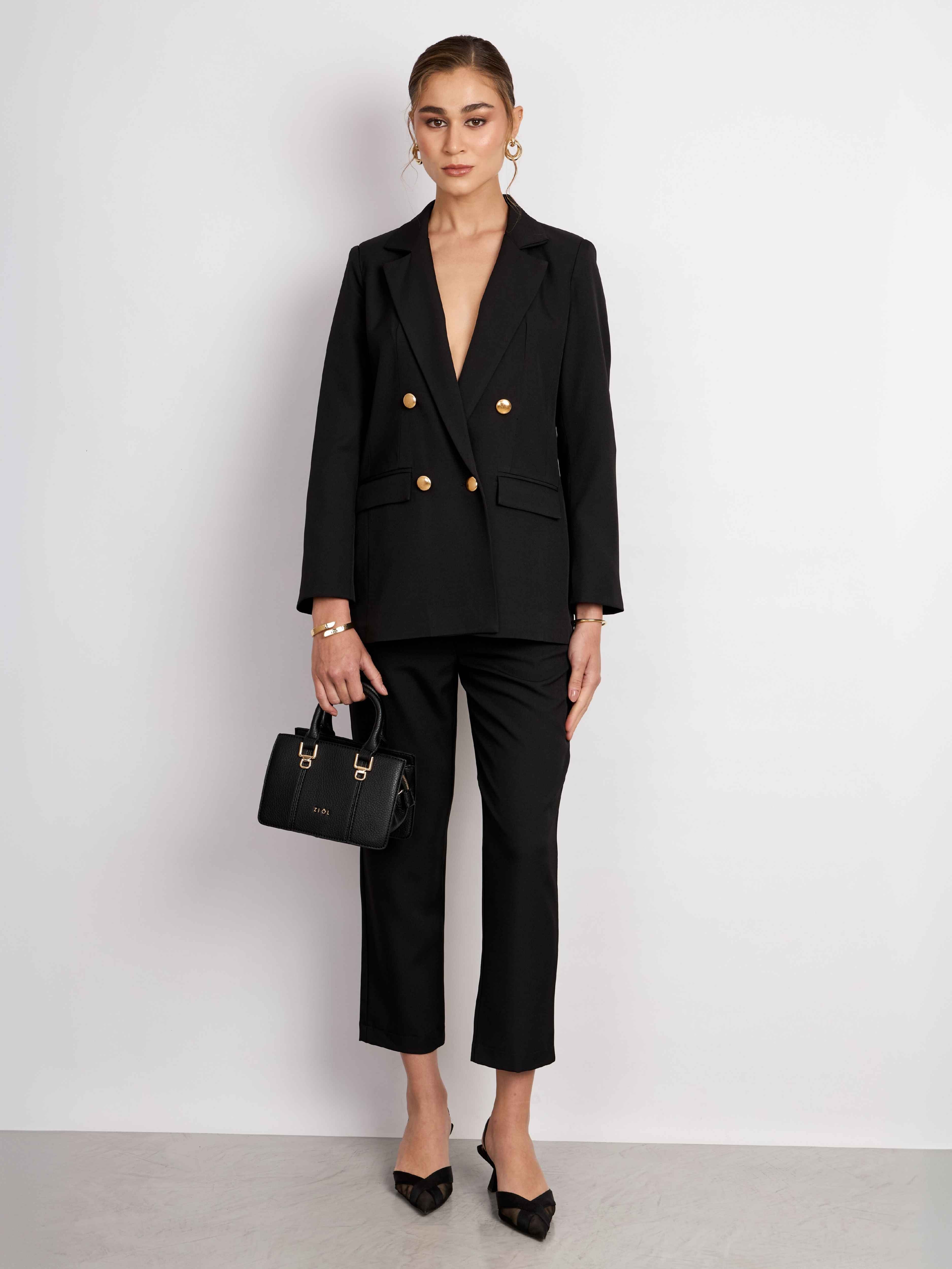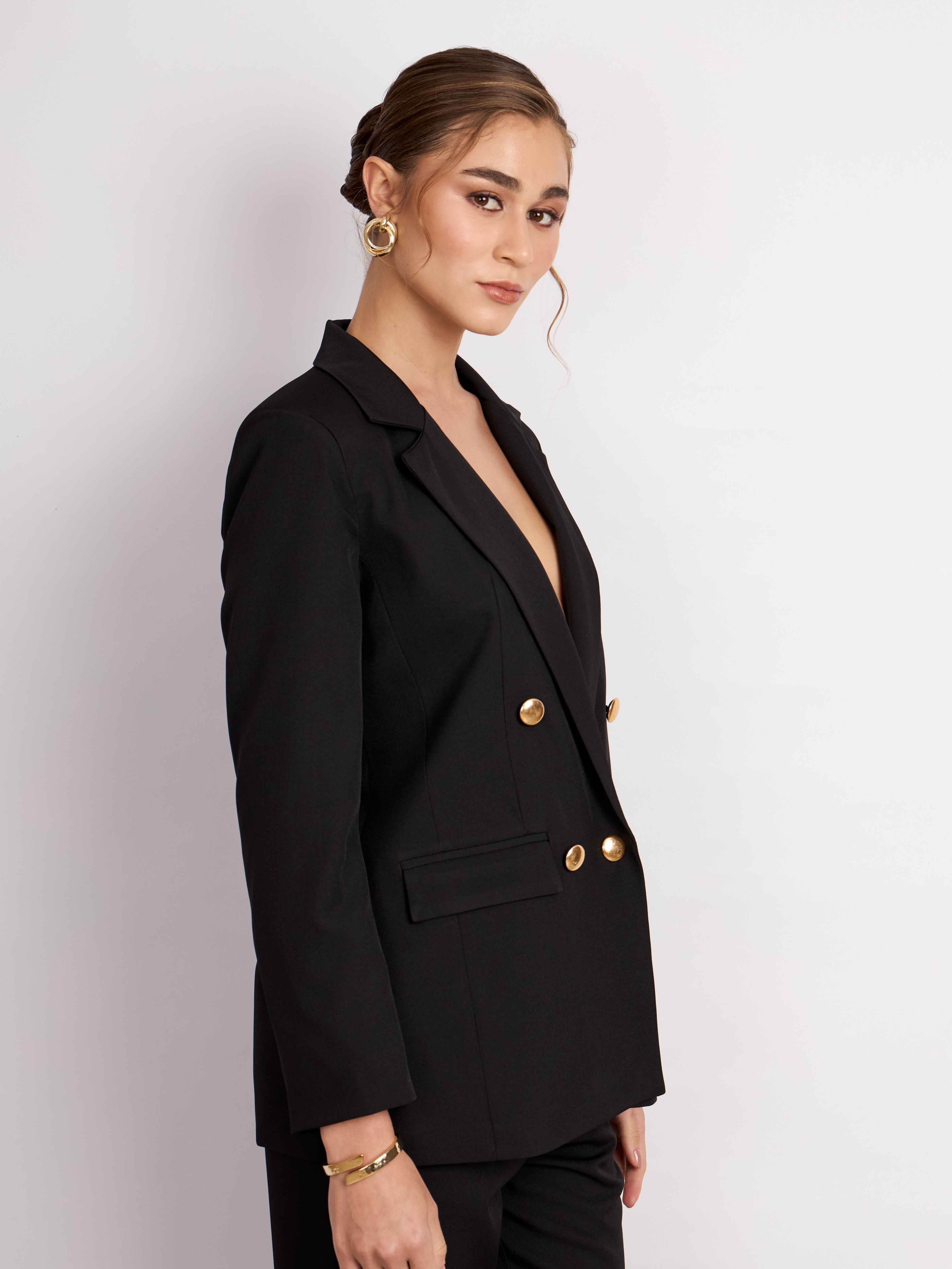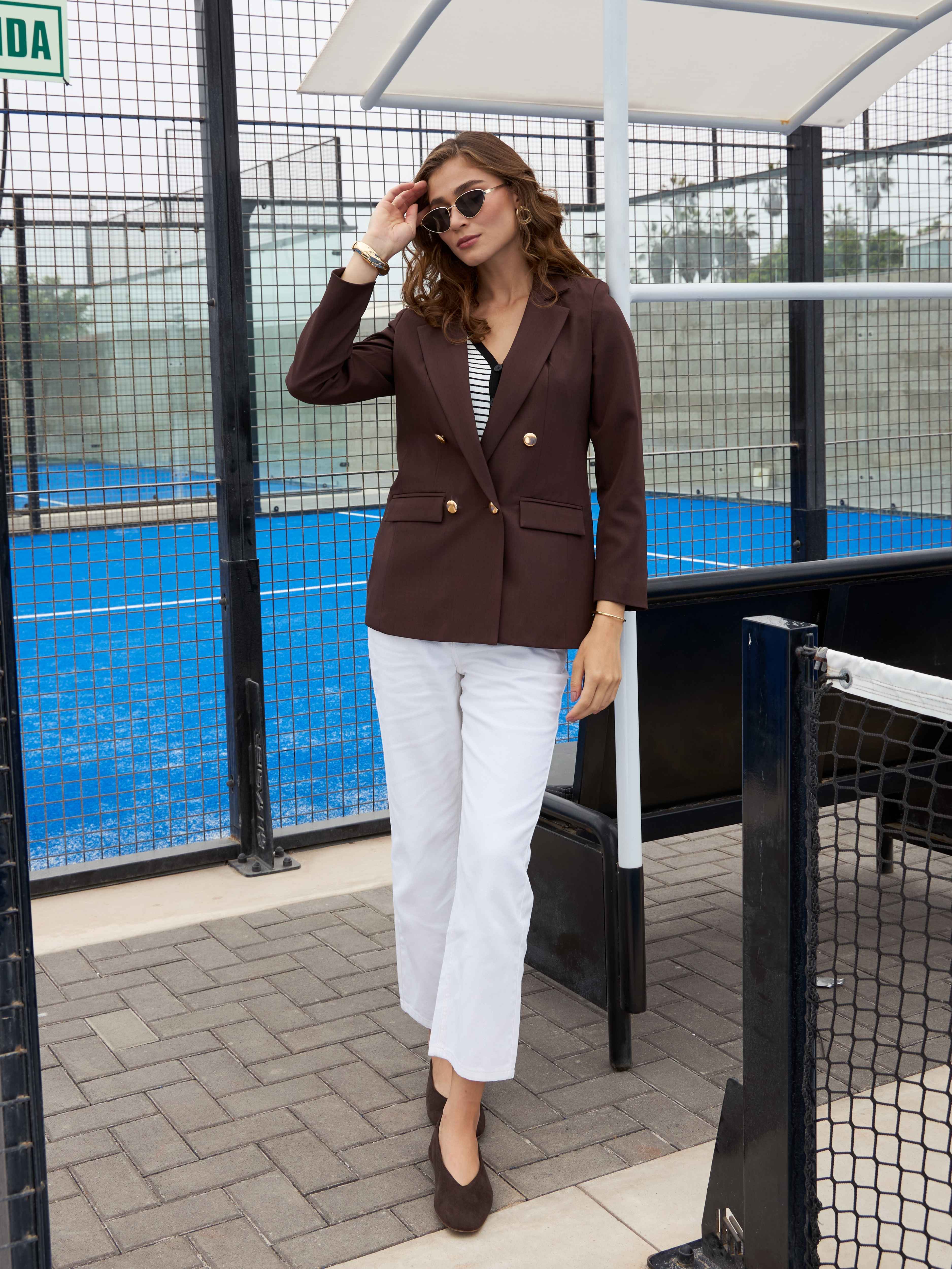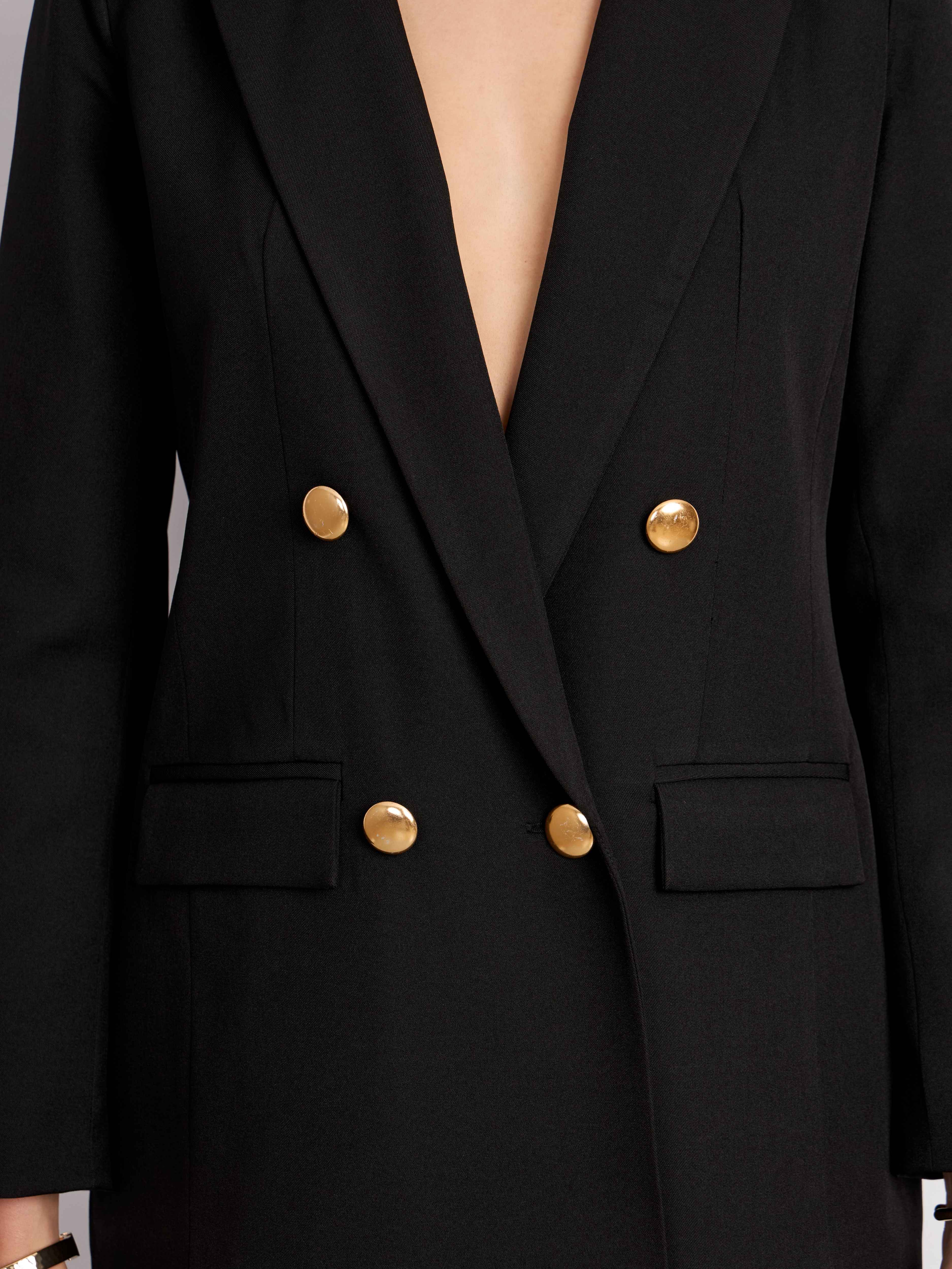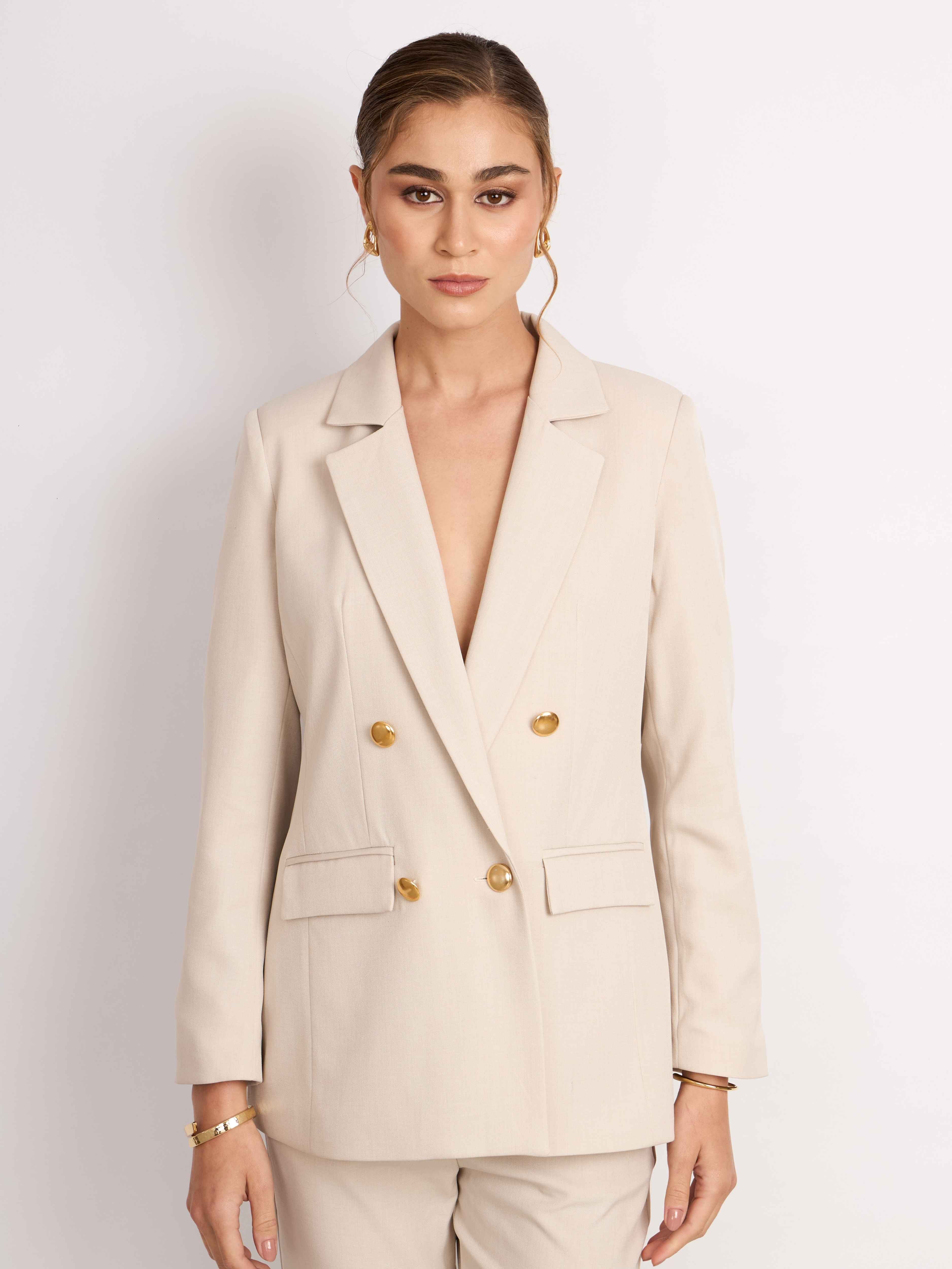 Blazer largo con fit regular, lleva solapa con muesca. Cuenta con doble botonadura en la parte delantera y bolsillos amplios estilo sastre. Versátil para cualquier temporada. Combínalo con el Pantalón Gales.