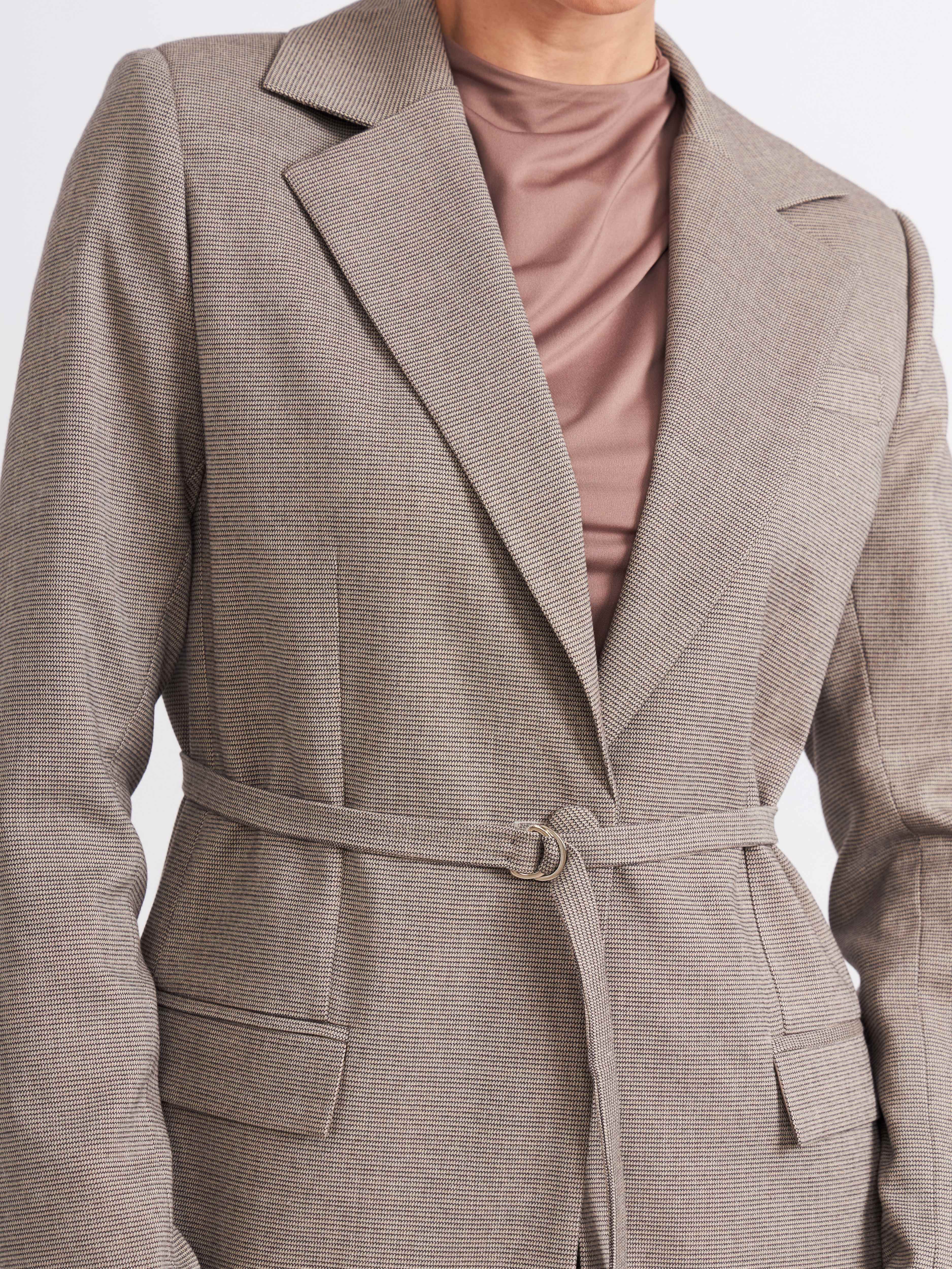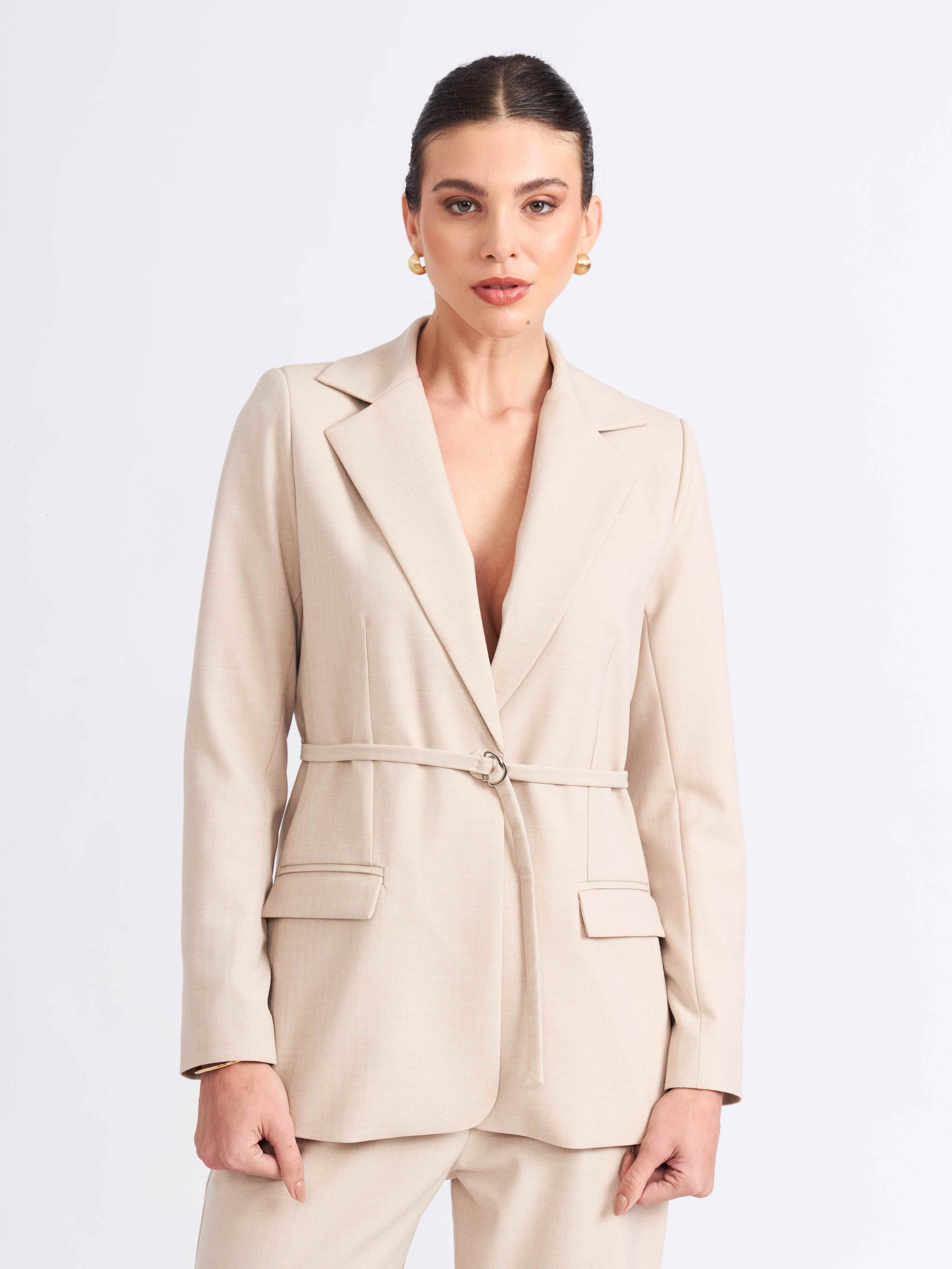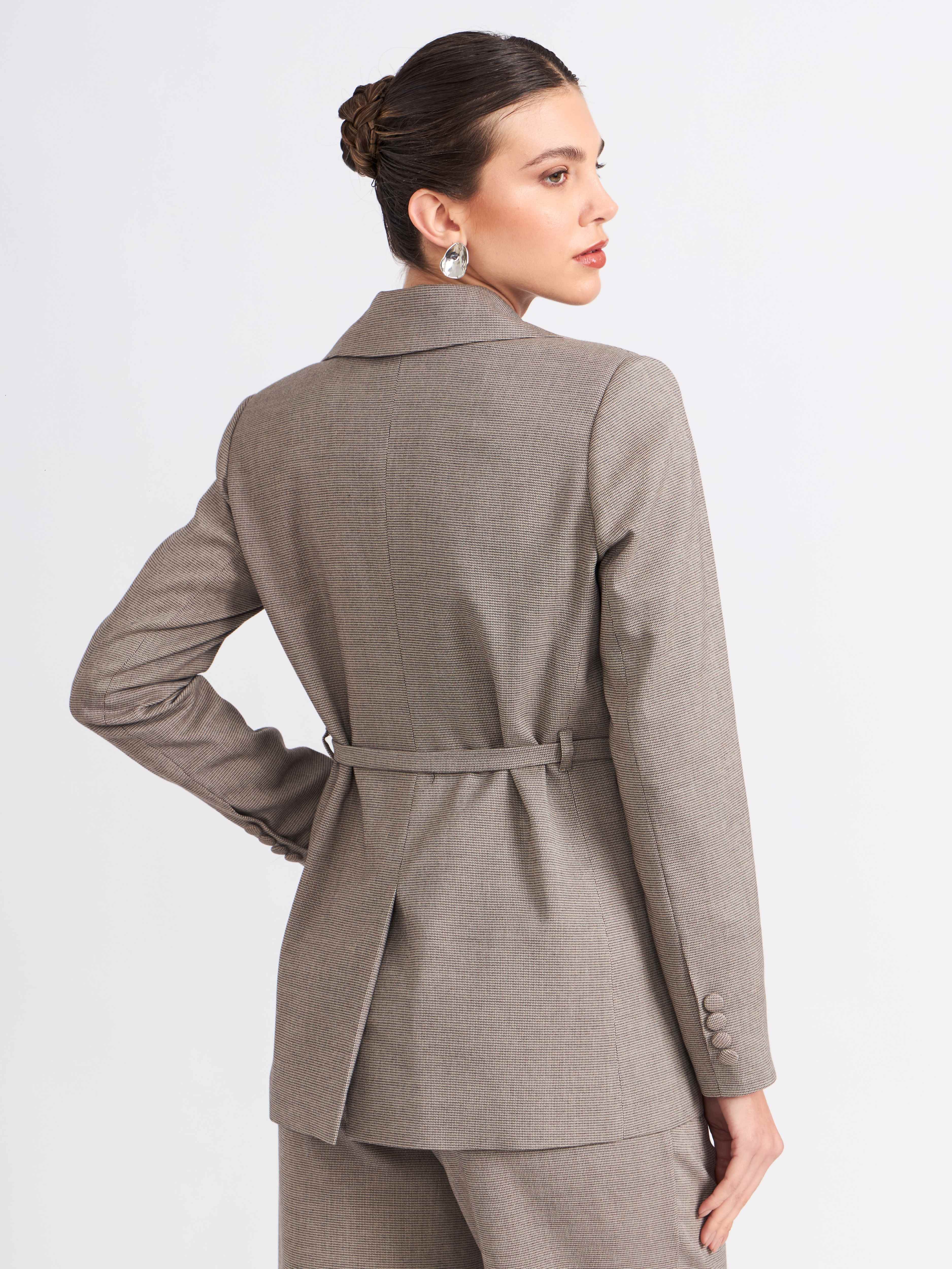 Blazer cruzado con bolsillos delanteros con solapa. Lazo ajustable en la cintura y botones en los puños.