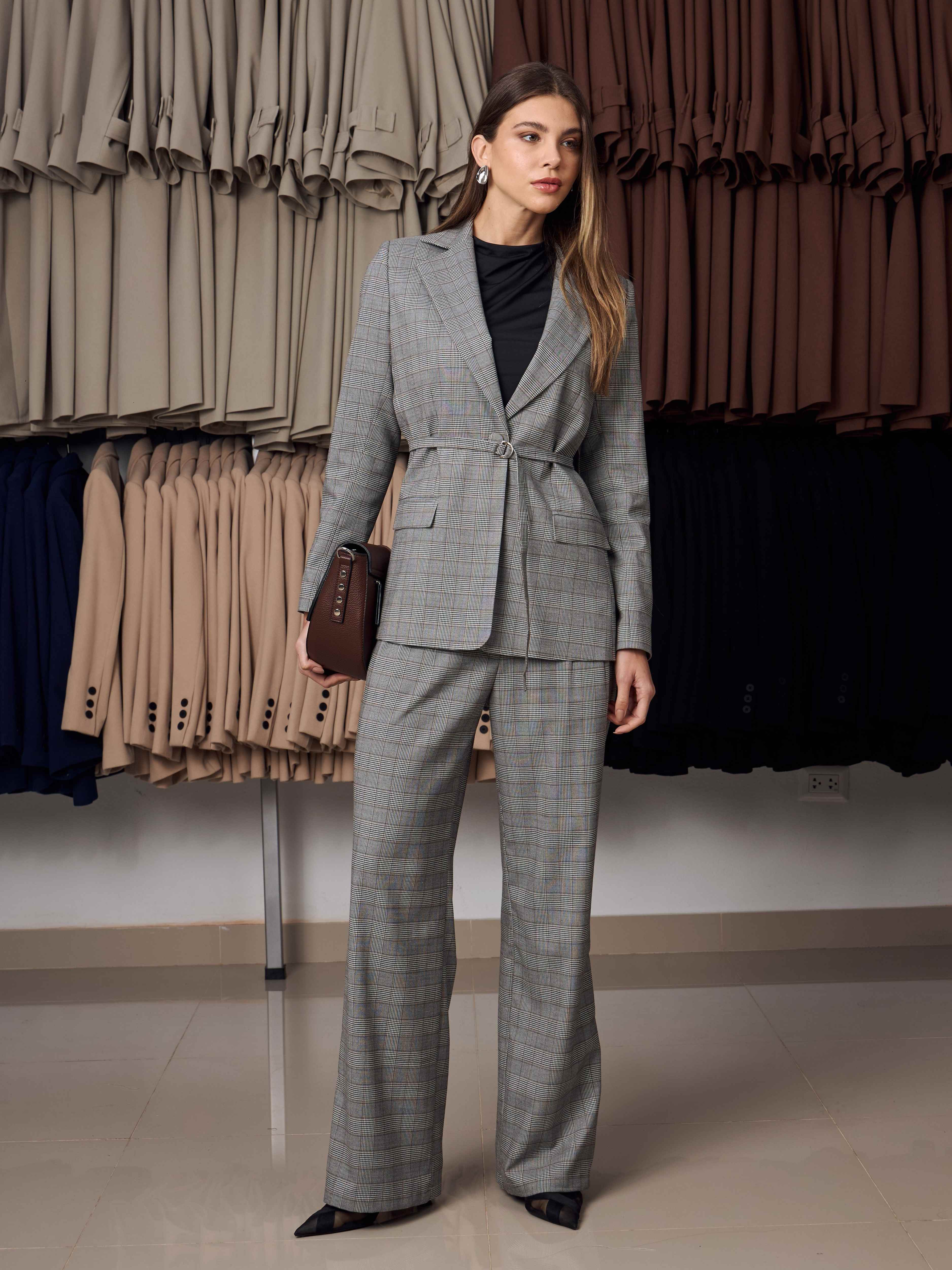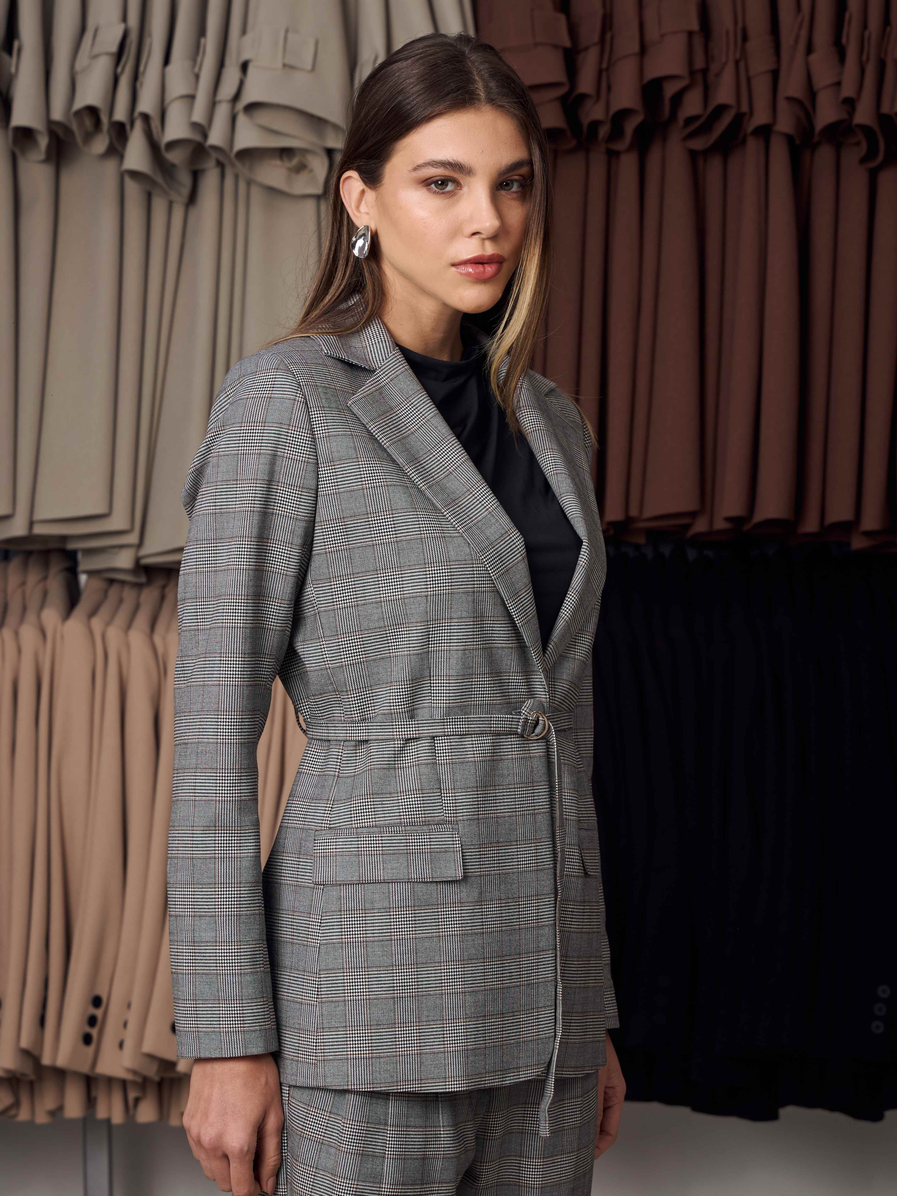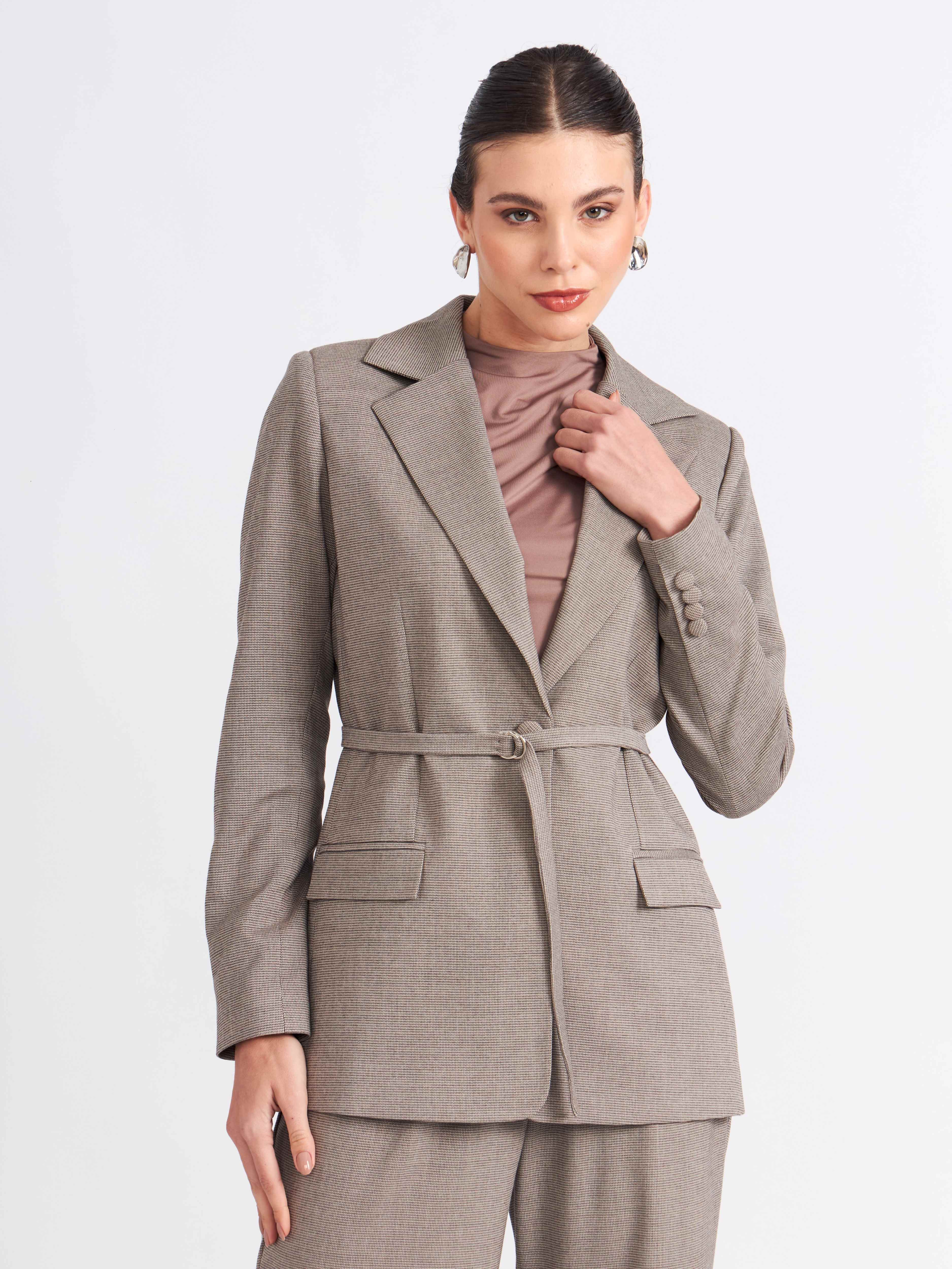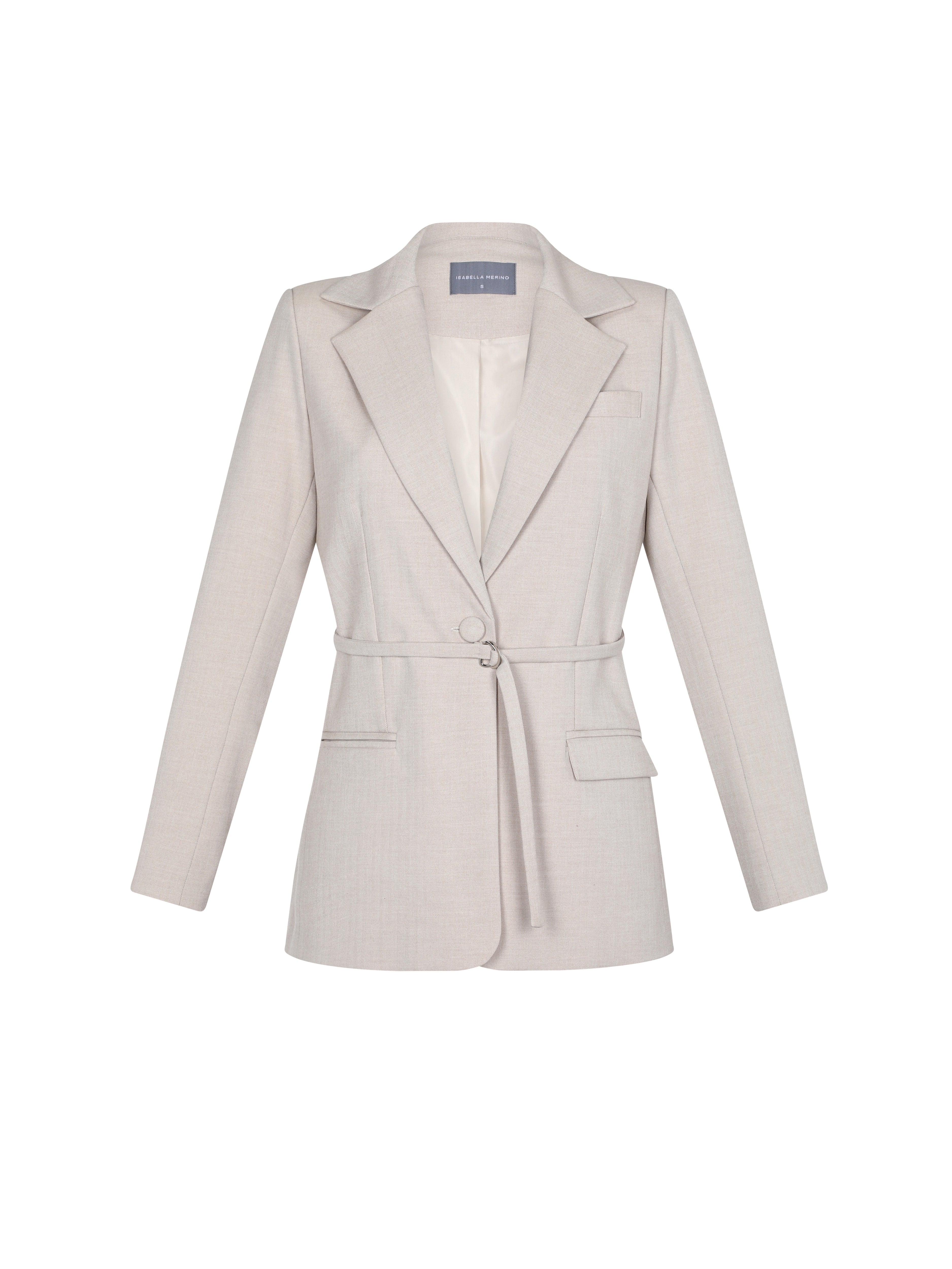 Blazer cruzado con bolsillos delanteros con solapa. Lazo ajustable en la cintura y botones en los puños.