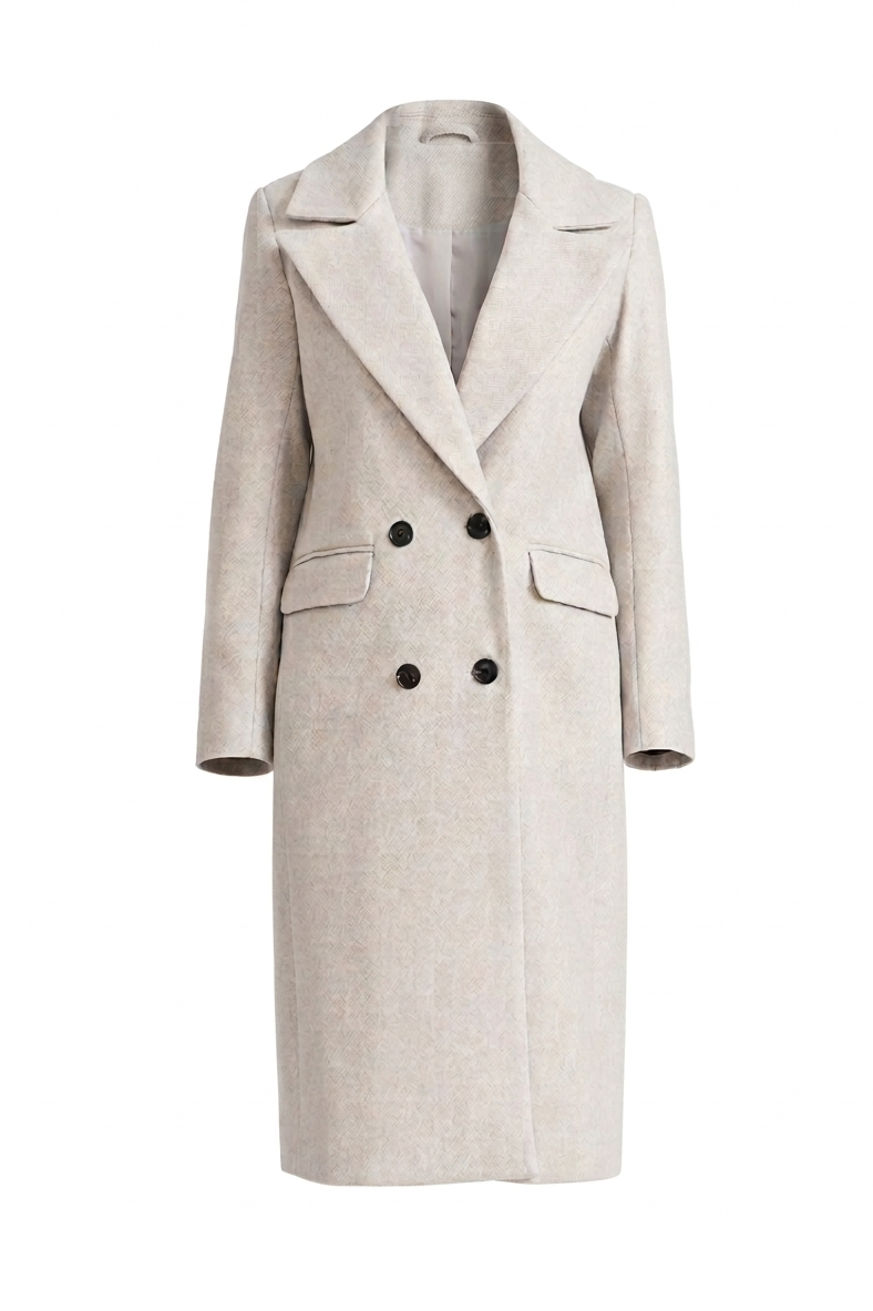 Abrigo largo cruzado fit regular. Con doble botonadura y bolsillos delanteros con solapa. Ideal para elevar todos tus looks.