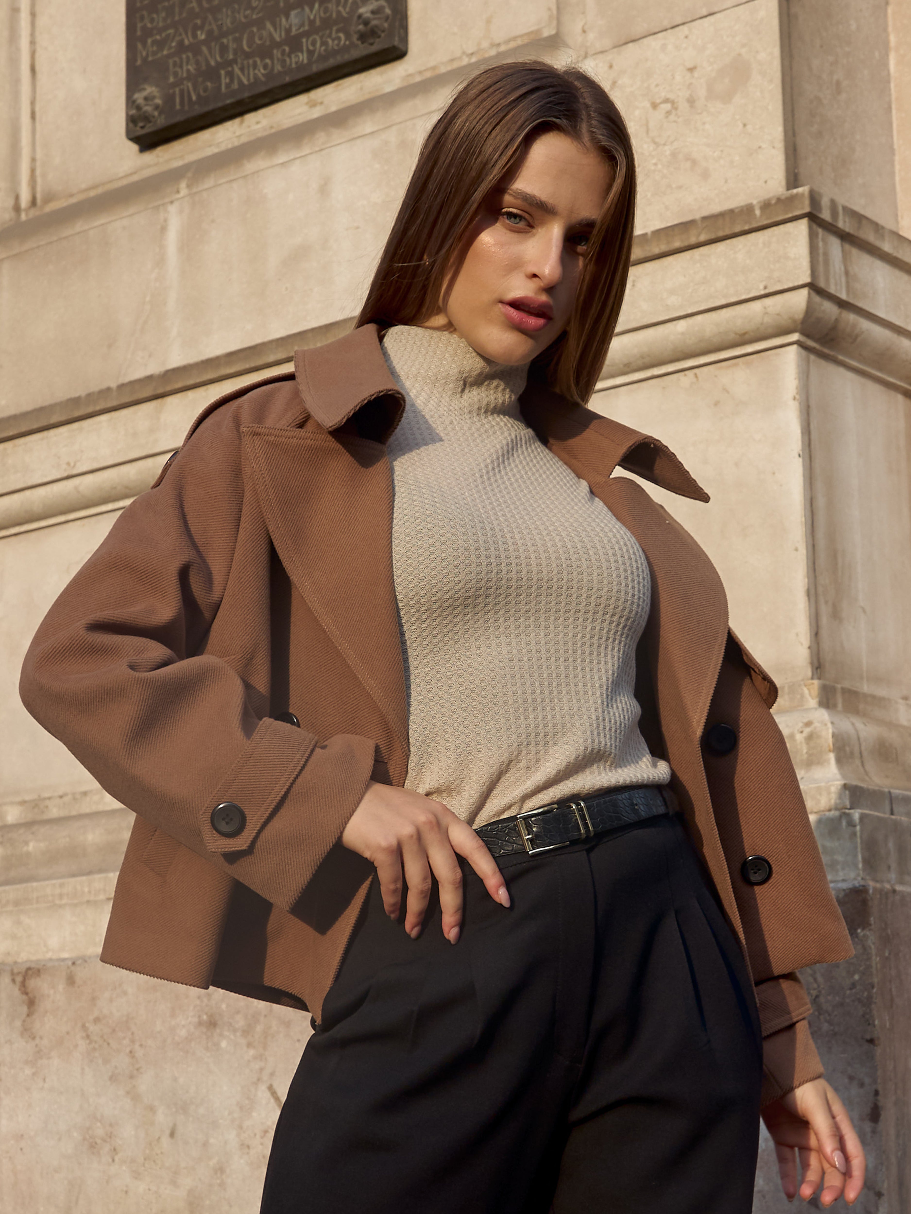Martina mide 1.65 m y luce la talla S.