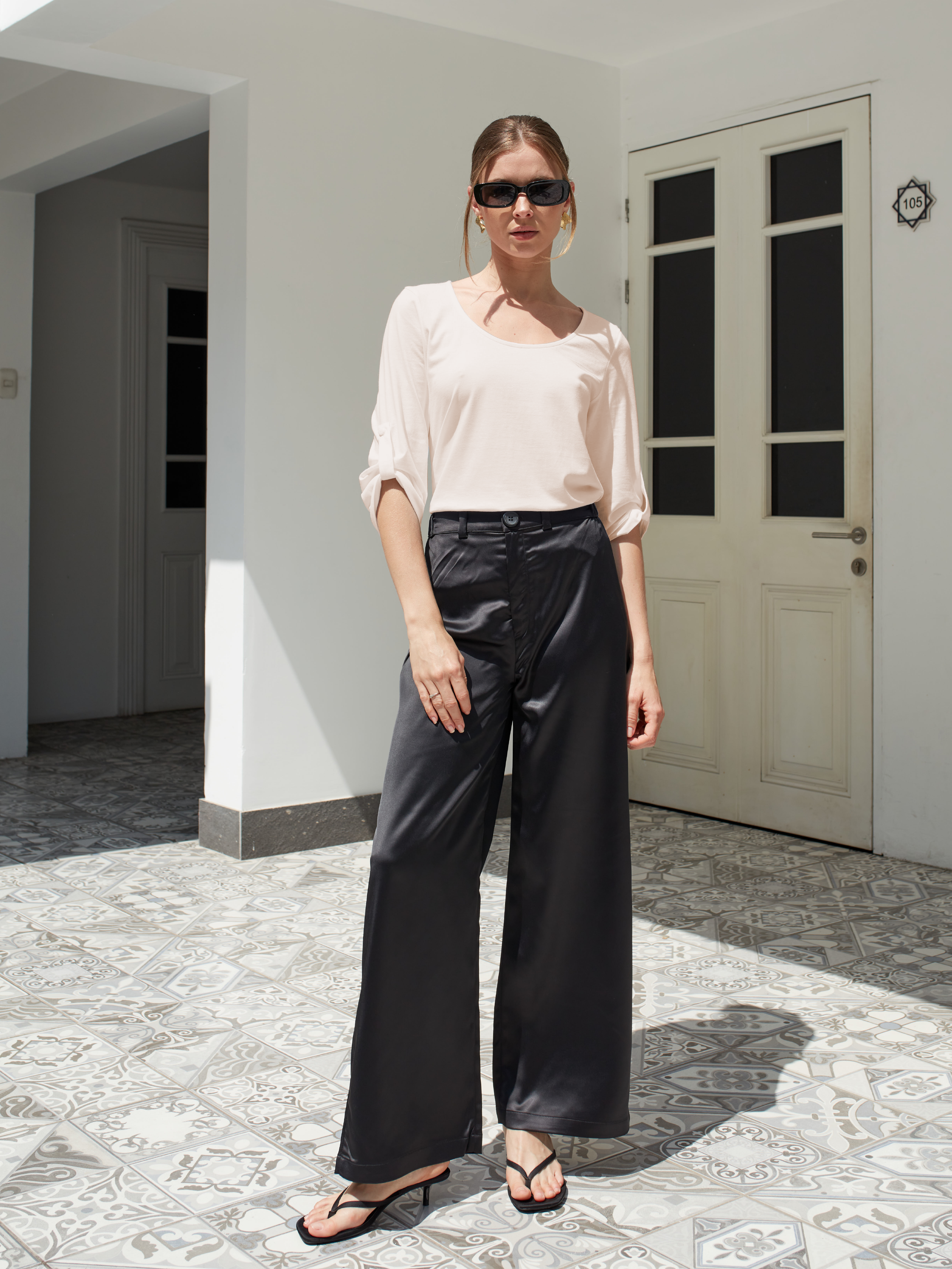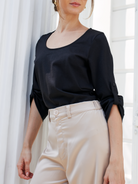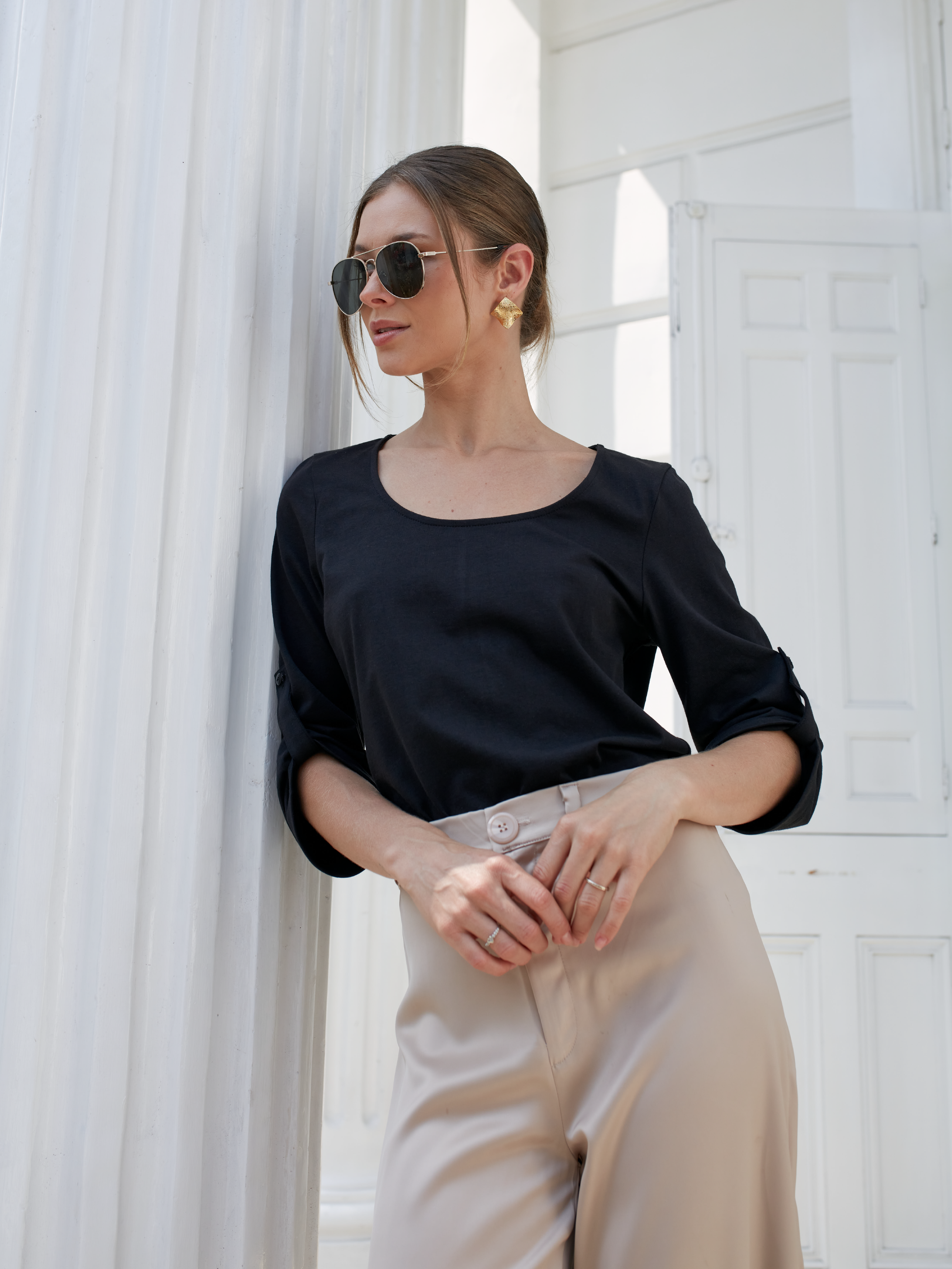 Camiseta manga 3/4 con fit holgado y mangas abotonables.