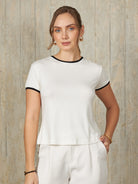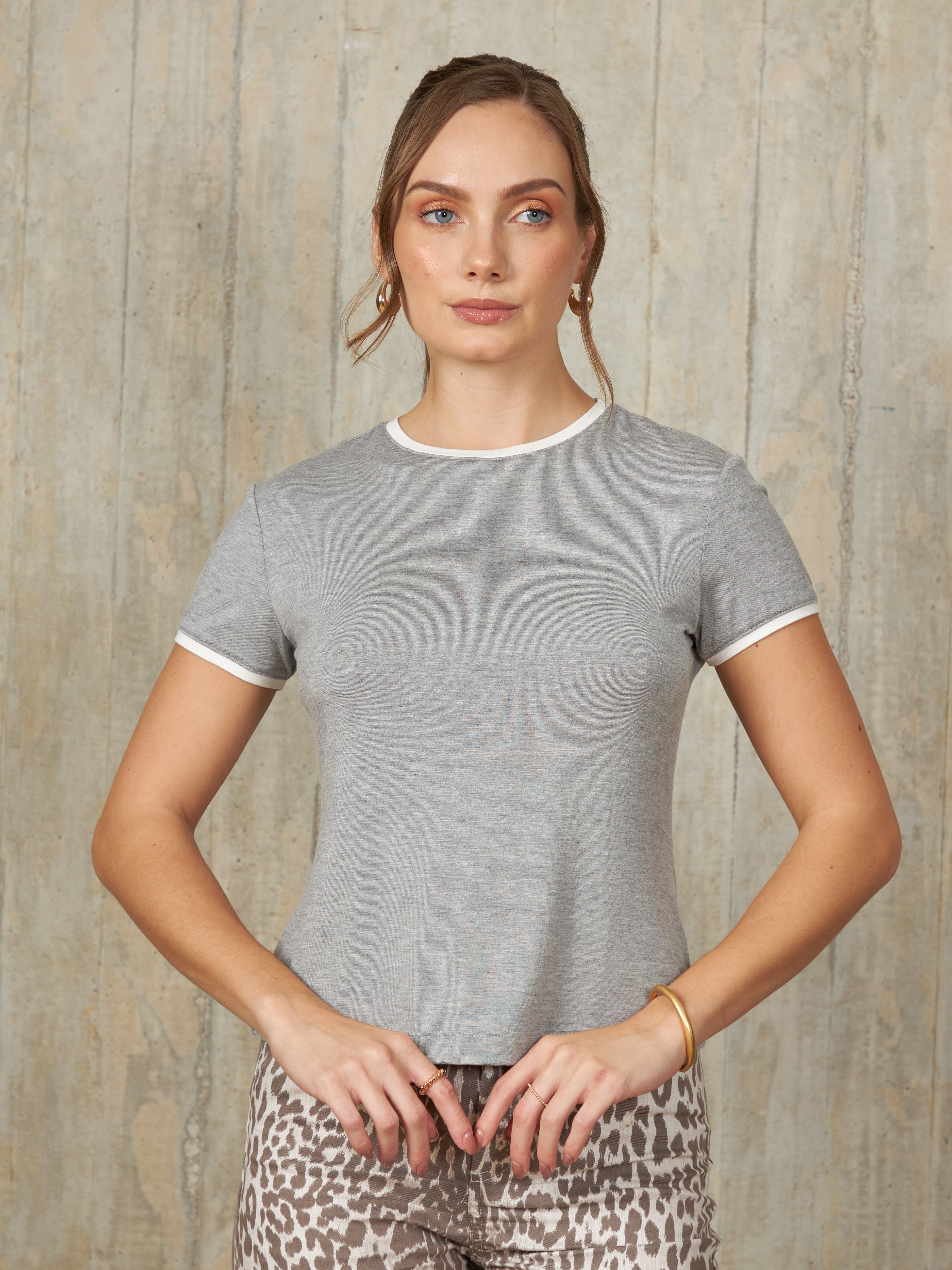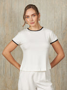 Polo básico de manga corta con corte recto y cuello redondo, diseñado para un ajuste cómodo y casual. Con un toque de color en bordes de las mangas y cuello.