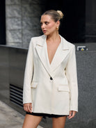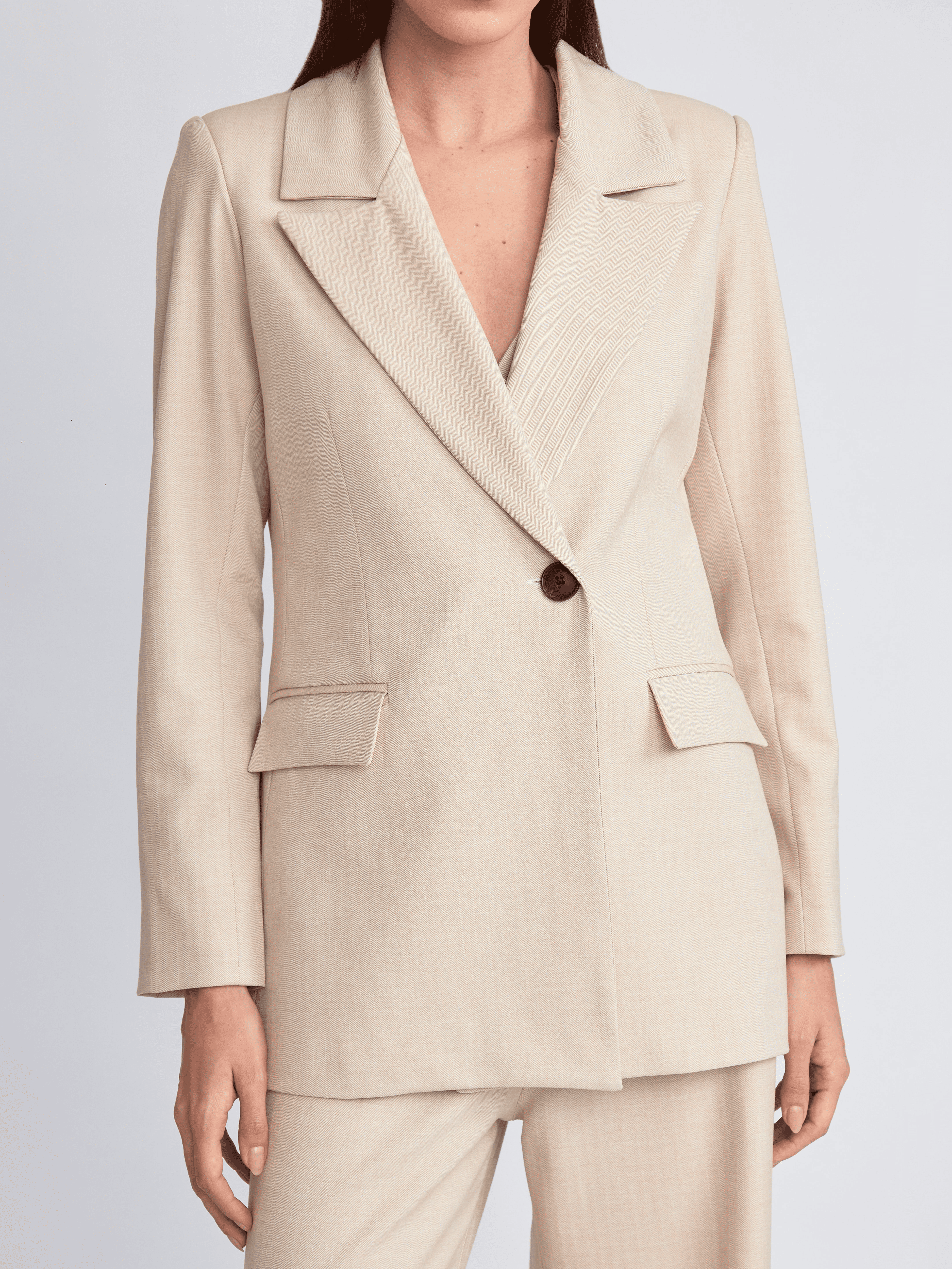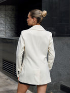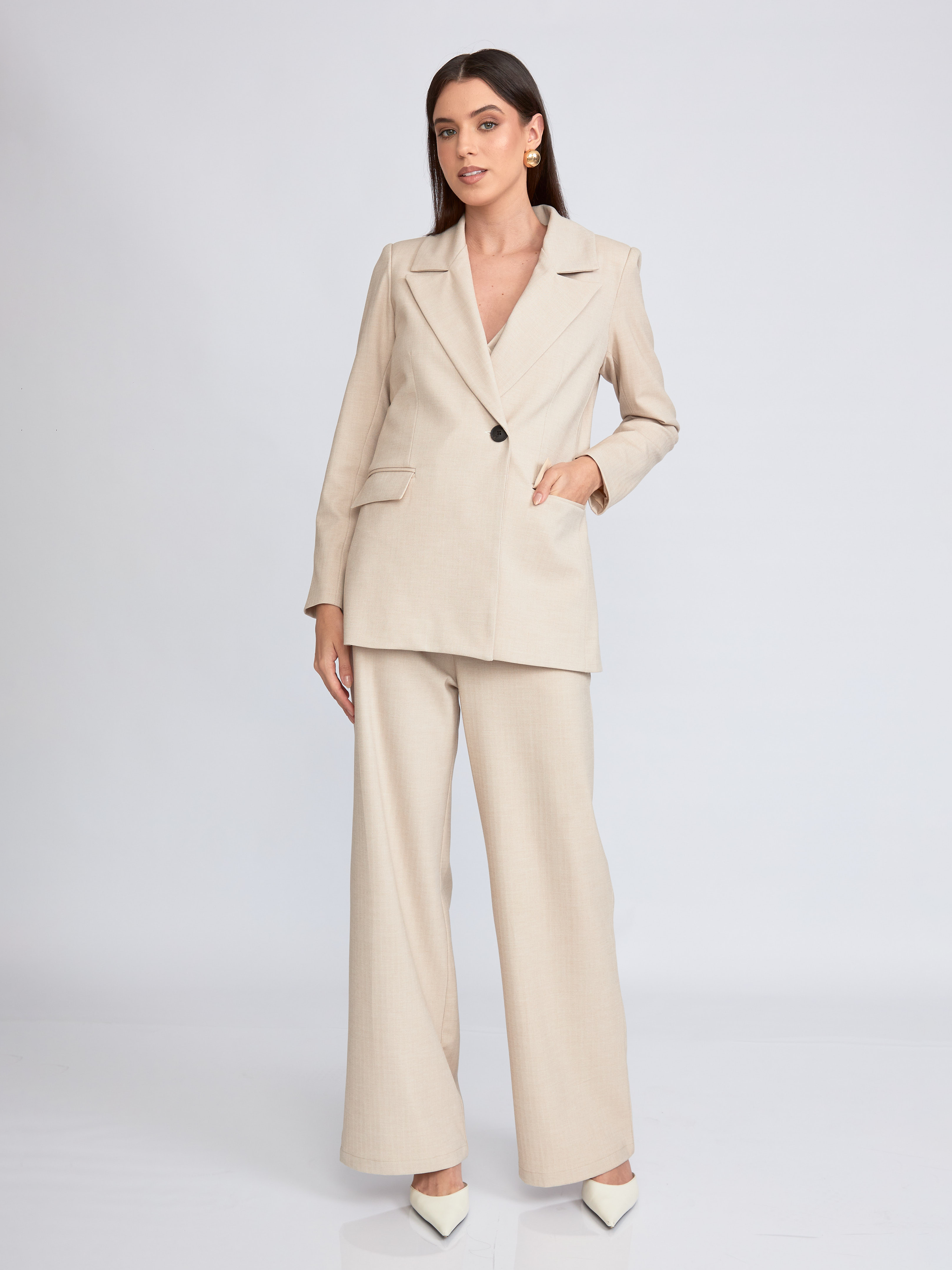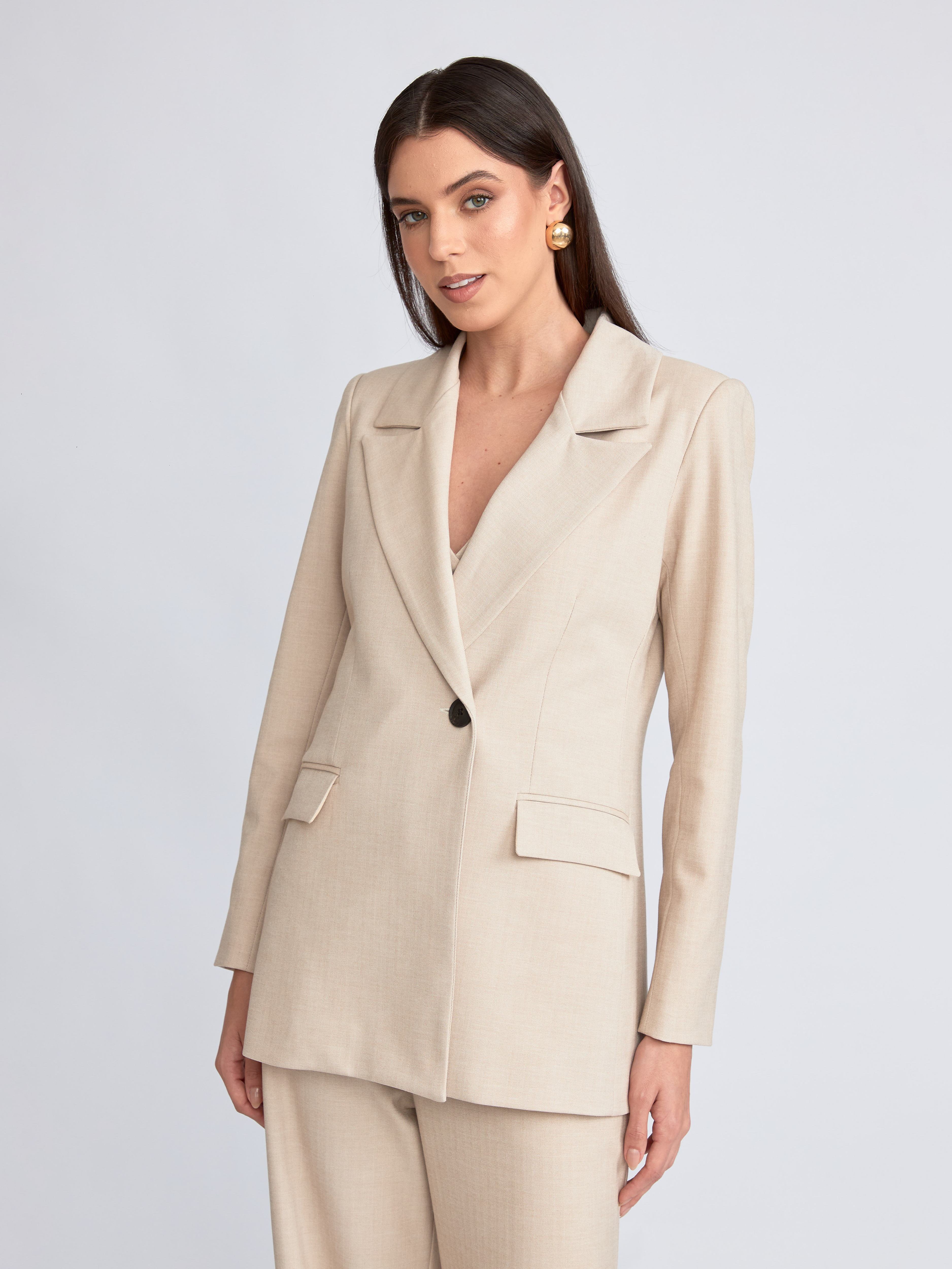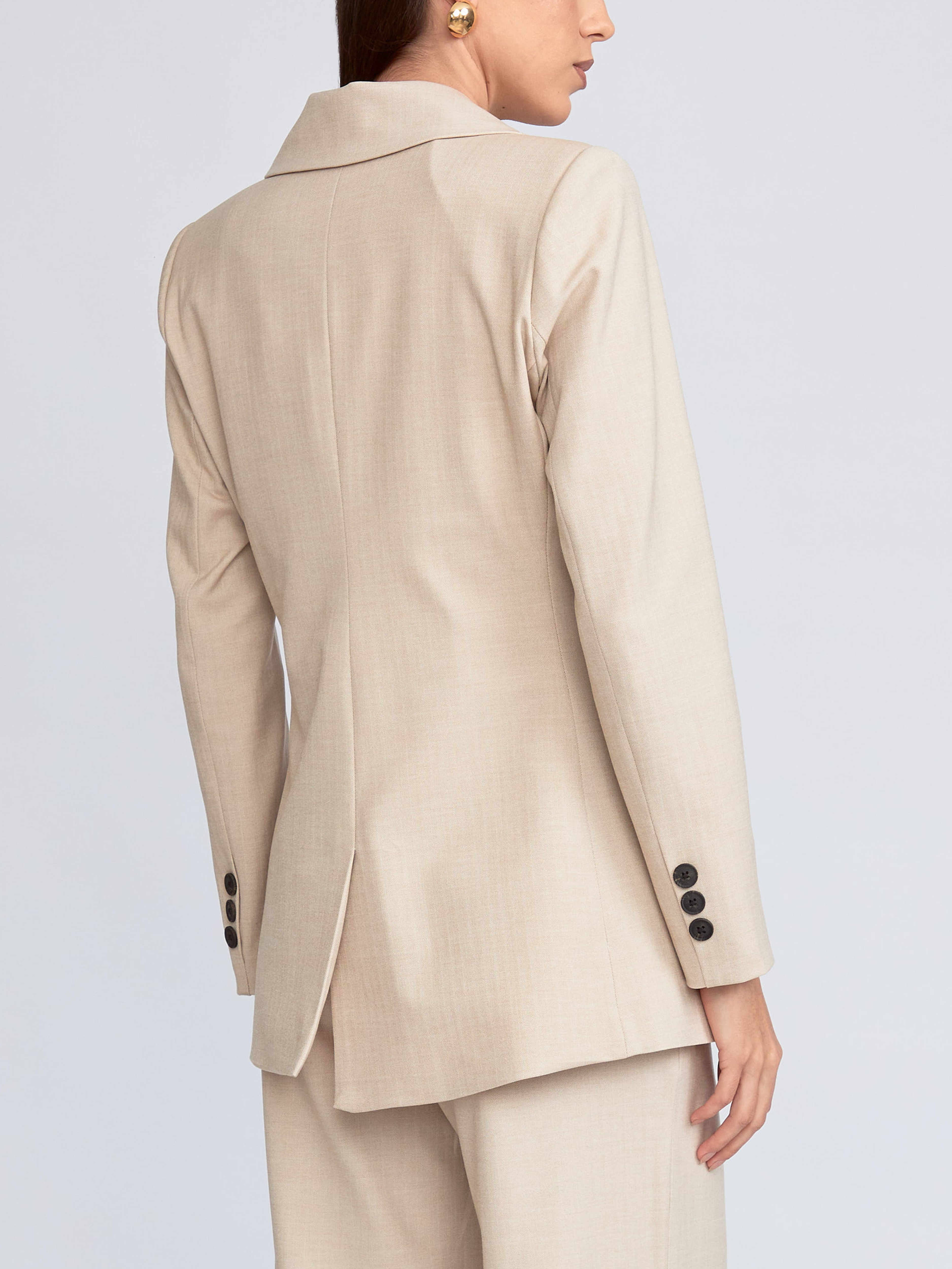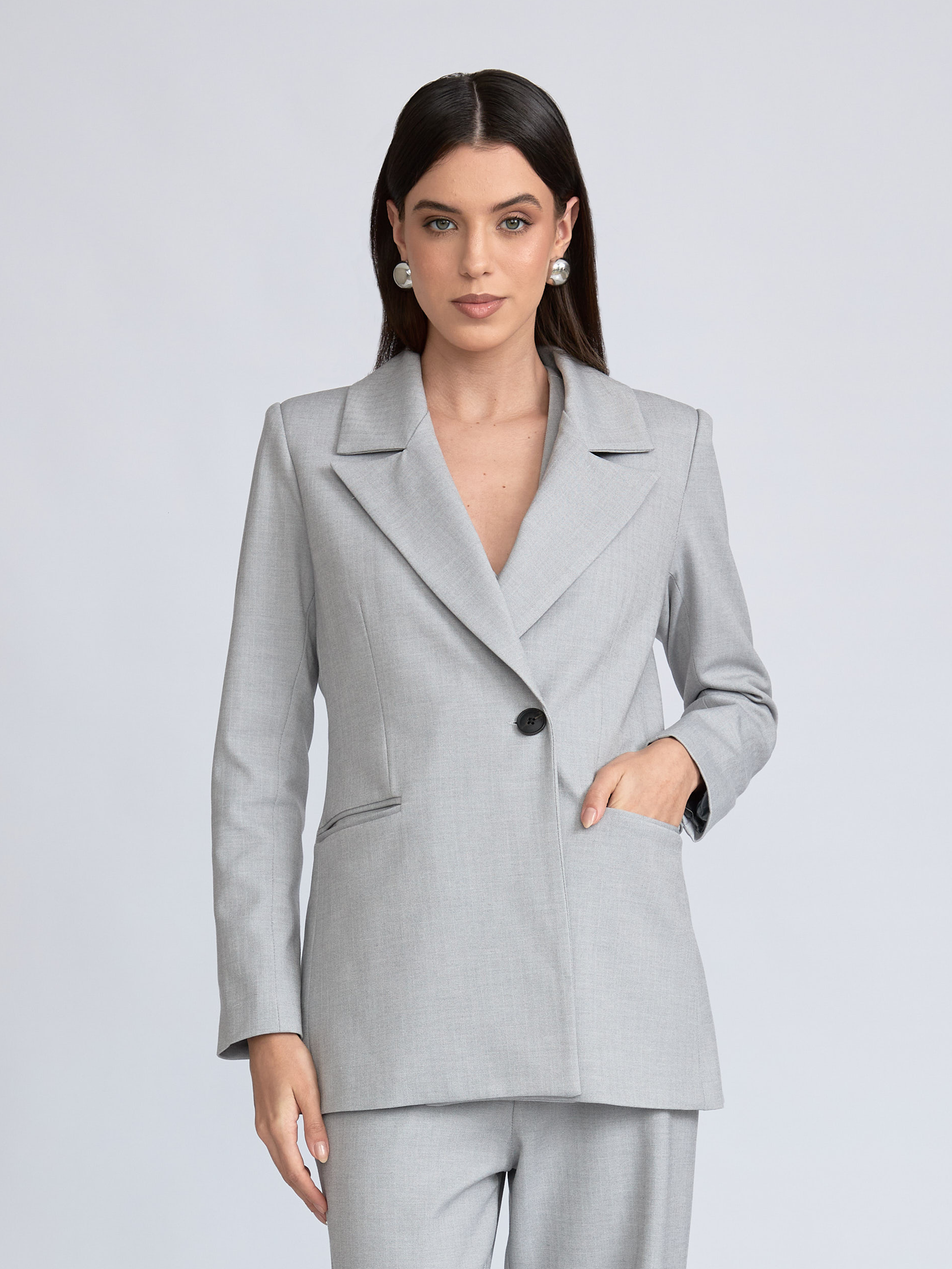 Blazer modelo cruzado con solapas y botón delantero. Bolsillos con solapa, botones en los puños y abertura en la espalda. Con forro.