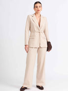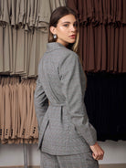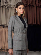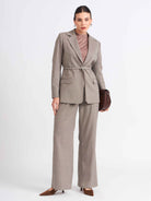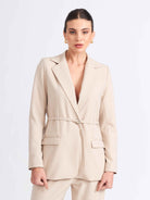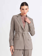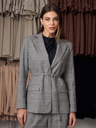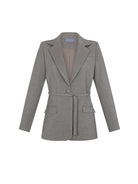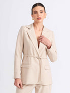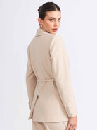 Blazer cruzado con bolsillos delanteros con solapa. Lazo ajustable en la cintura y botones en los puños.
