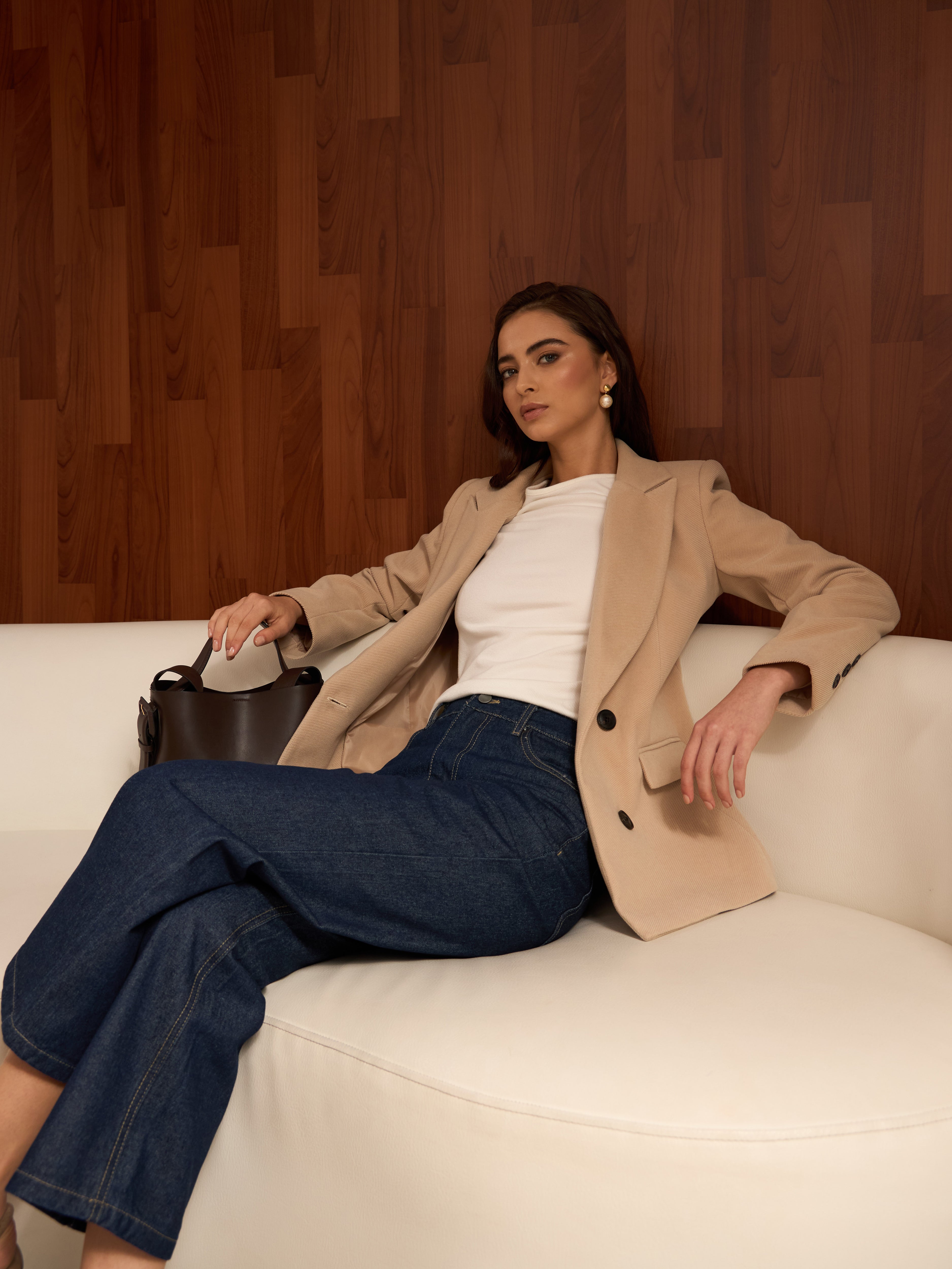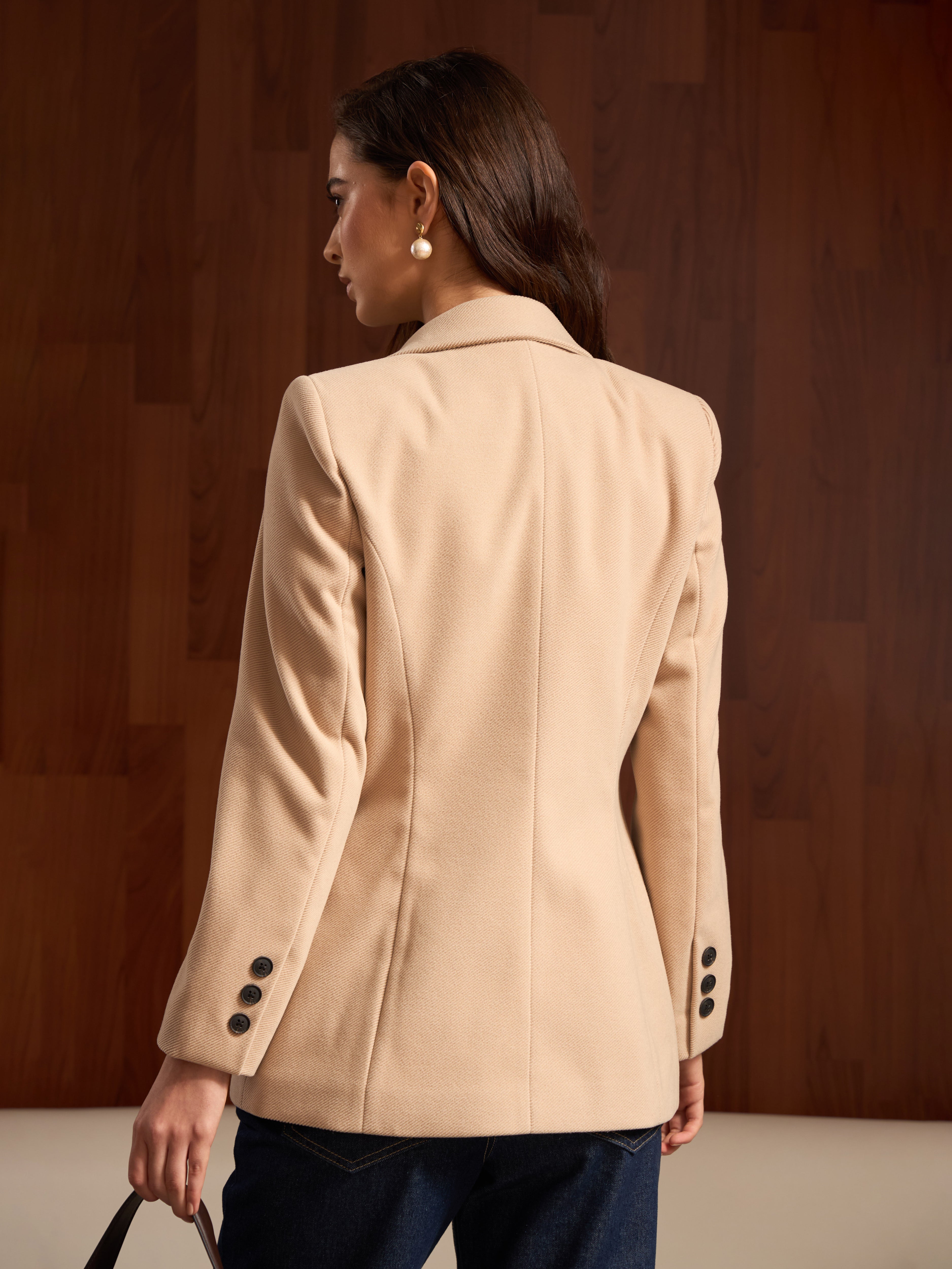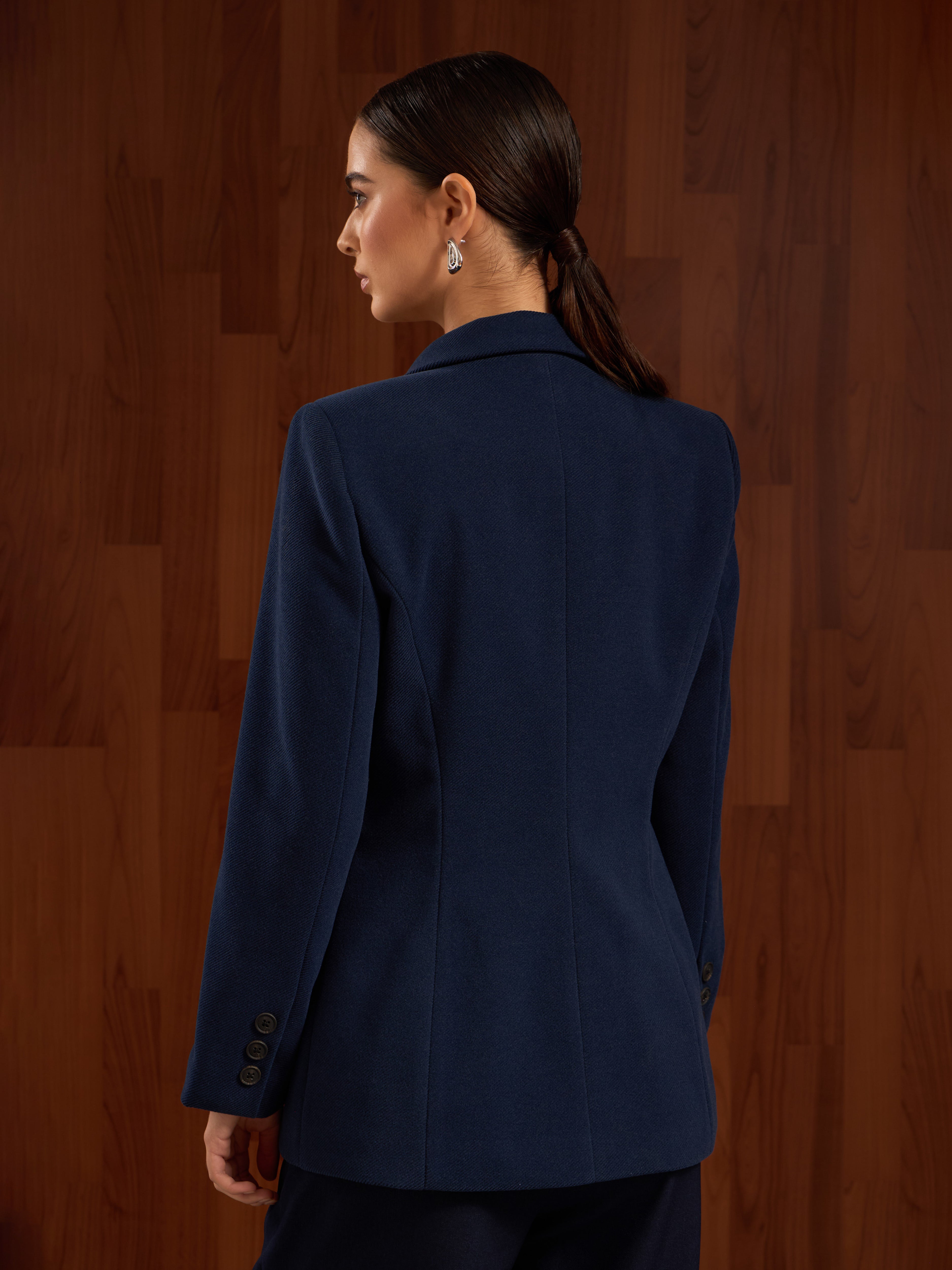 Blazer de entalle con doble pinza, diseñado para ofrecer un ajuste perfecto. Corte semi ceñido en la cintura aporta elegancia, mientras que las mangas rectas y el ajuste de dos botones brindan un toque moderno y sofisticado. Perfecto para crear un look profesional con estilo.