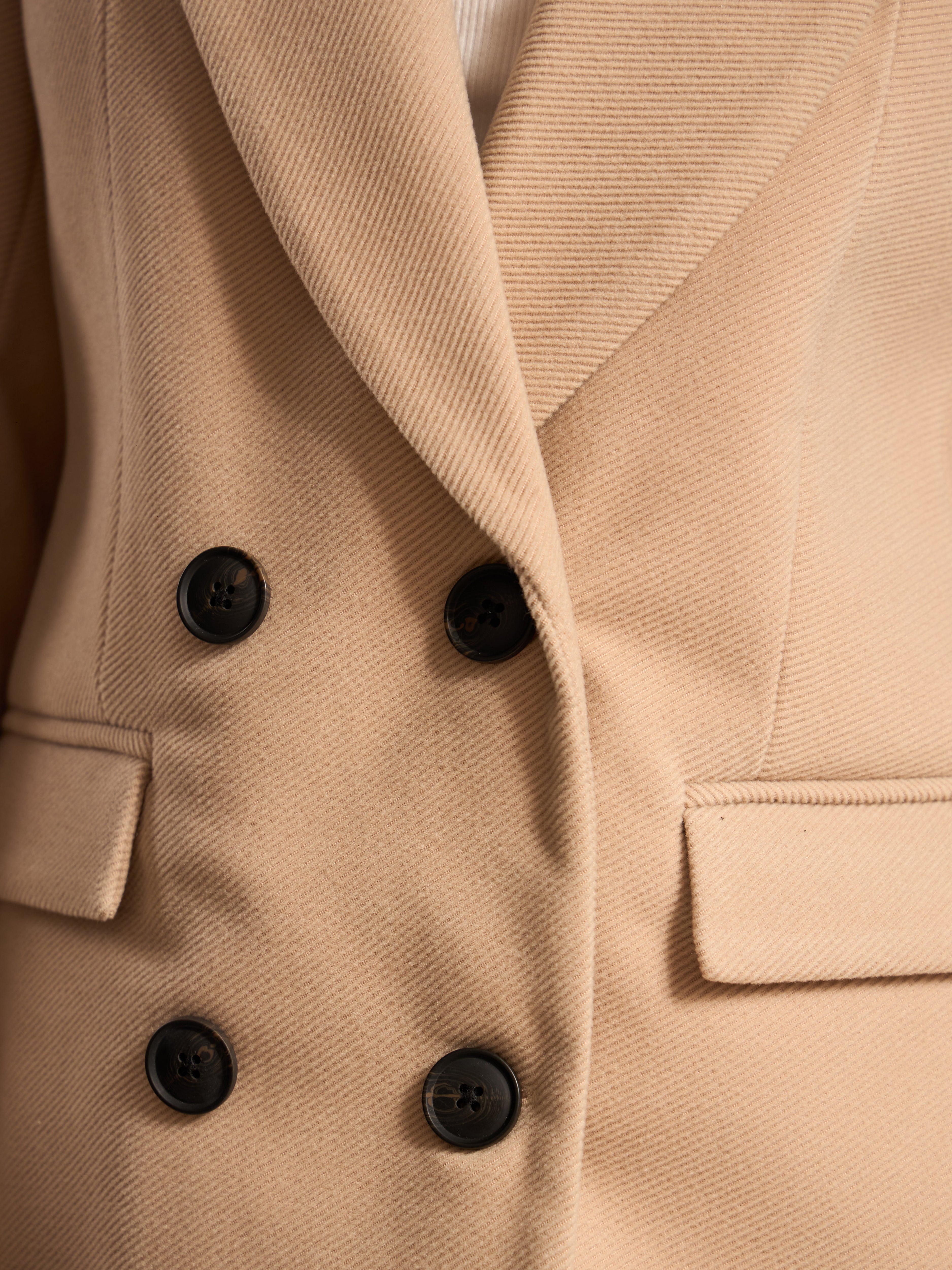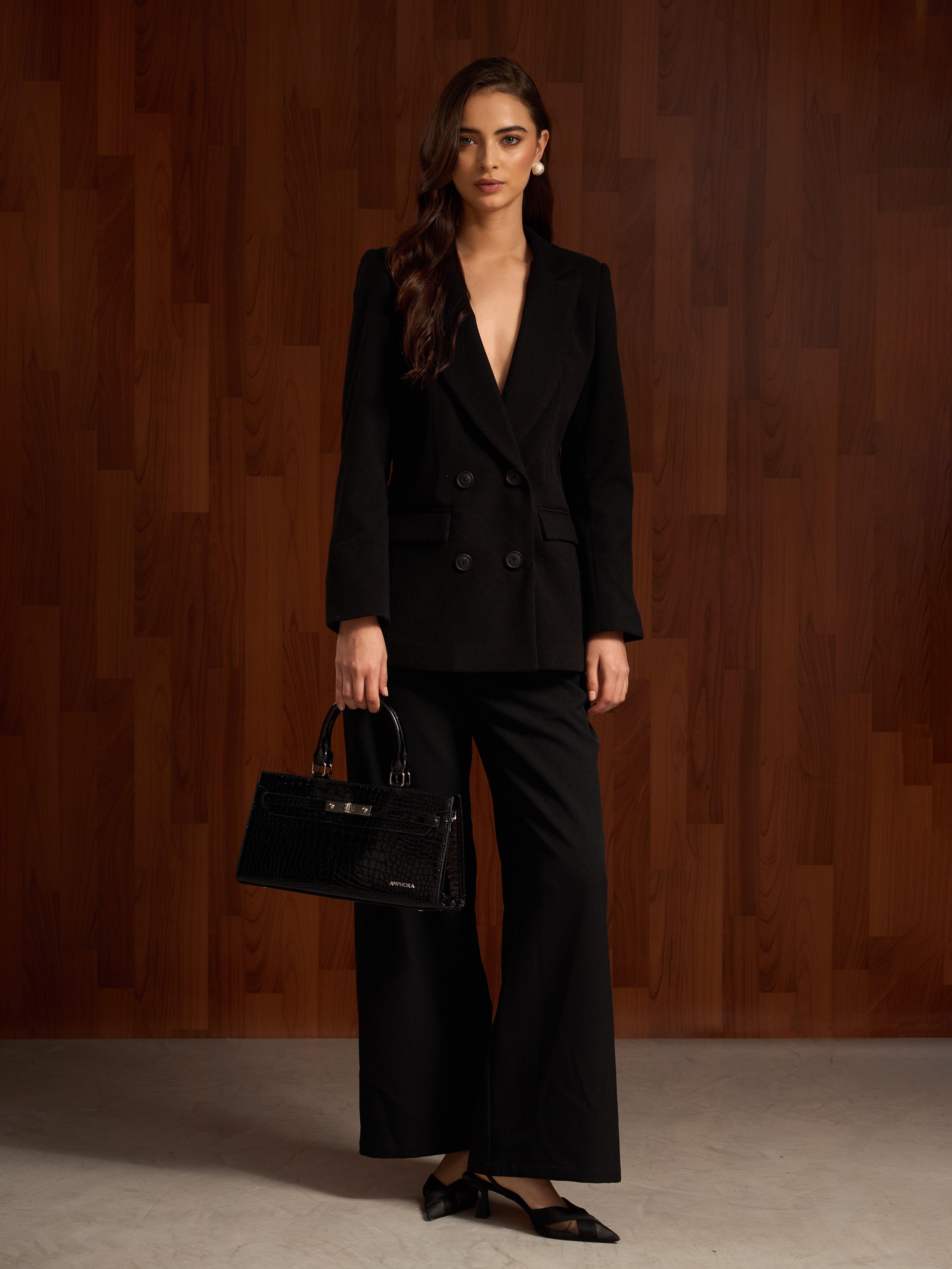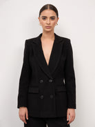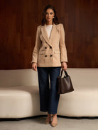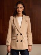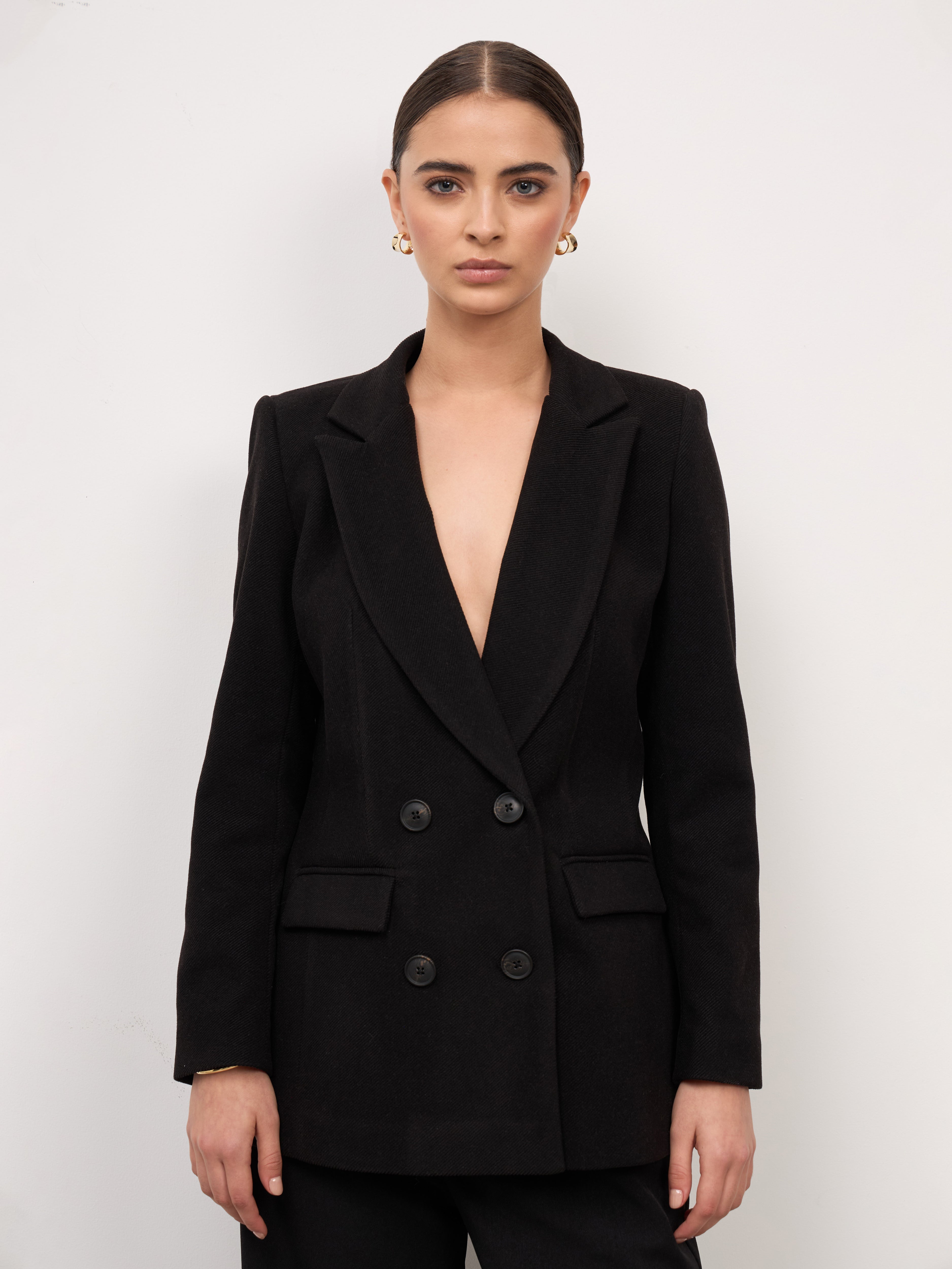 Blazer de entalle con doble pinza, diseñado para ofrecer un ajuste perfecto. Corte semi ceñido en la cintura aporta elegancia, mientras que las mangas rectas y el ajuste de dos botones brindan un toque moderno y sofisticado. Perfecto para crear un look profesional con estilo.