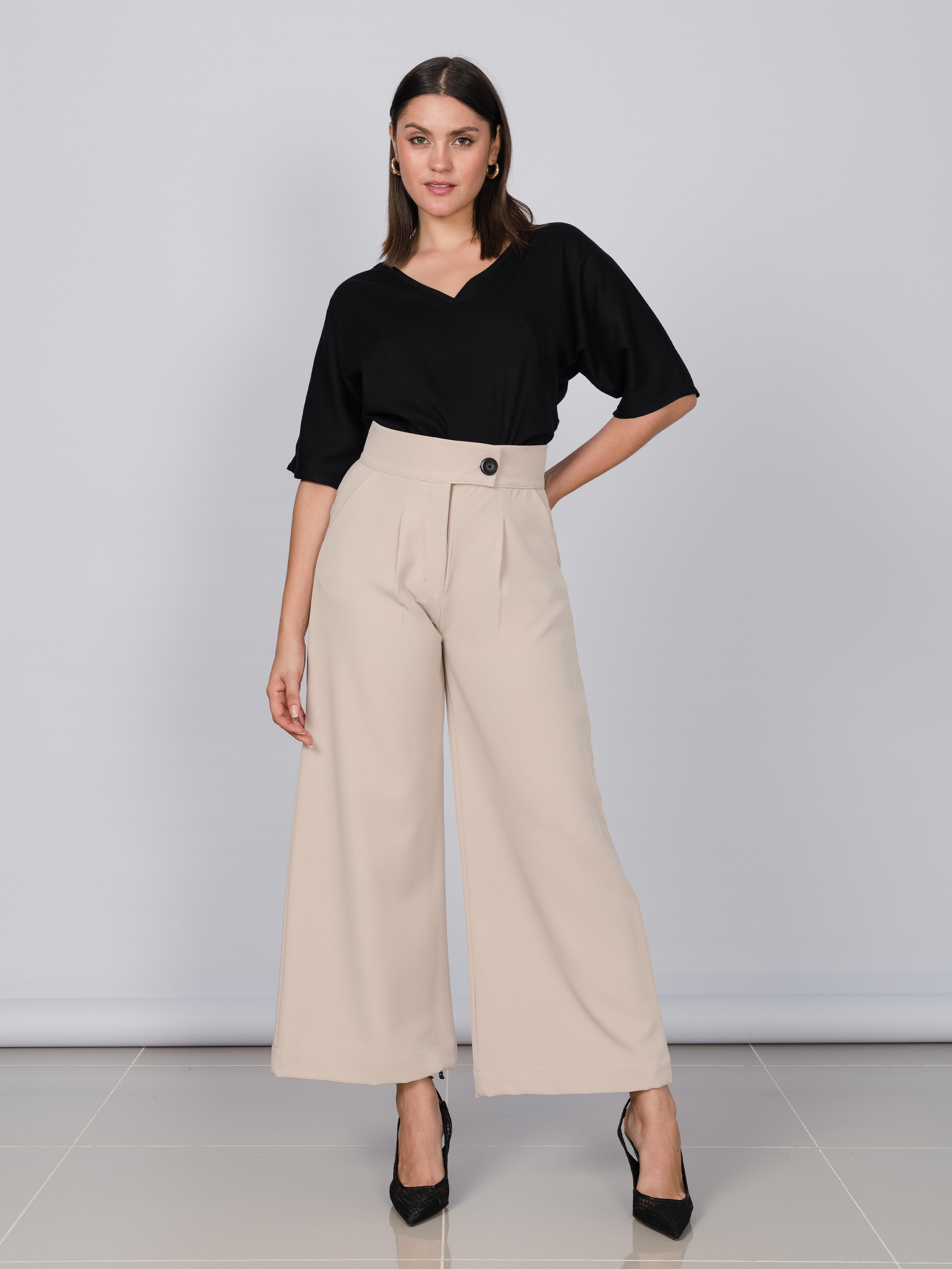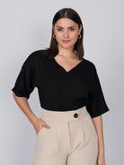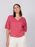 Blusa con el cuello v, mangas 3/4 y diseño holgado.