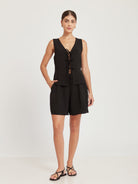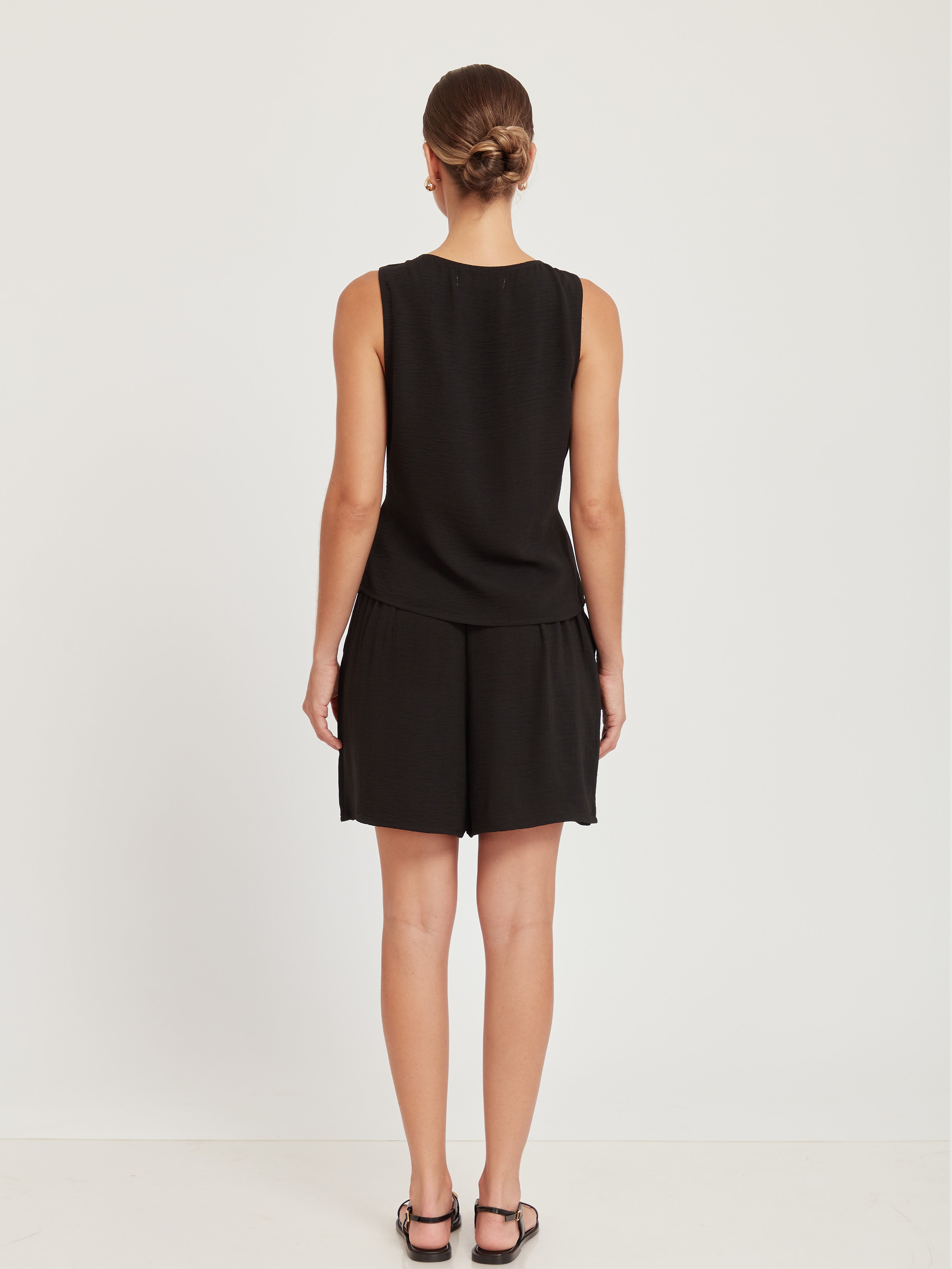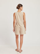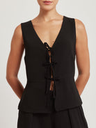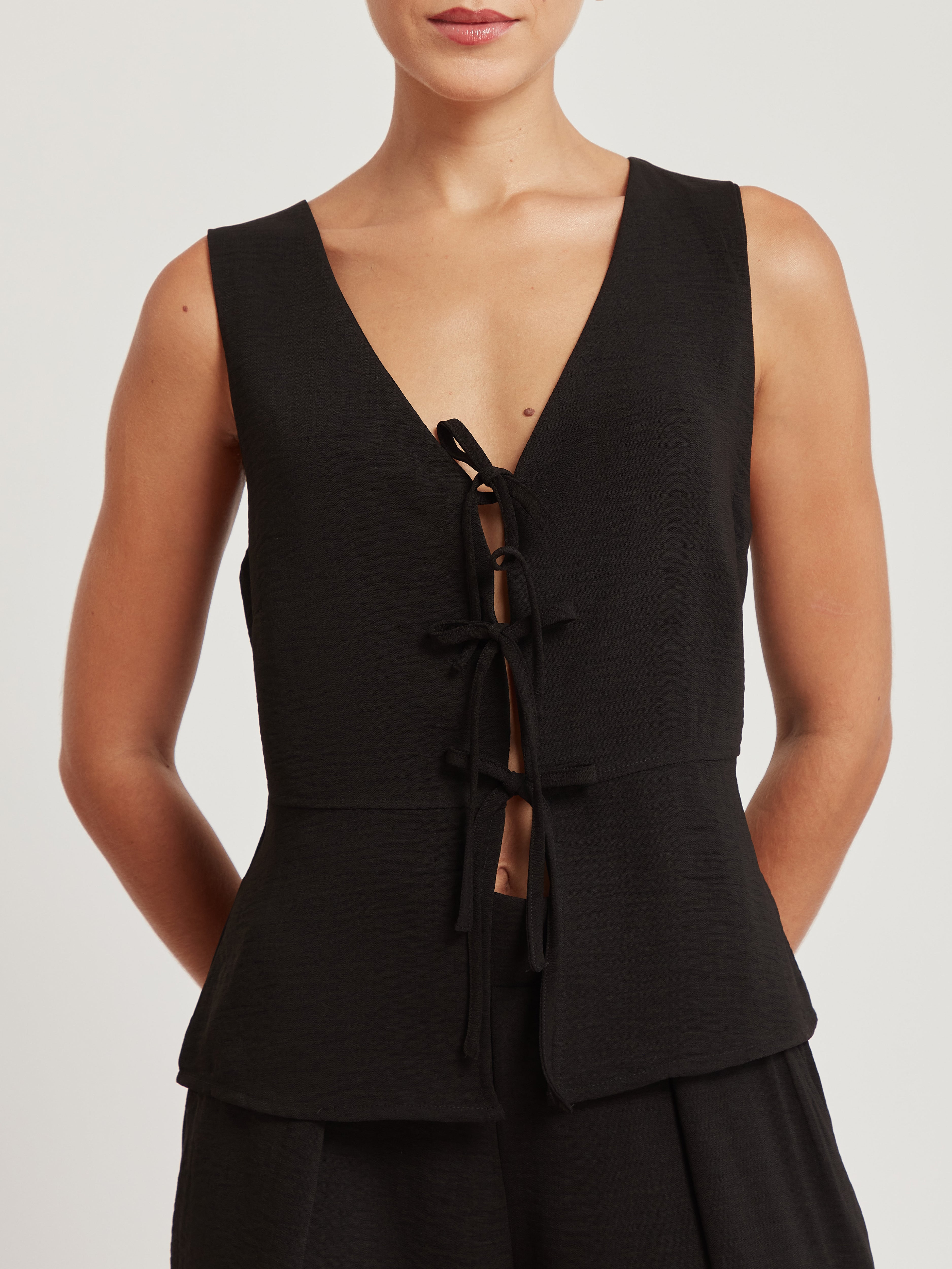 Blusa sin manga con detalle de 3 tiras para amarrar en la parte delantera.