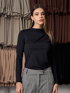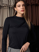 Cafarena básica de cuello cisne, con manga larga y detalles de pliegues en la zona del hombro. Diseñado con una silueta que estiliza y se adapta facilmente al cuerpo. Una pieza esencial y versatil, perfecta para el uso diario.