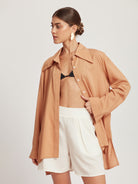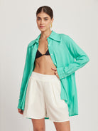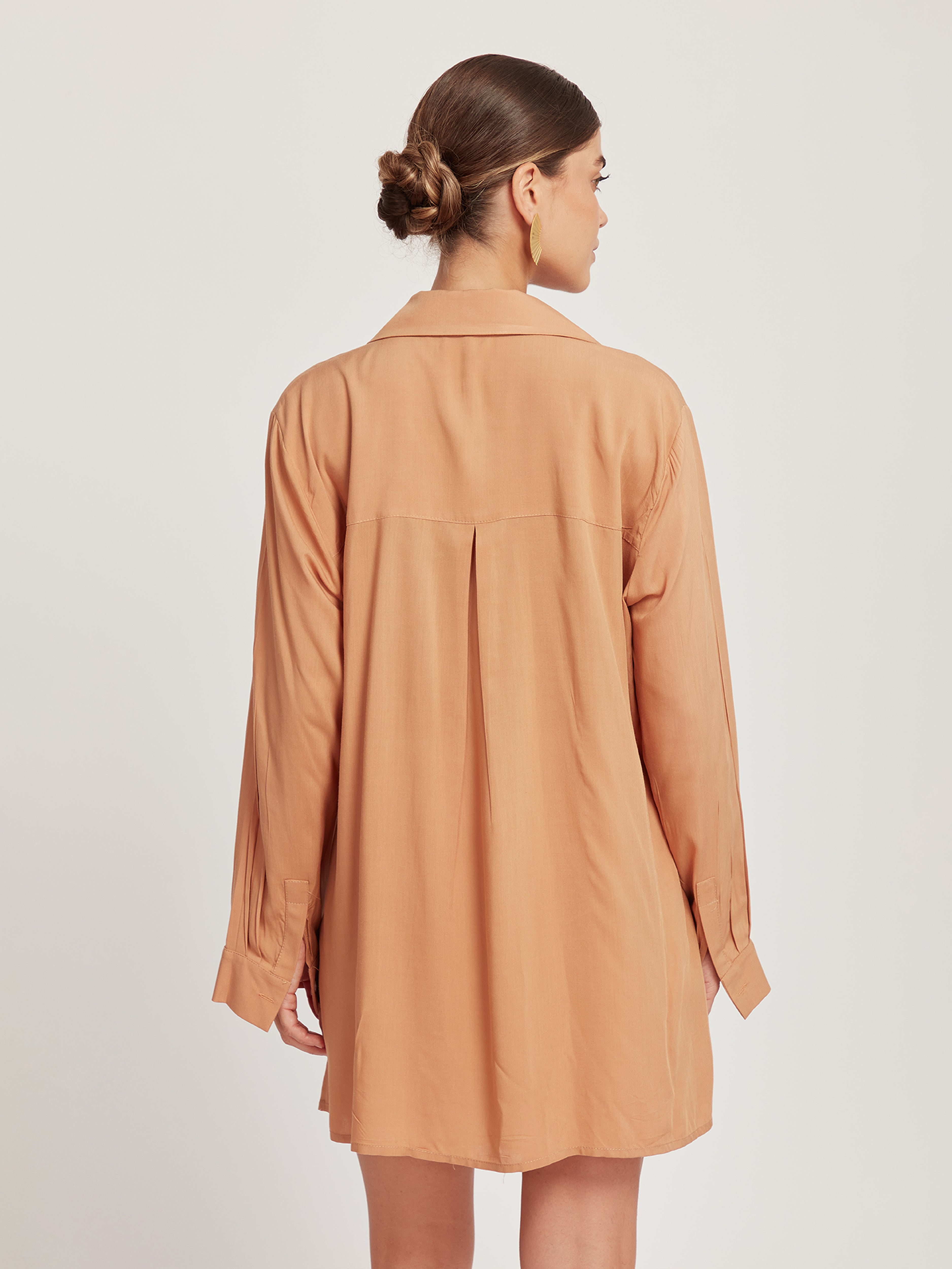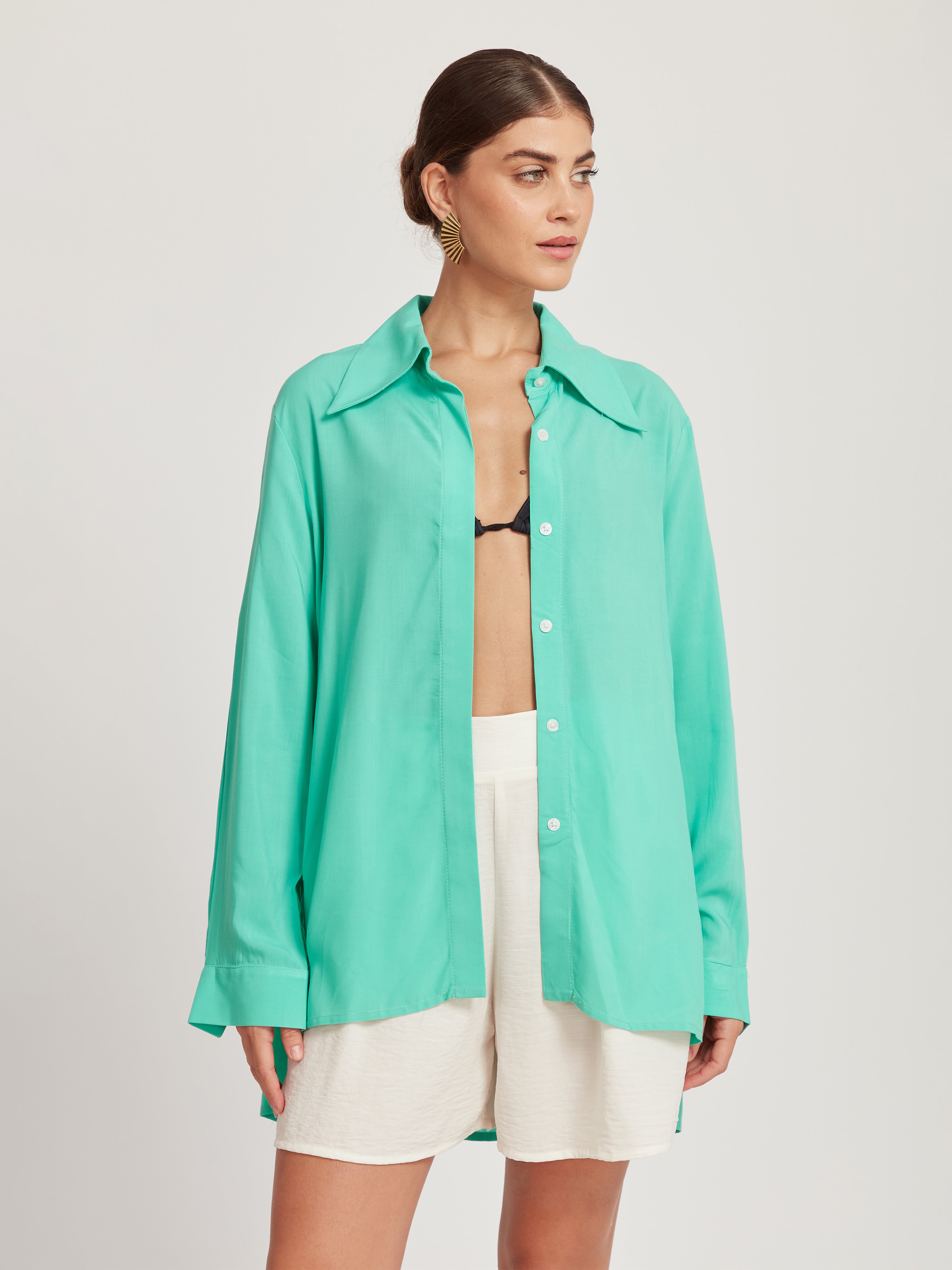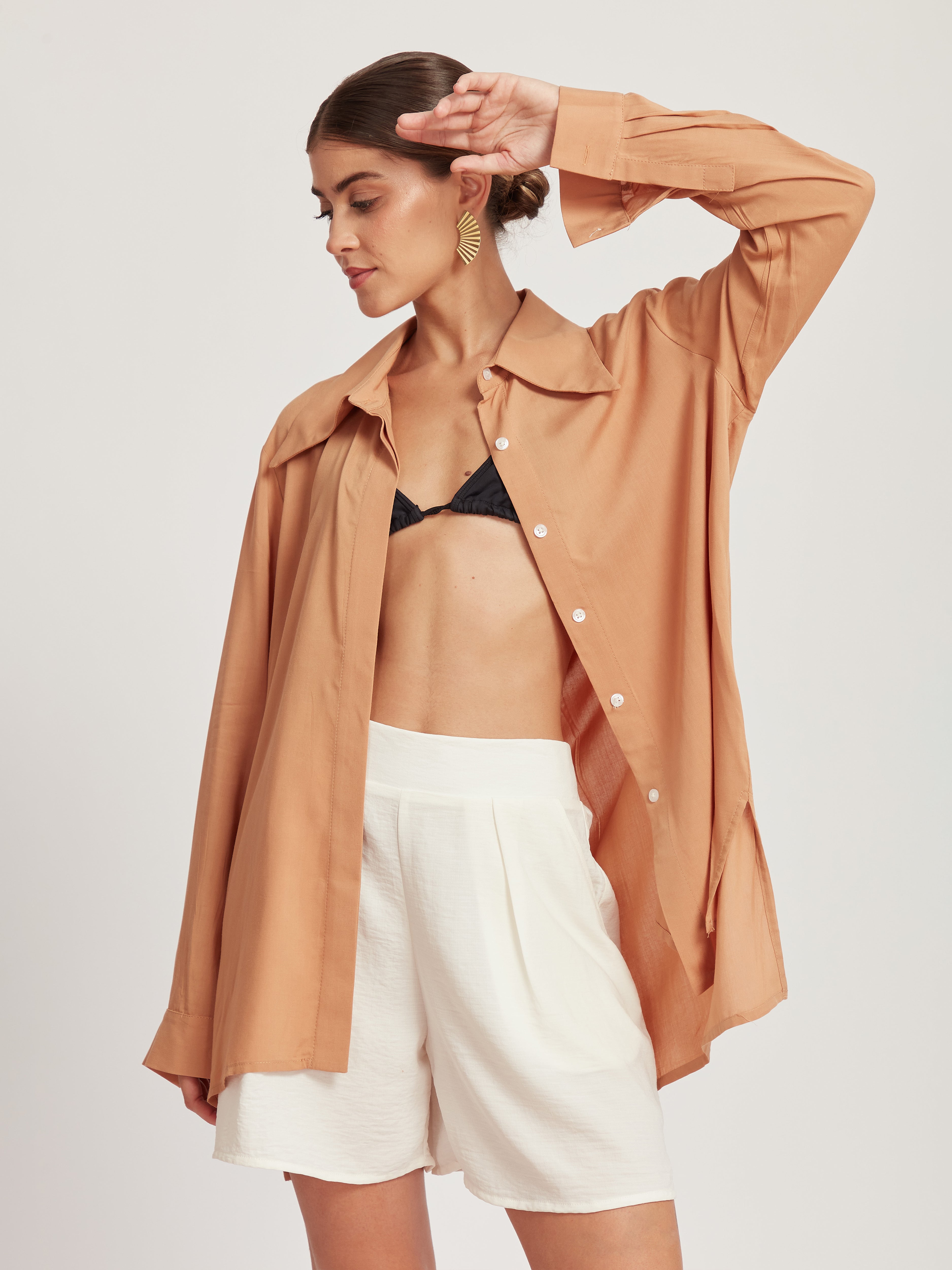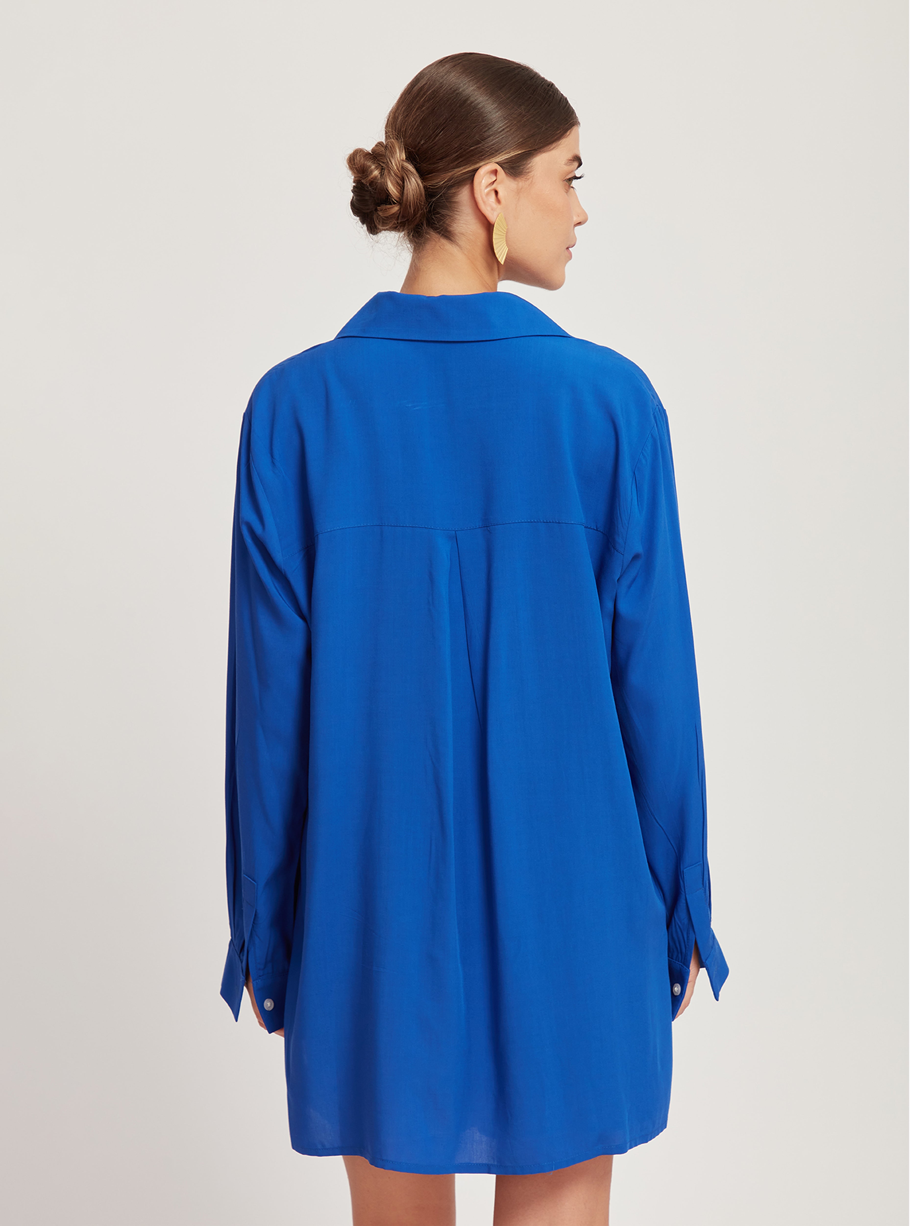 Camisa con botones ocultos y parte trasera más larga que la delantera.