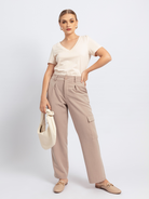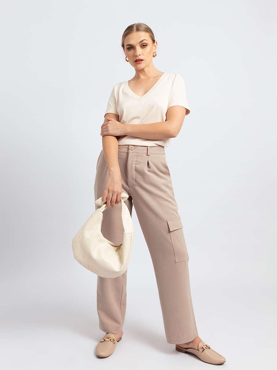 Cargo pant holgado con cuatro bolsillos funcionales, dos a cada lado.
