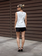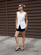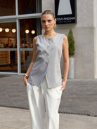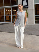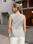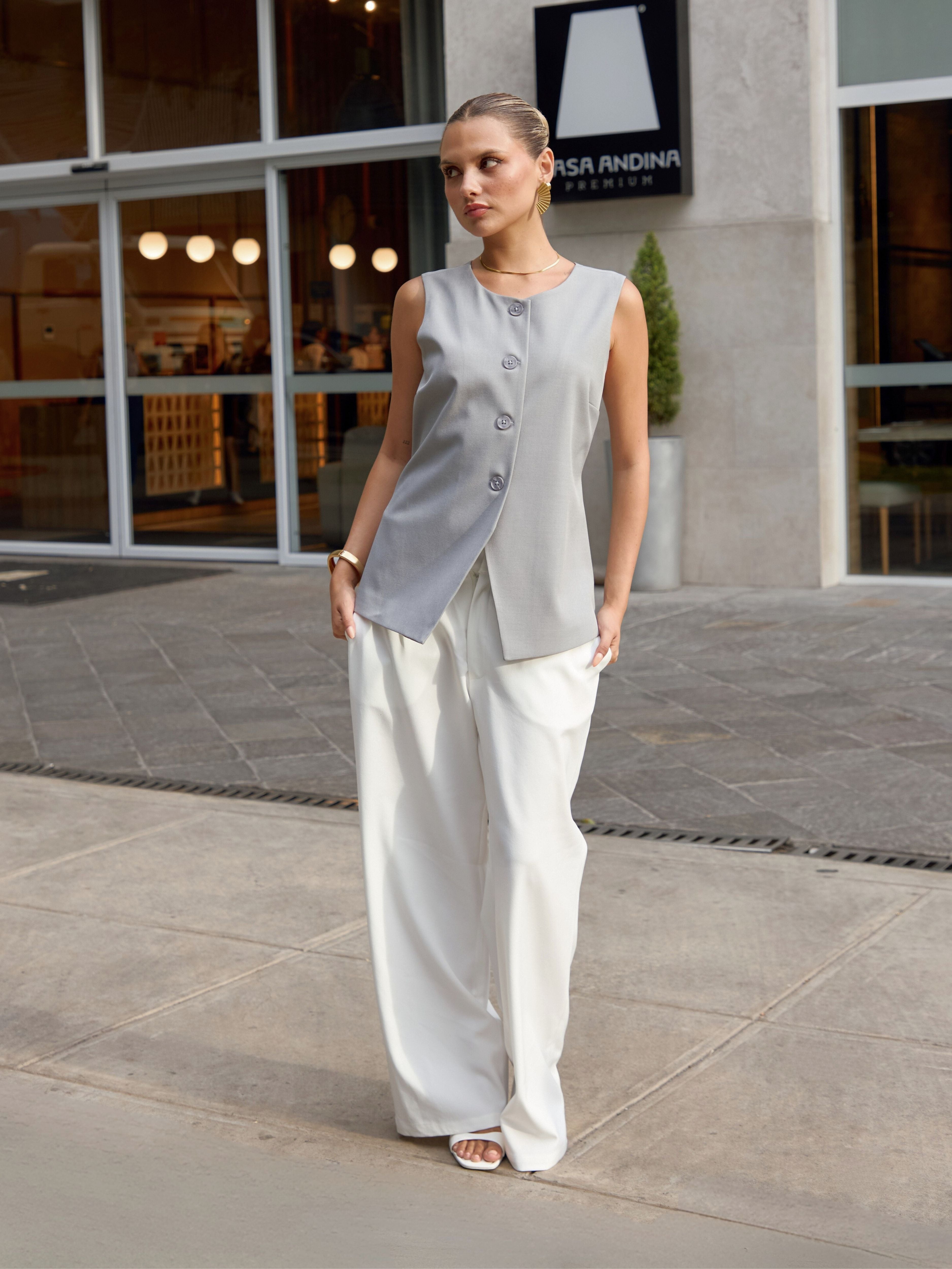 Chaleco largo con escote redondo, con apertura con botones en el frente. Una prenda que transforma cualquier conjunto con su silueta alargada y detalle distintivo.
