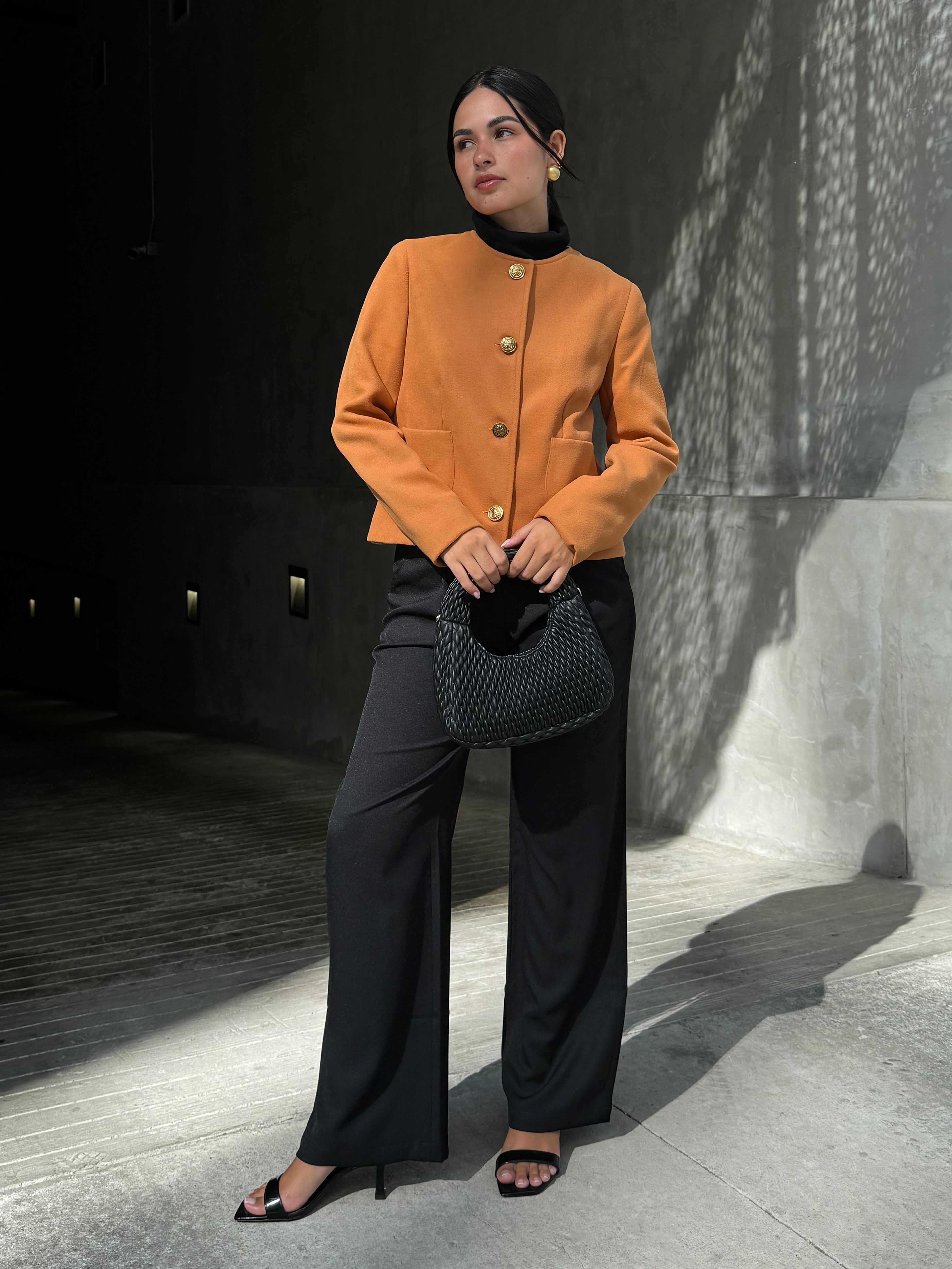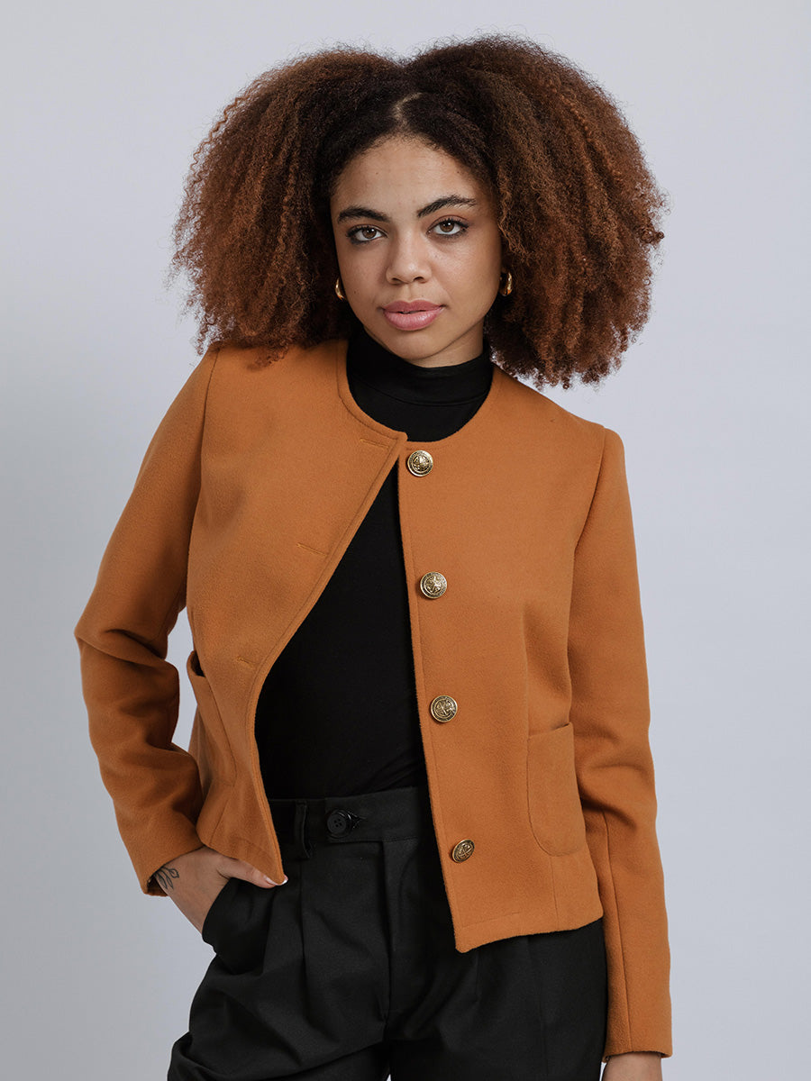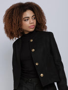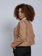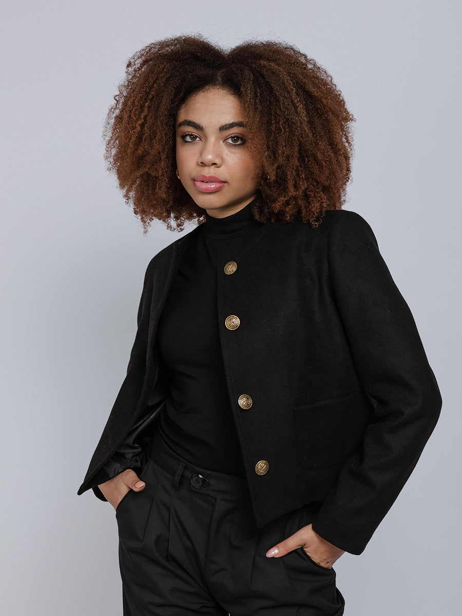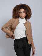 Chaqueta estilo crop con dos bolsillos funcionales delanteros.