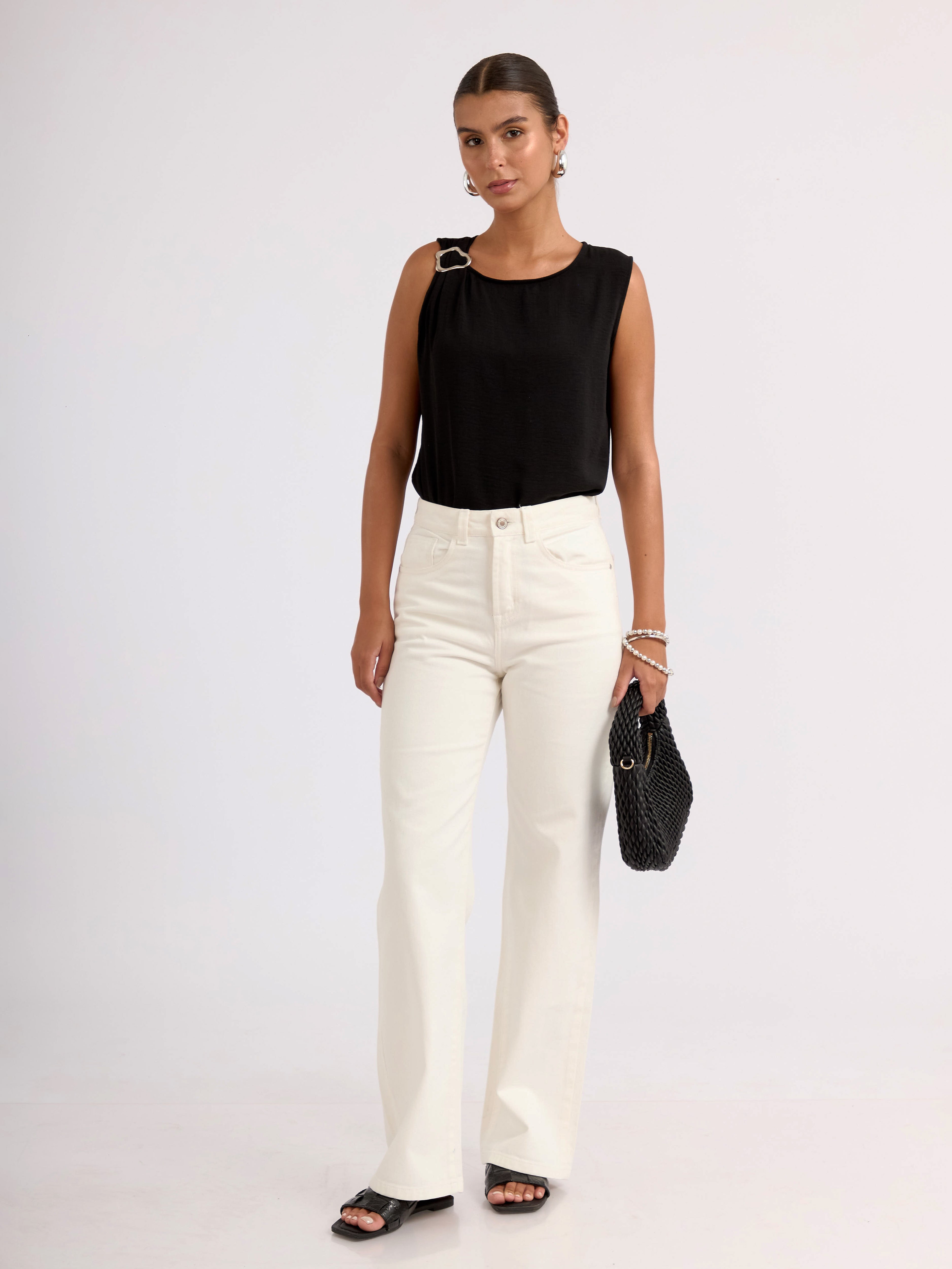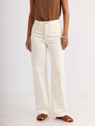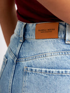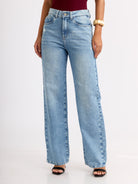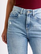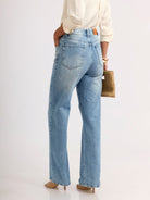 Pantalón recto de denim, con un corte clásico que estiliza la figura. Con bolsillos a los costados y en la parte posterior. Corte recto y ajuste cómodo.
