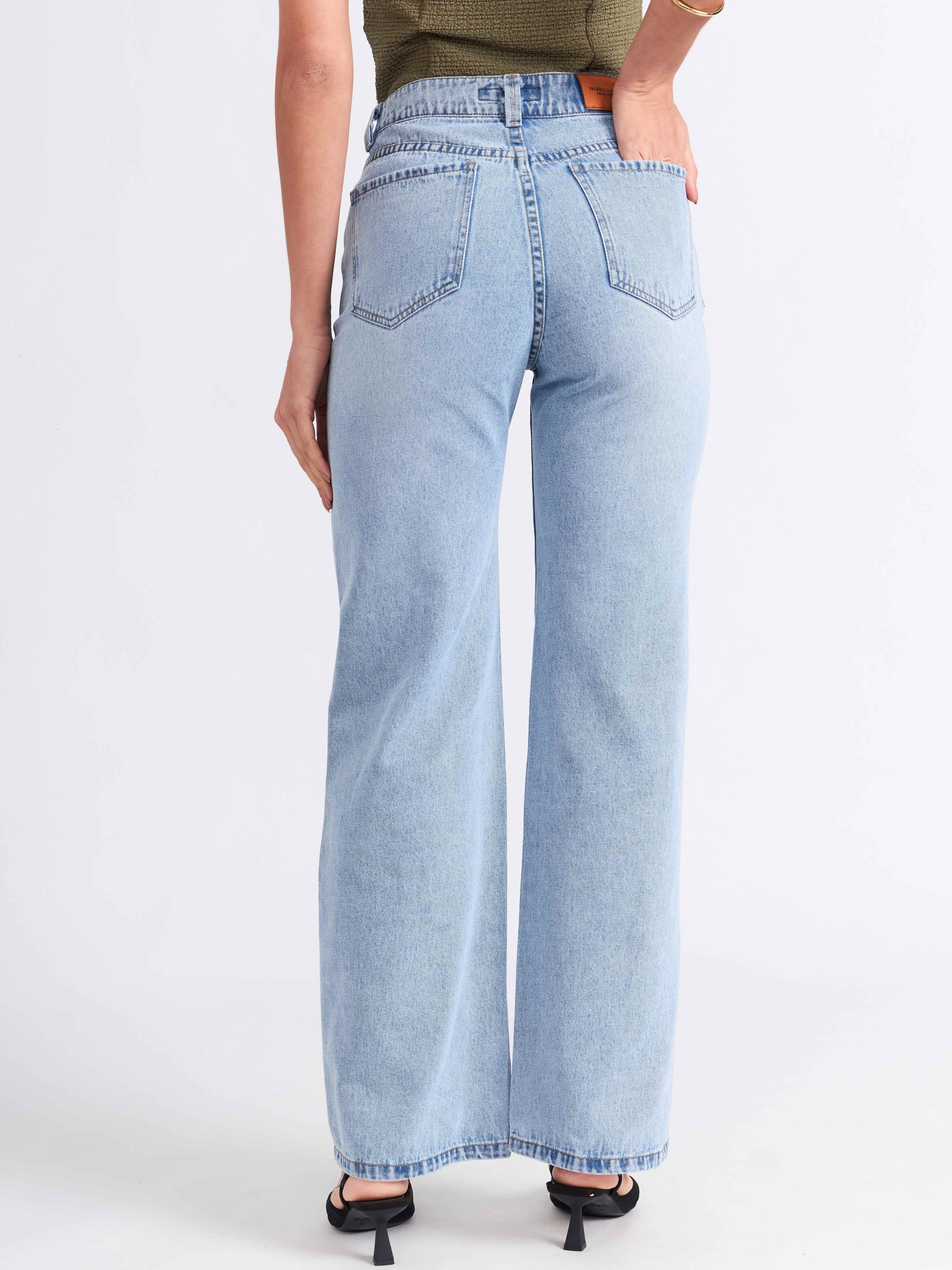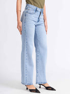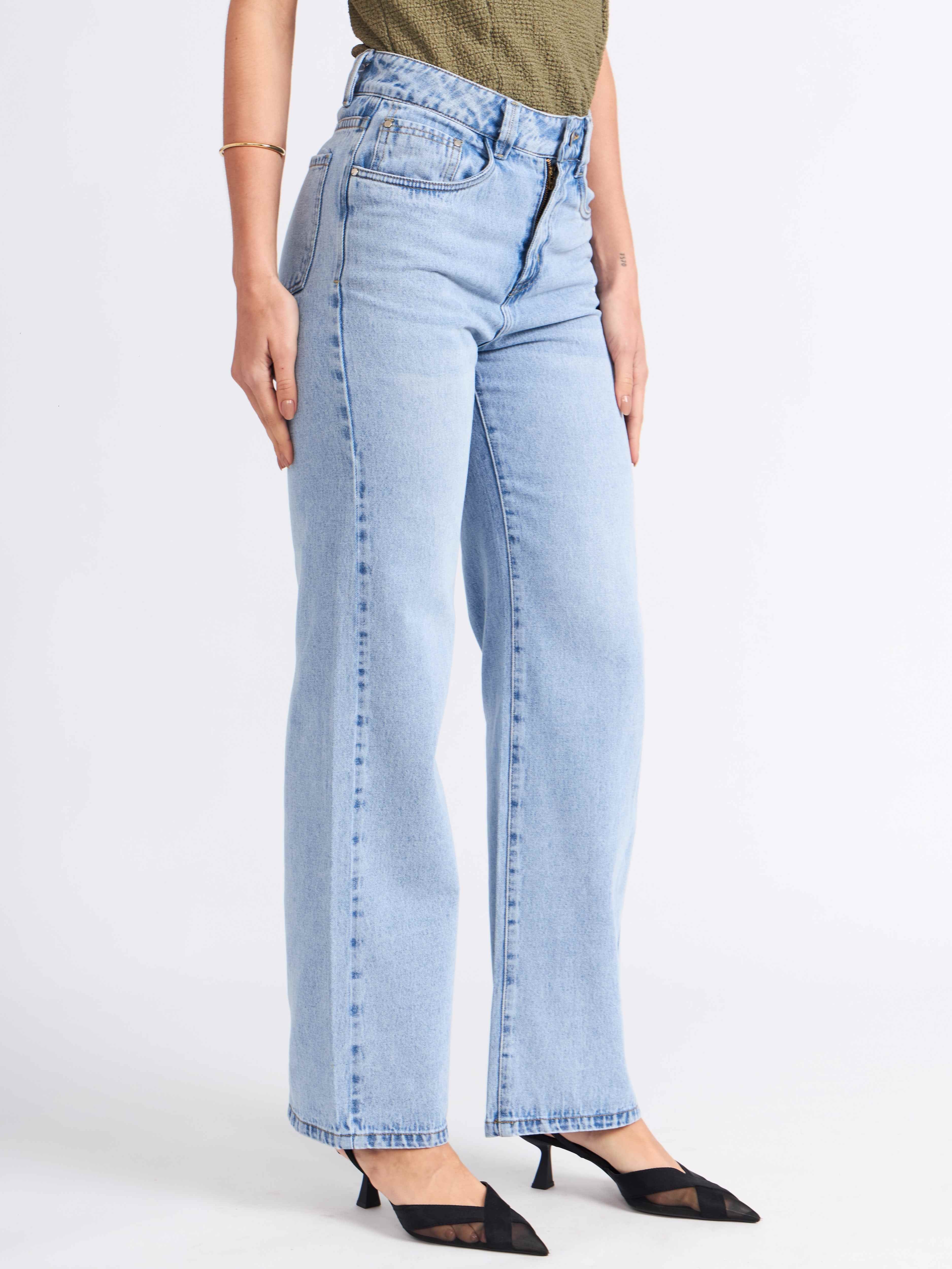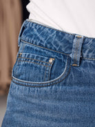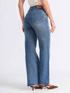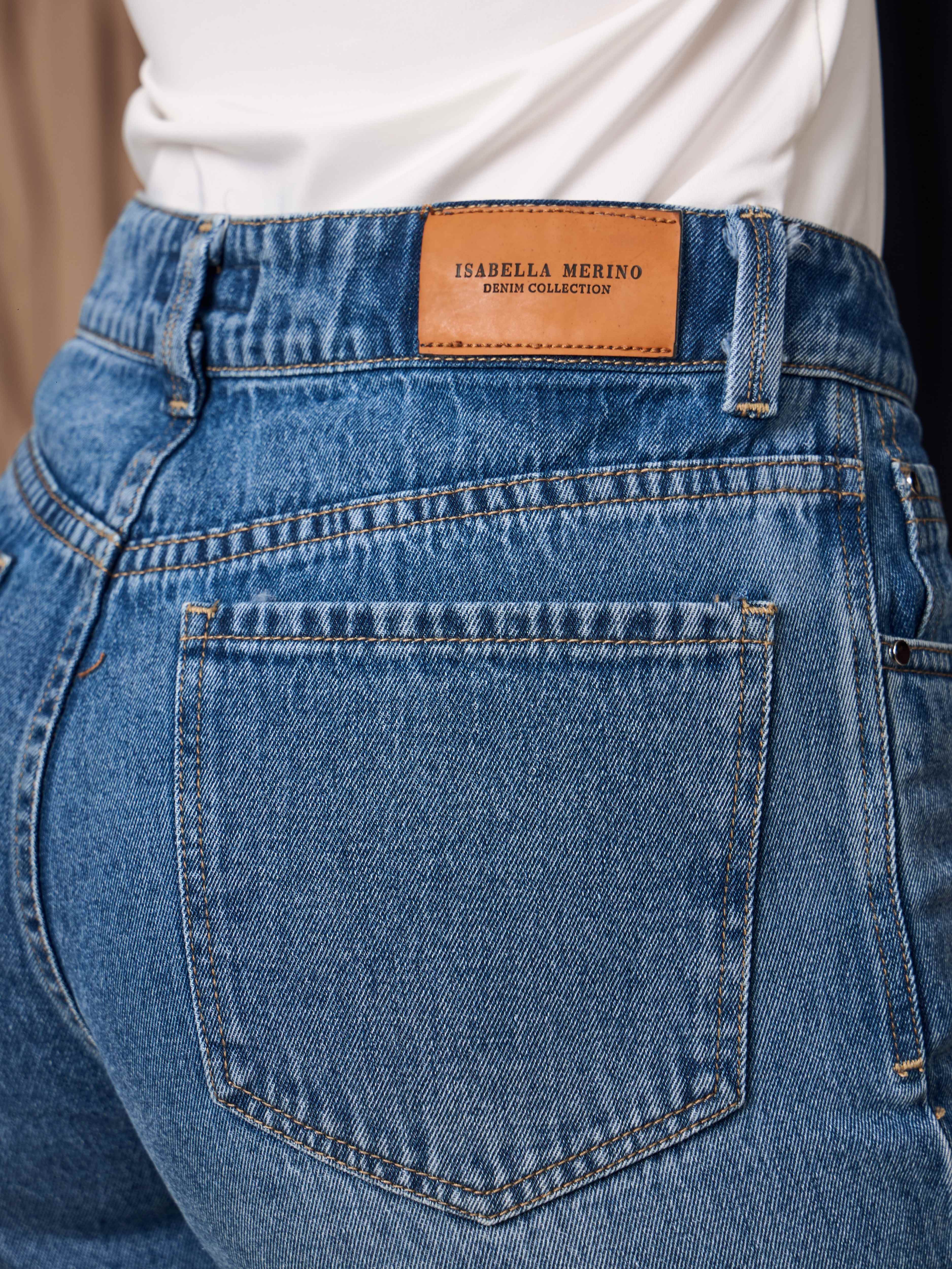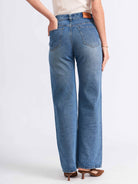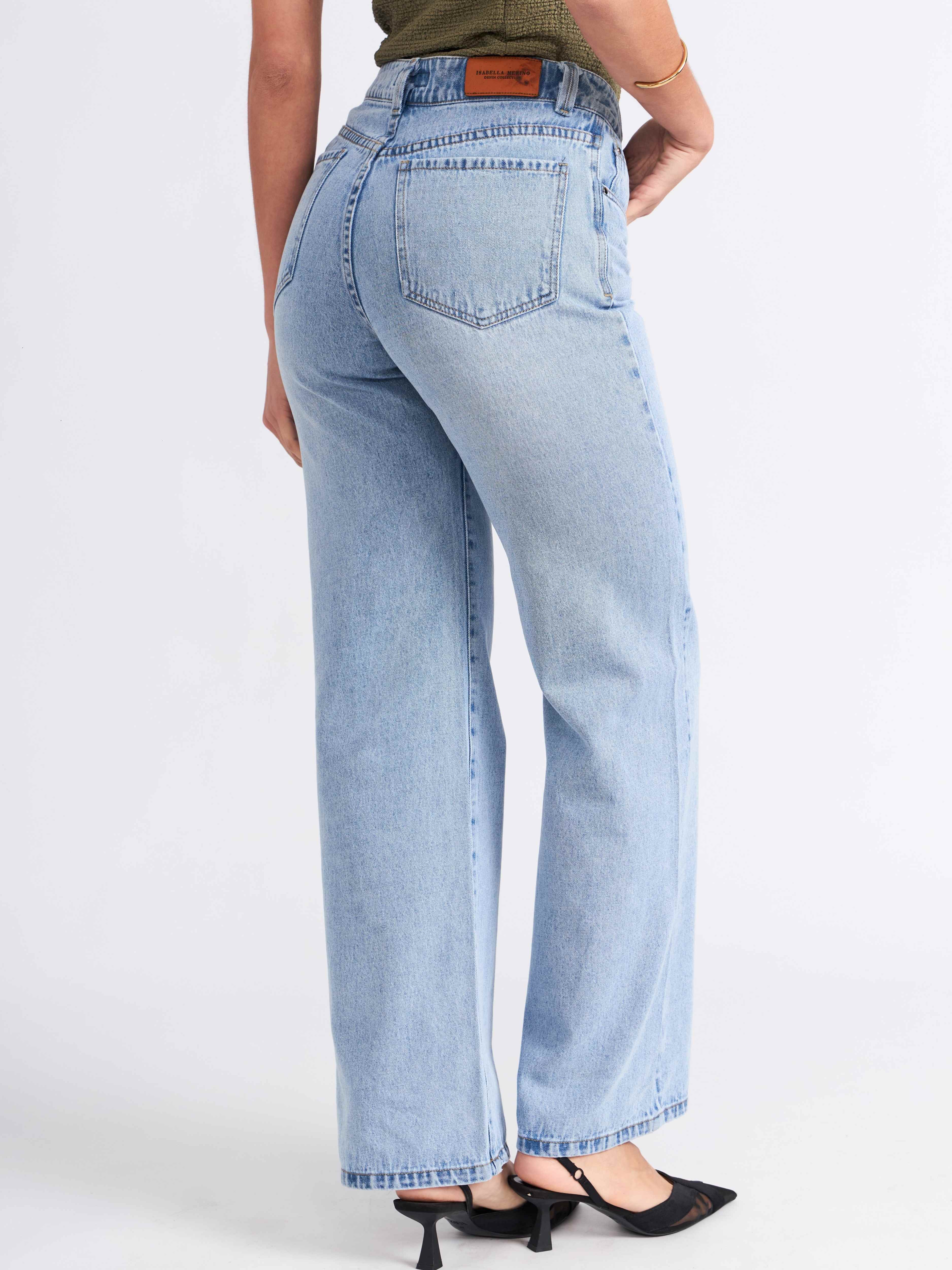 Pantalón recto de denim, con un corte clásico que estiliza la figura. Con bolsillos a los costados y en la parte posterior. Corte recto y ajuste cómodo.