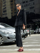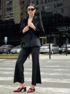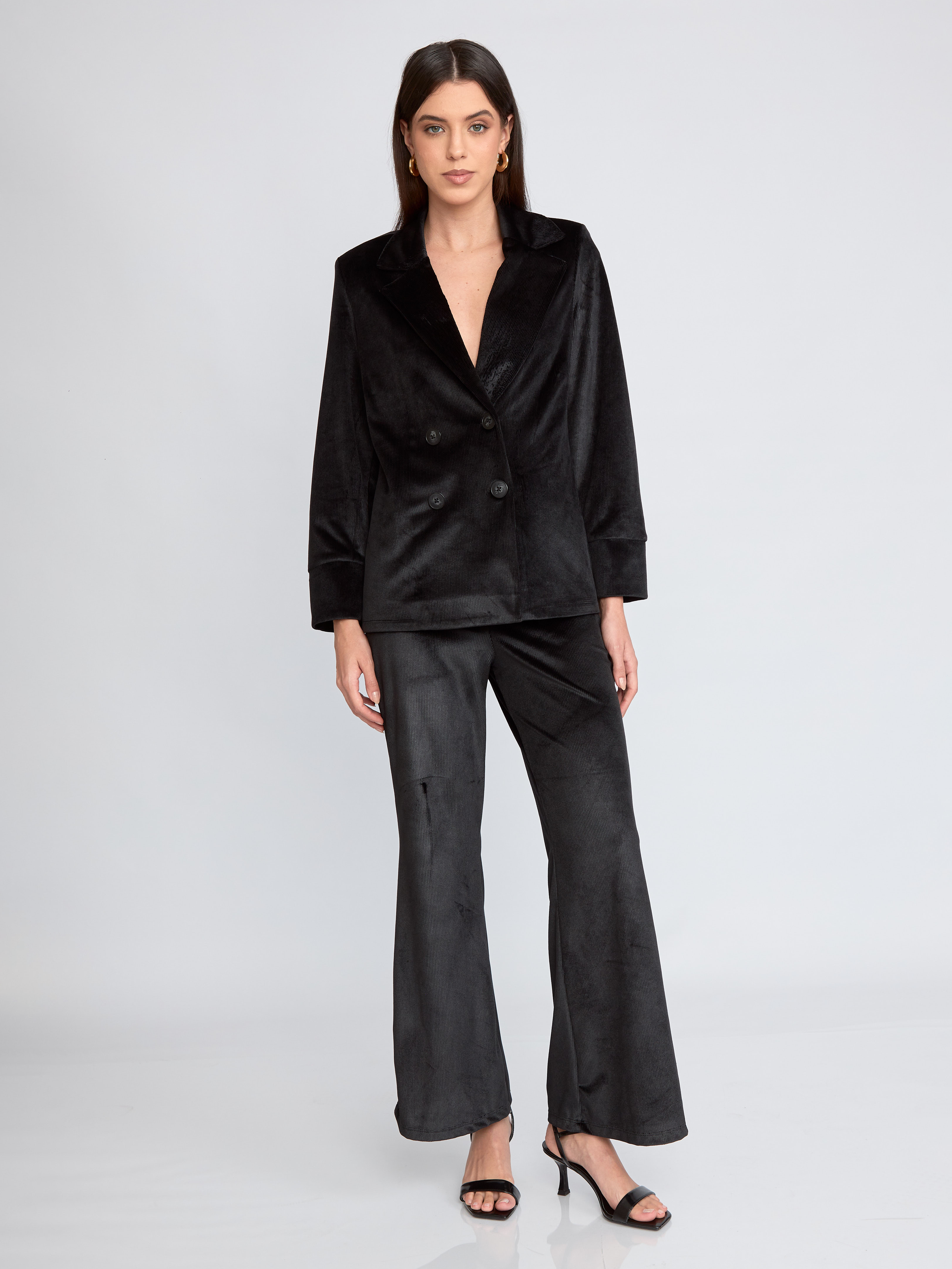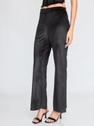 Pantalón tipo flare con cierre invisible lateral. Modelo de talle alto y piernas acampanadas.
