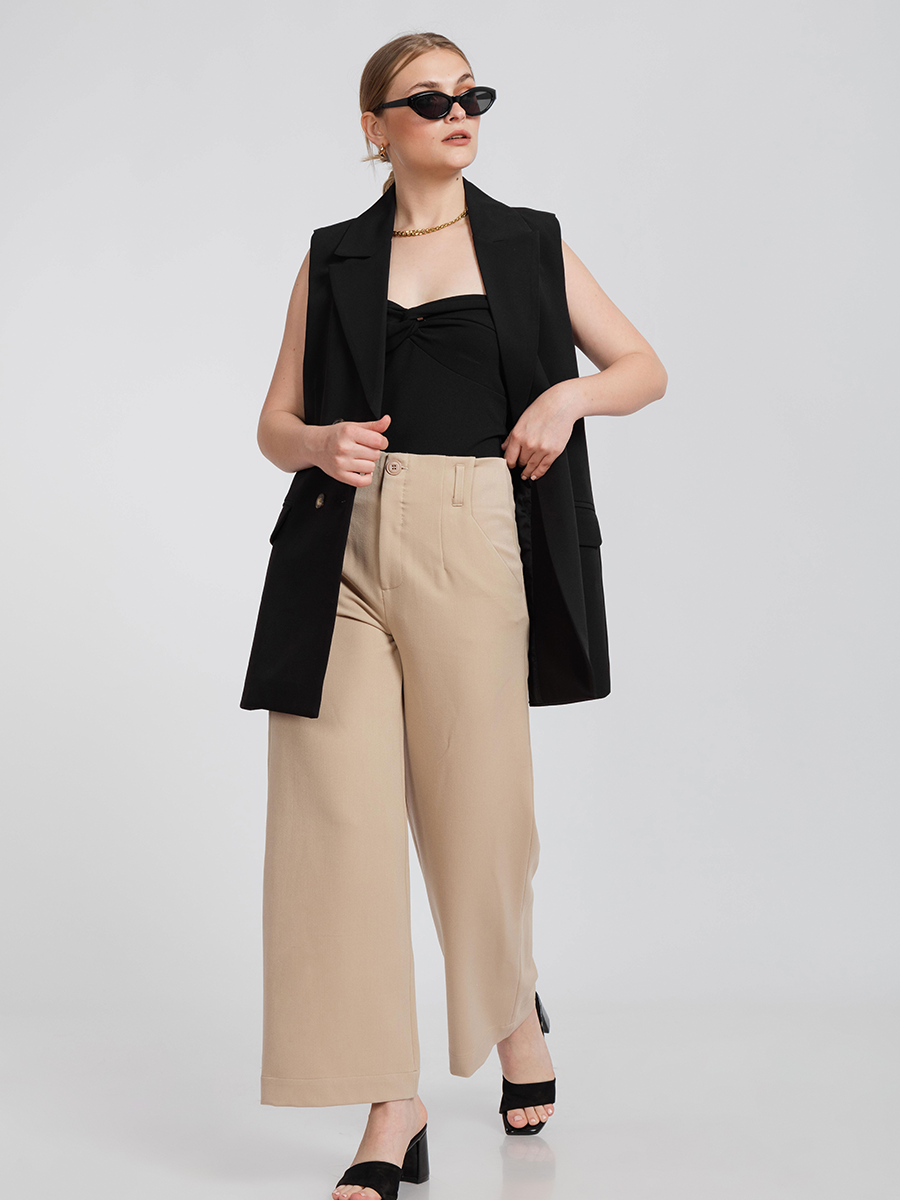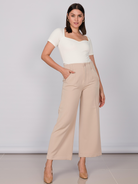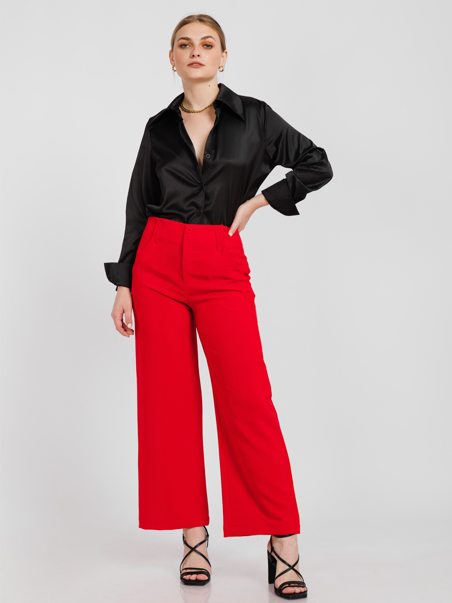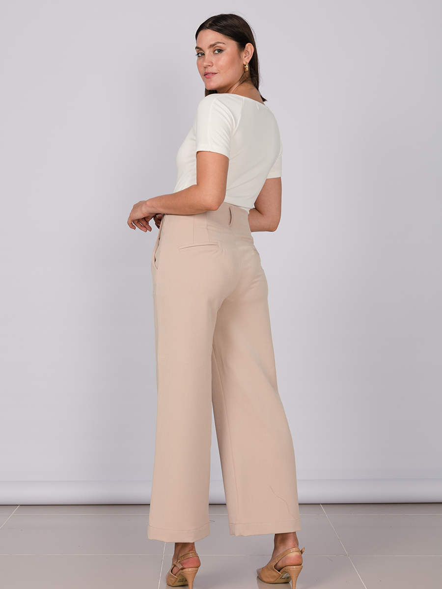 Pantalón de tiro alto con pinzas en la parte posterior.