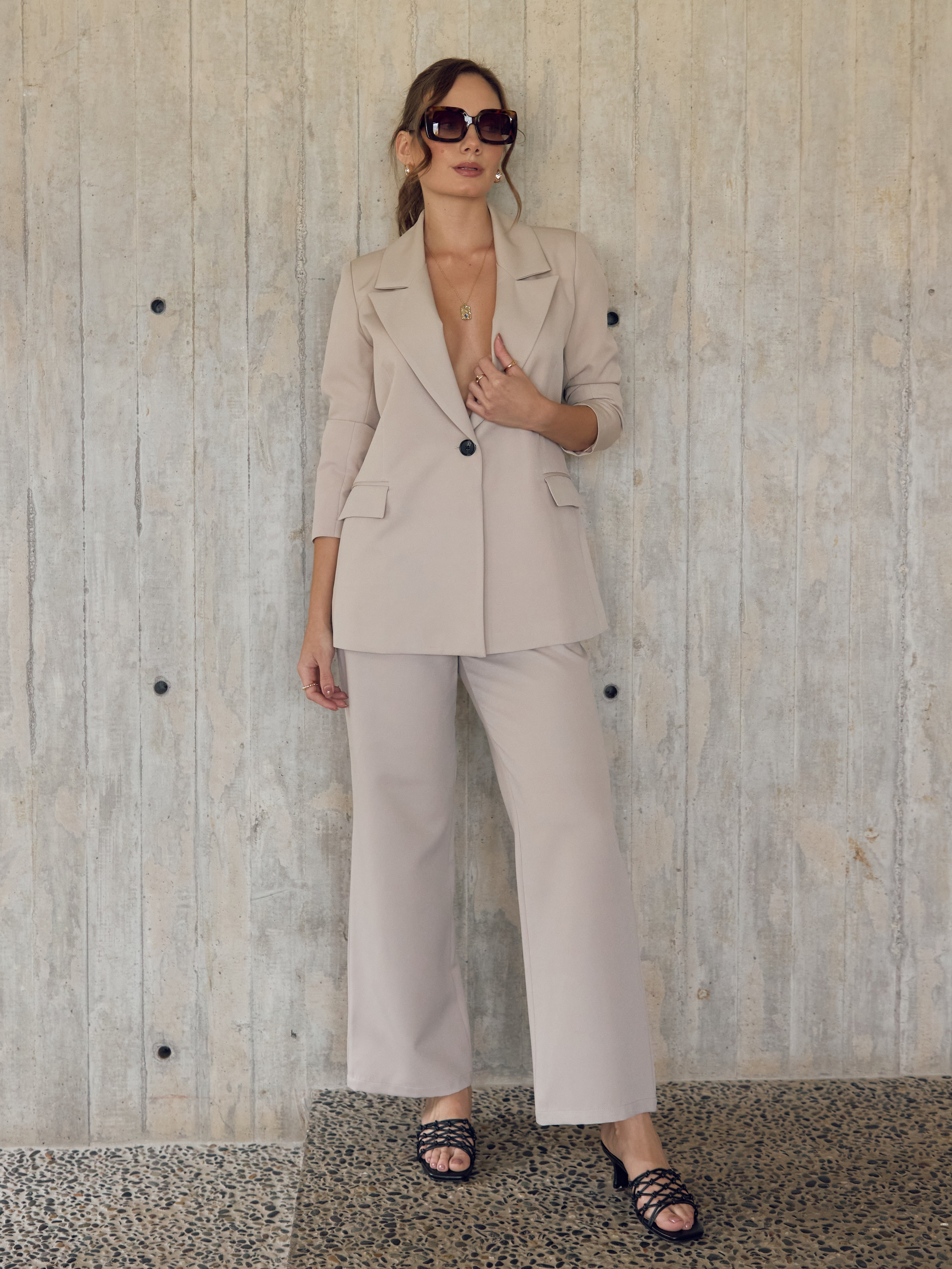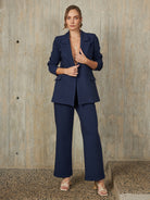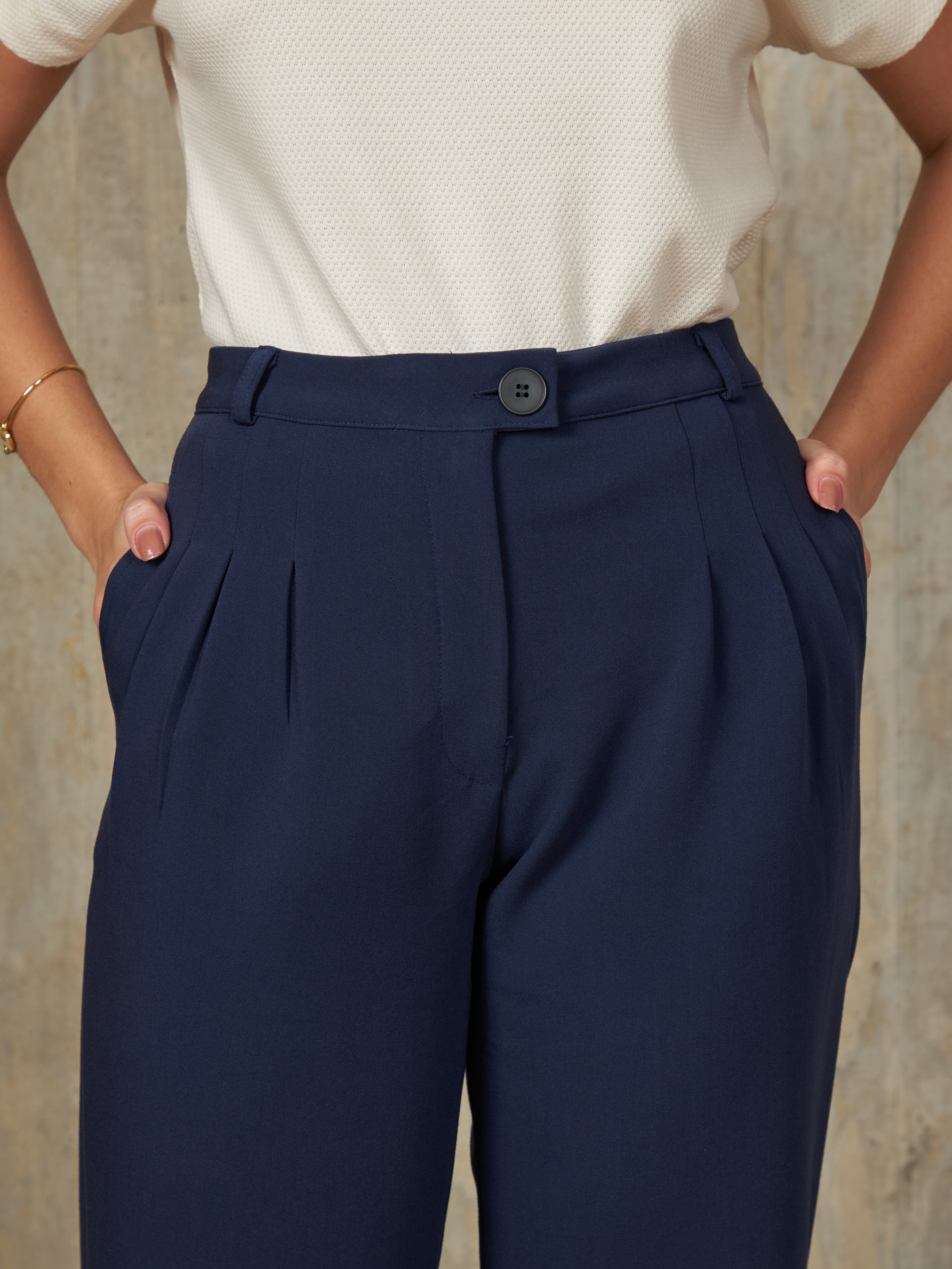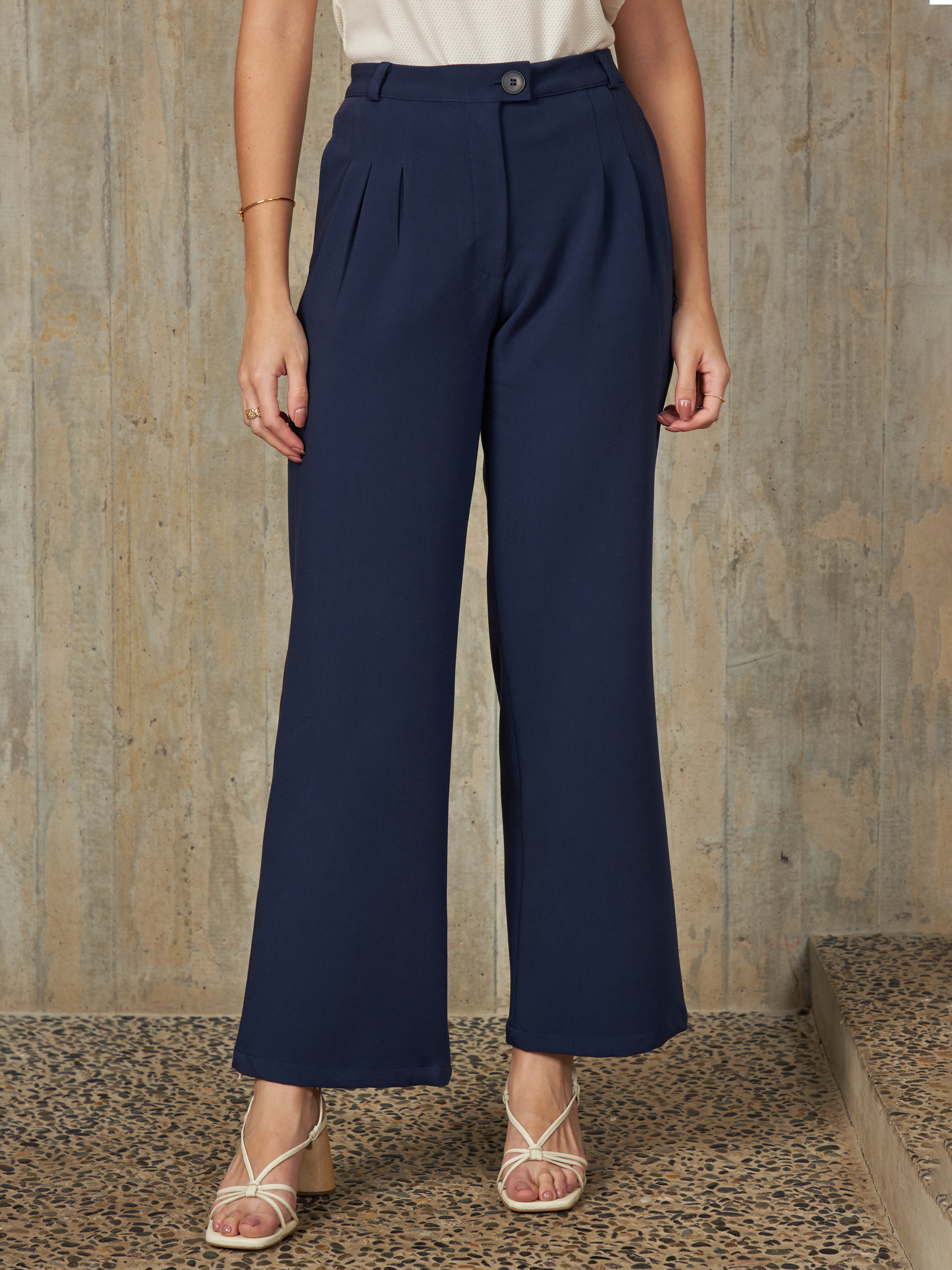 Pantalón recto con tres pinzas en el delantero. Con bolsillos a los costados y cierre con botón para un ajuste perfecto. Un diseño clásico y versátil.