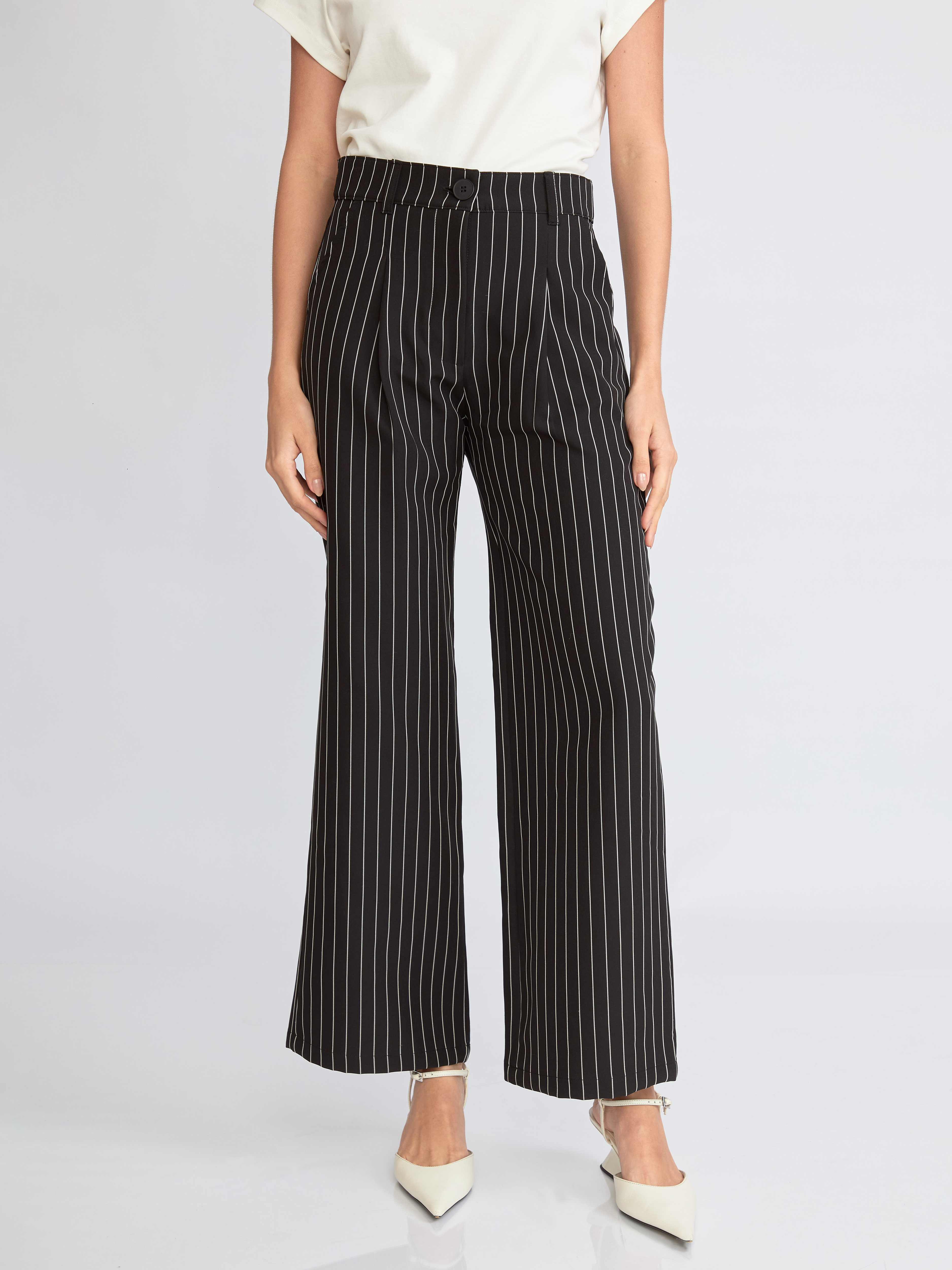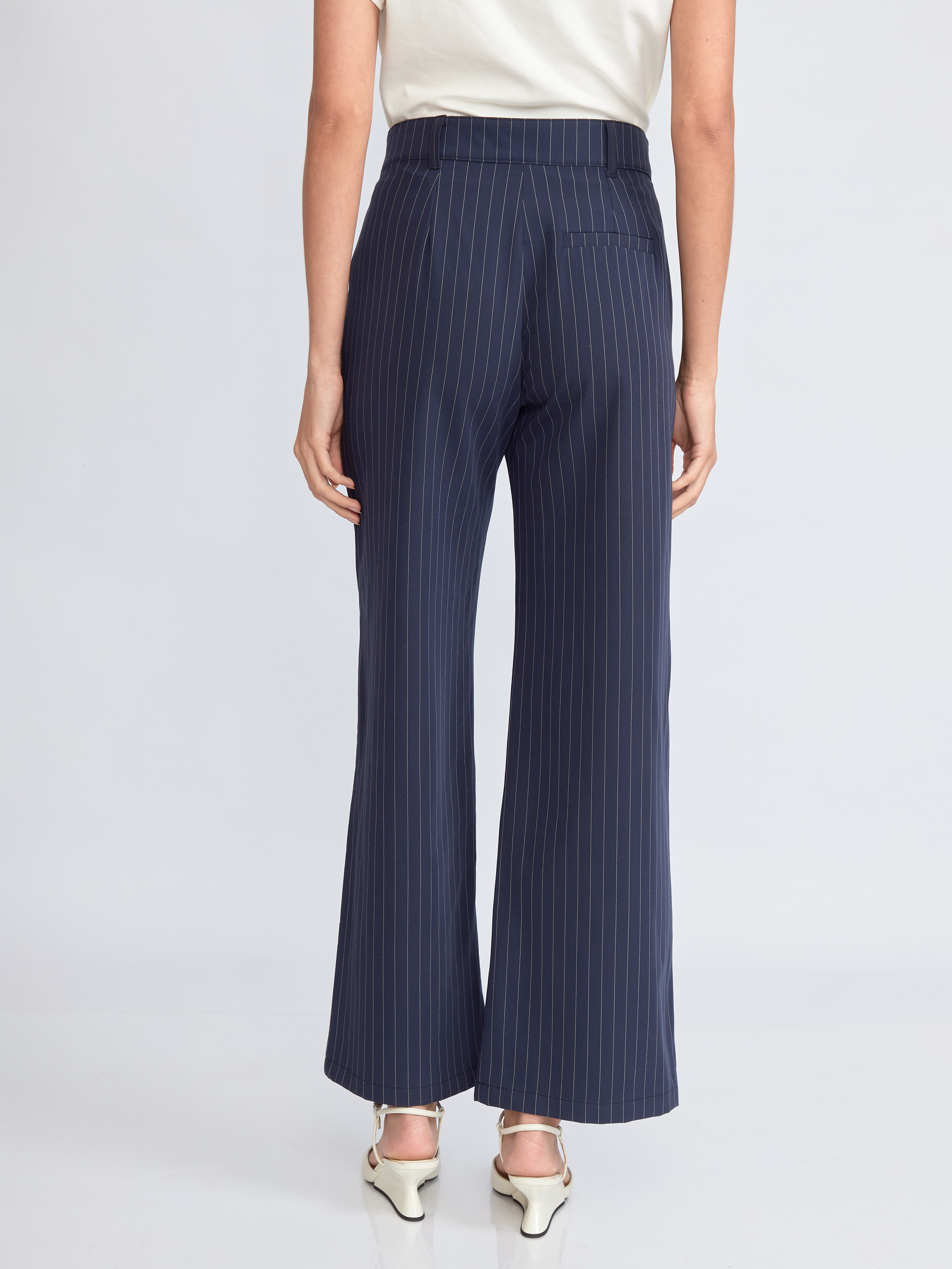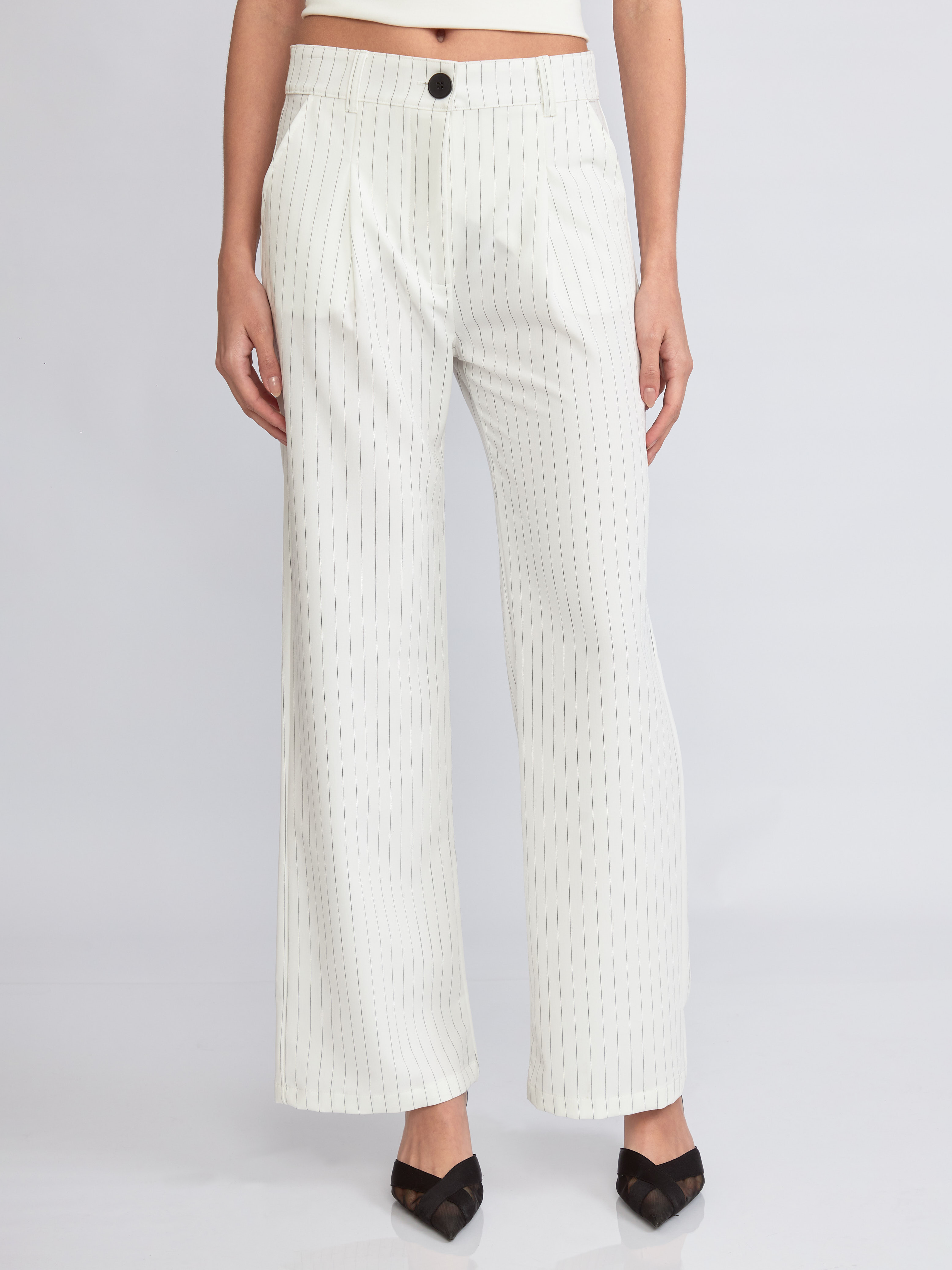 Pantalón sastre de corte recto, con cierre y botón delantero. Bolsillos laterales, pinzas y bolsillo decorativo detrás.