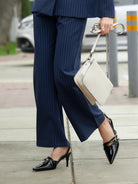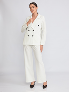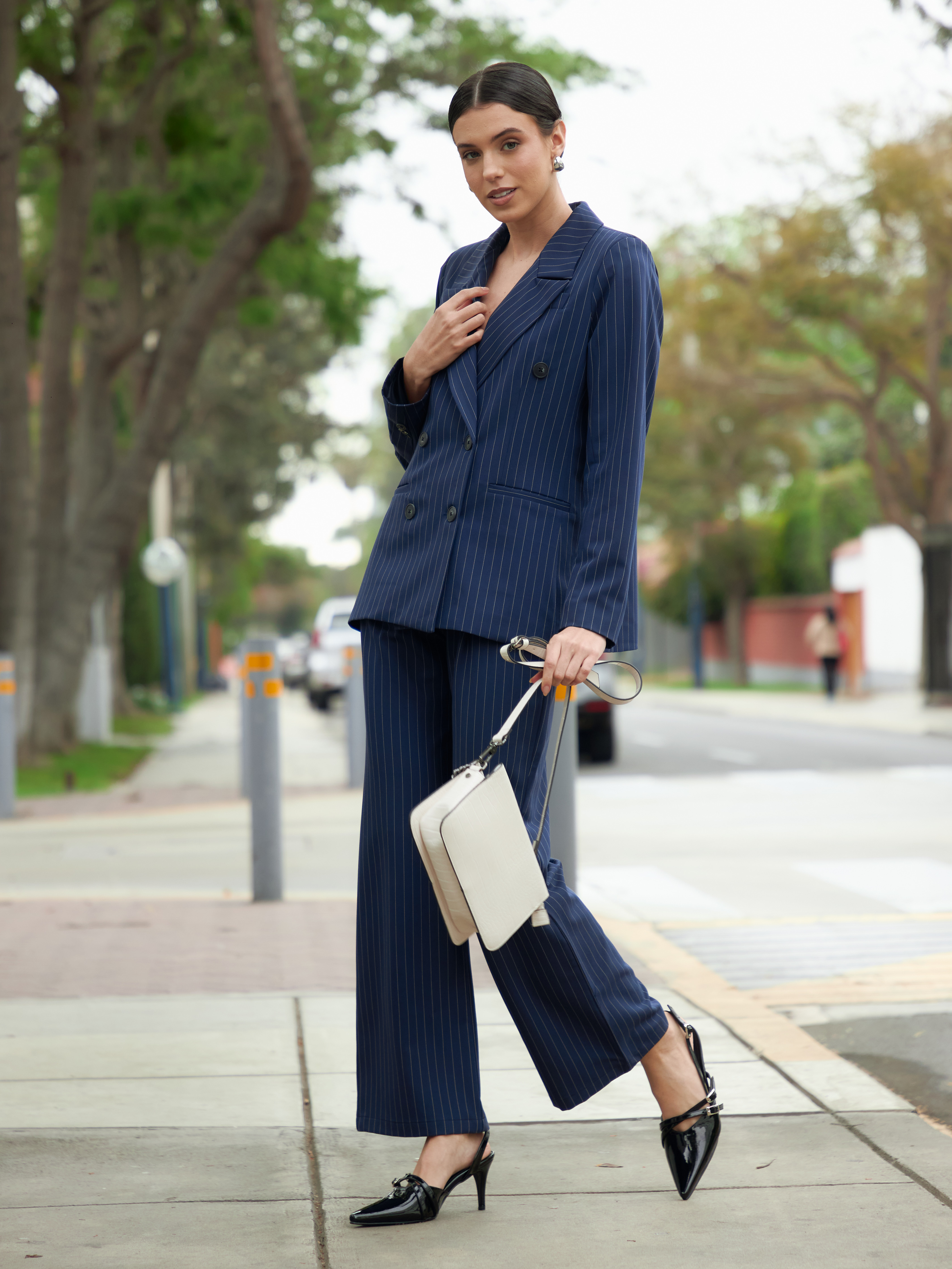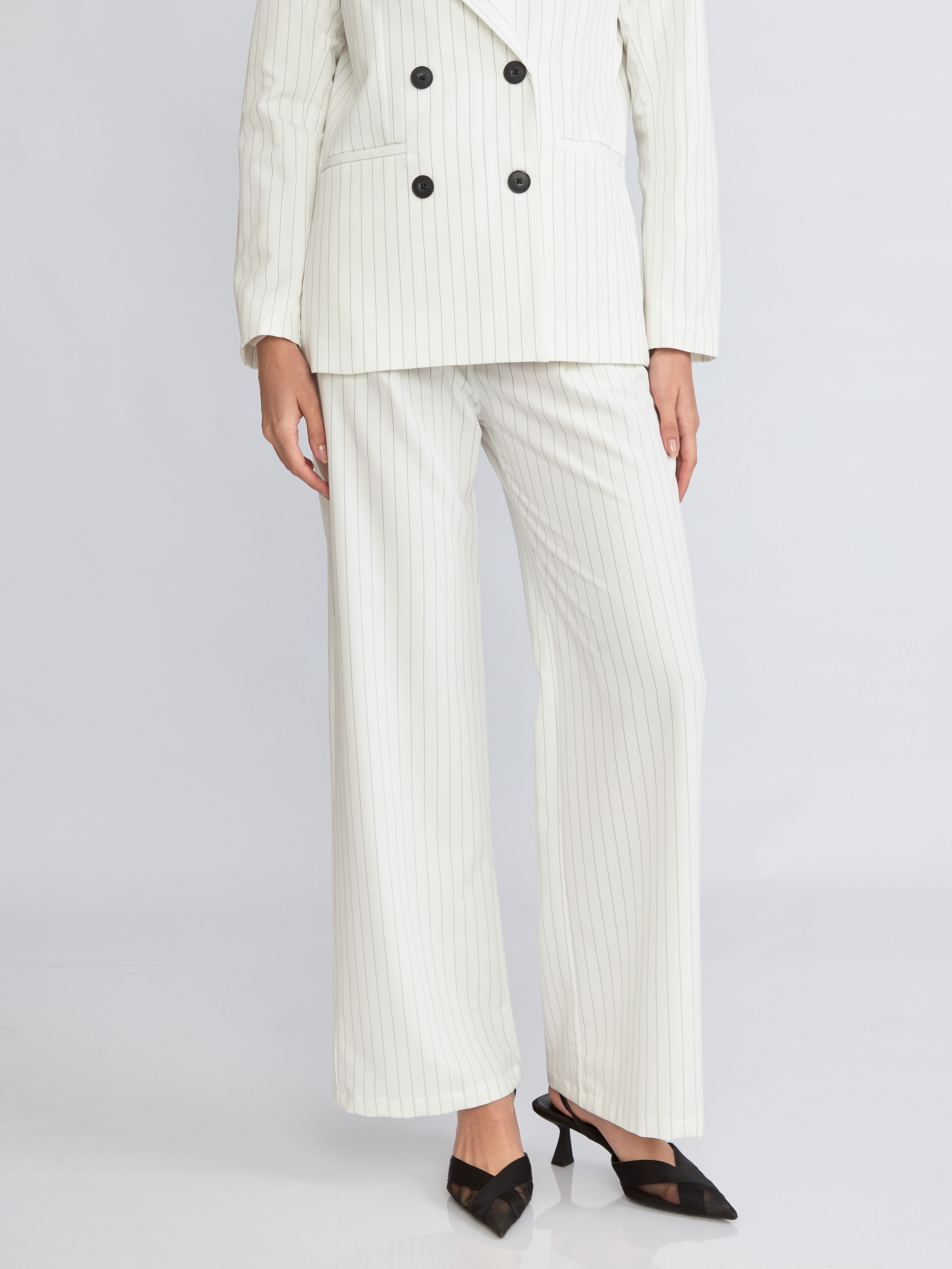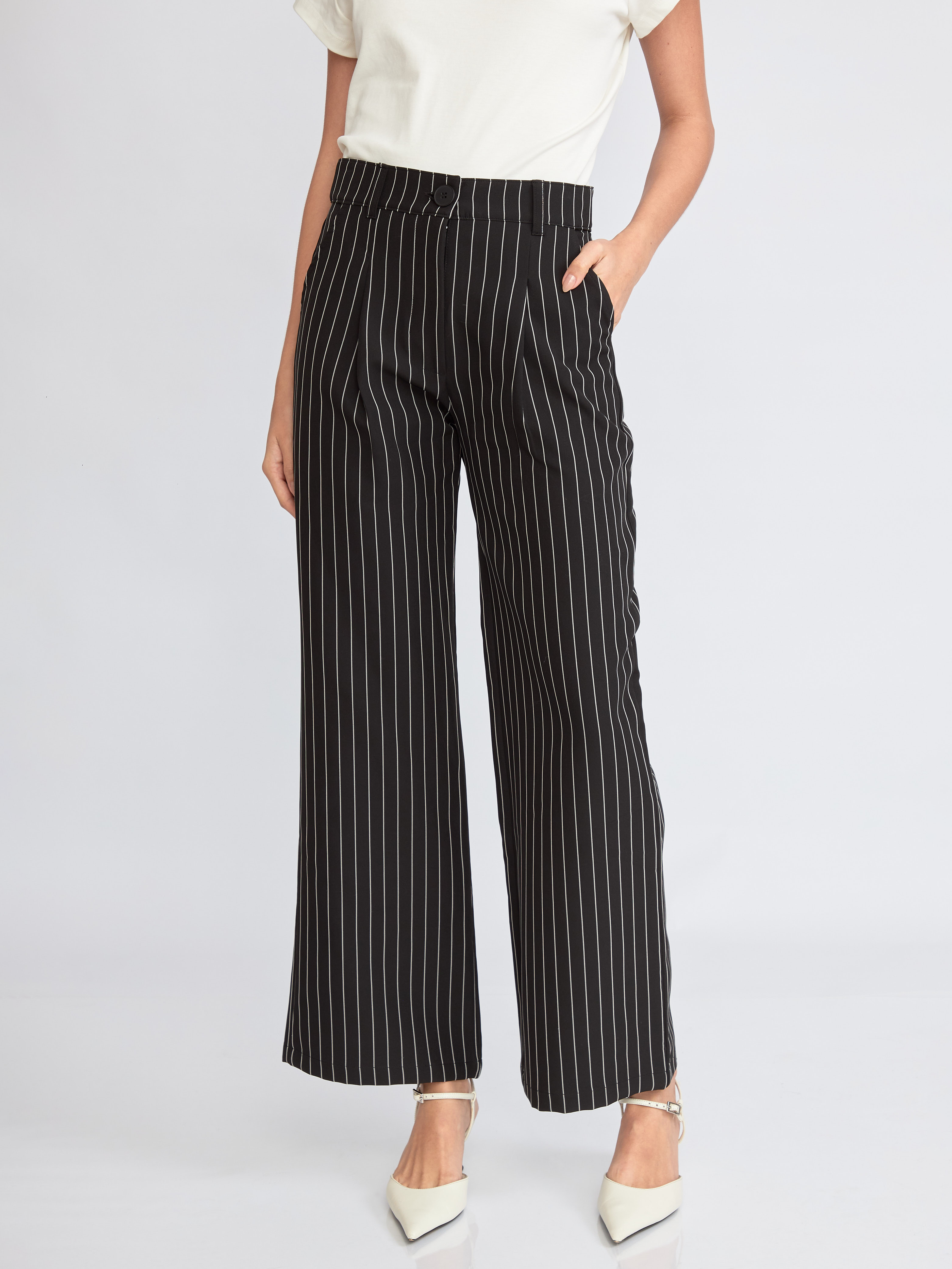 Pantalón sastre de corte recto, con cierre y botón delantero. Bolsillos laterales, pinzas y bolsillo decorativo detrás.