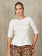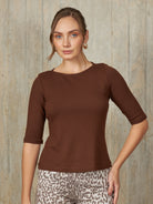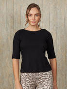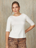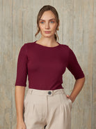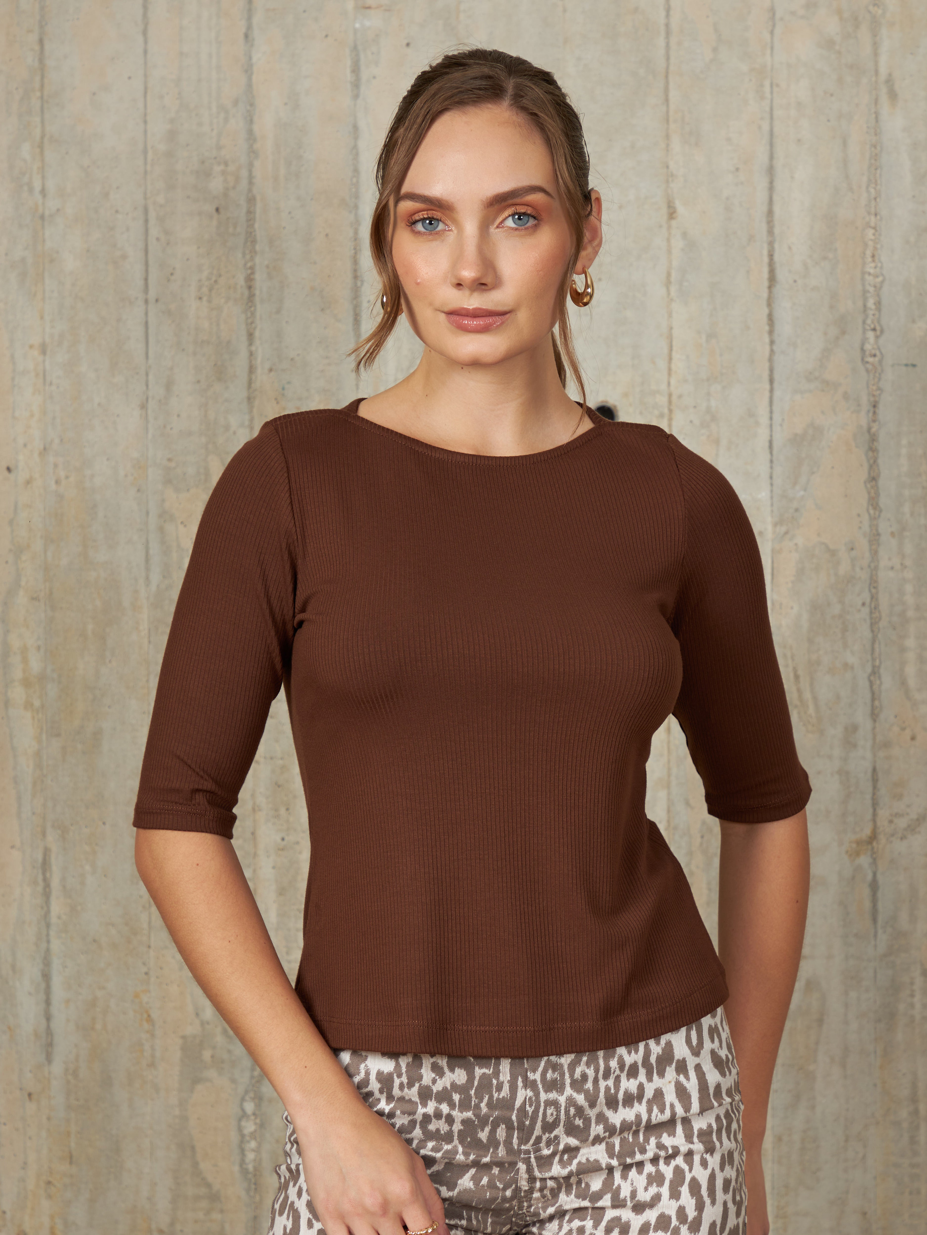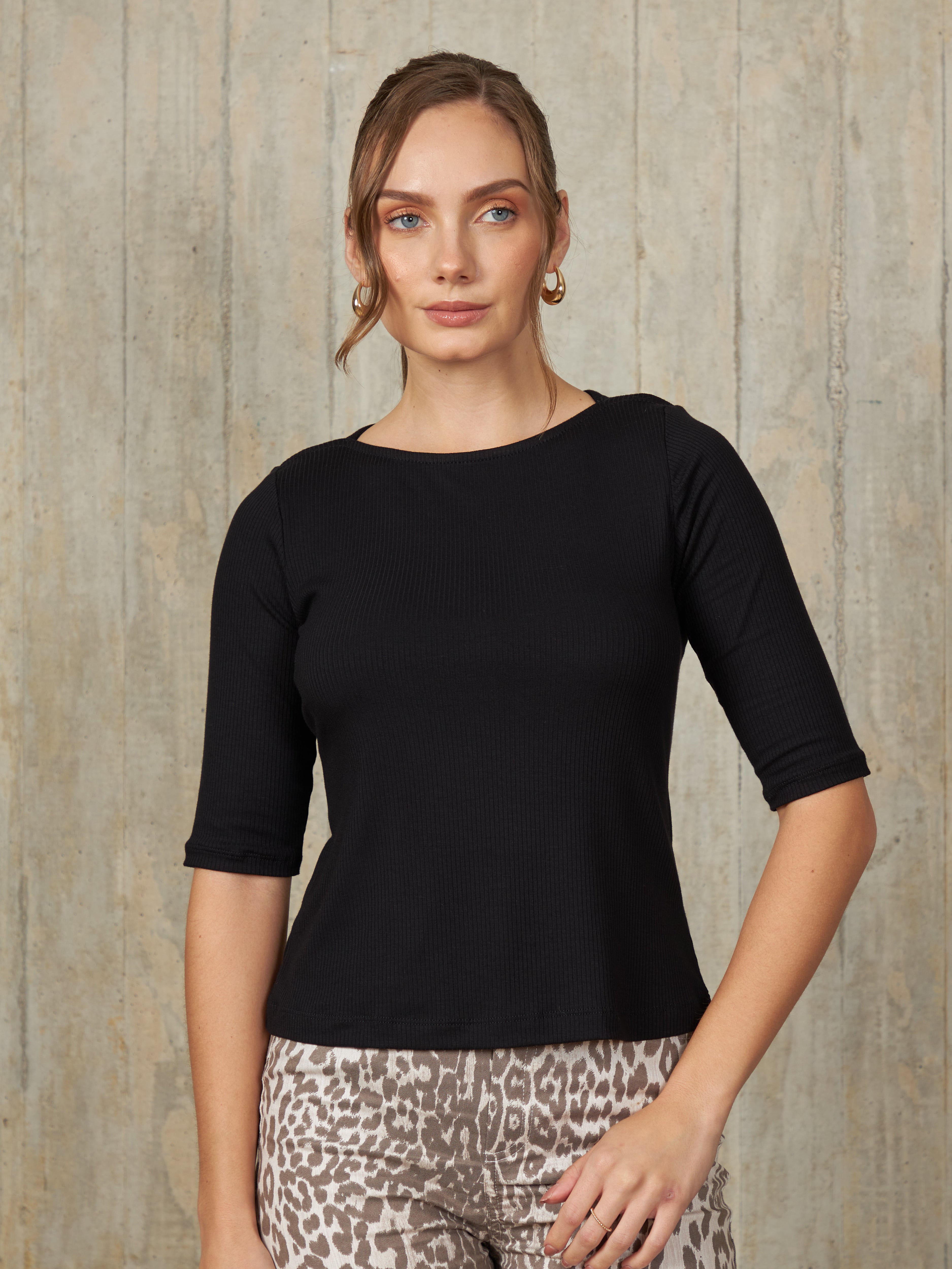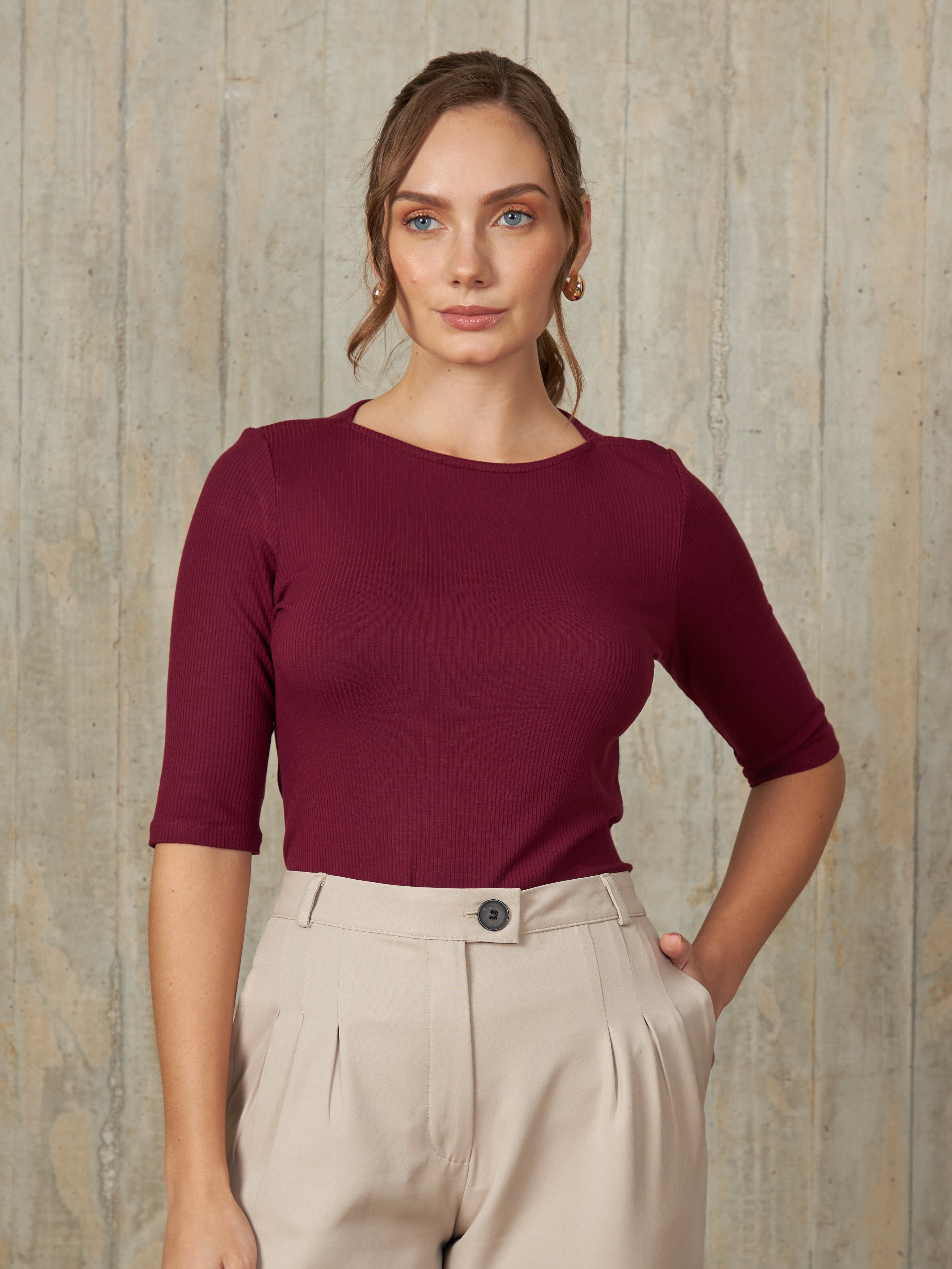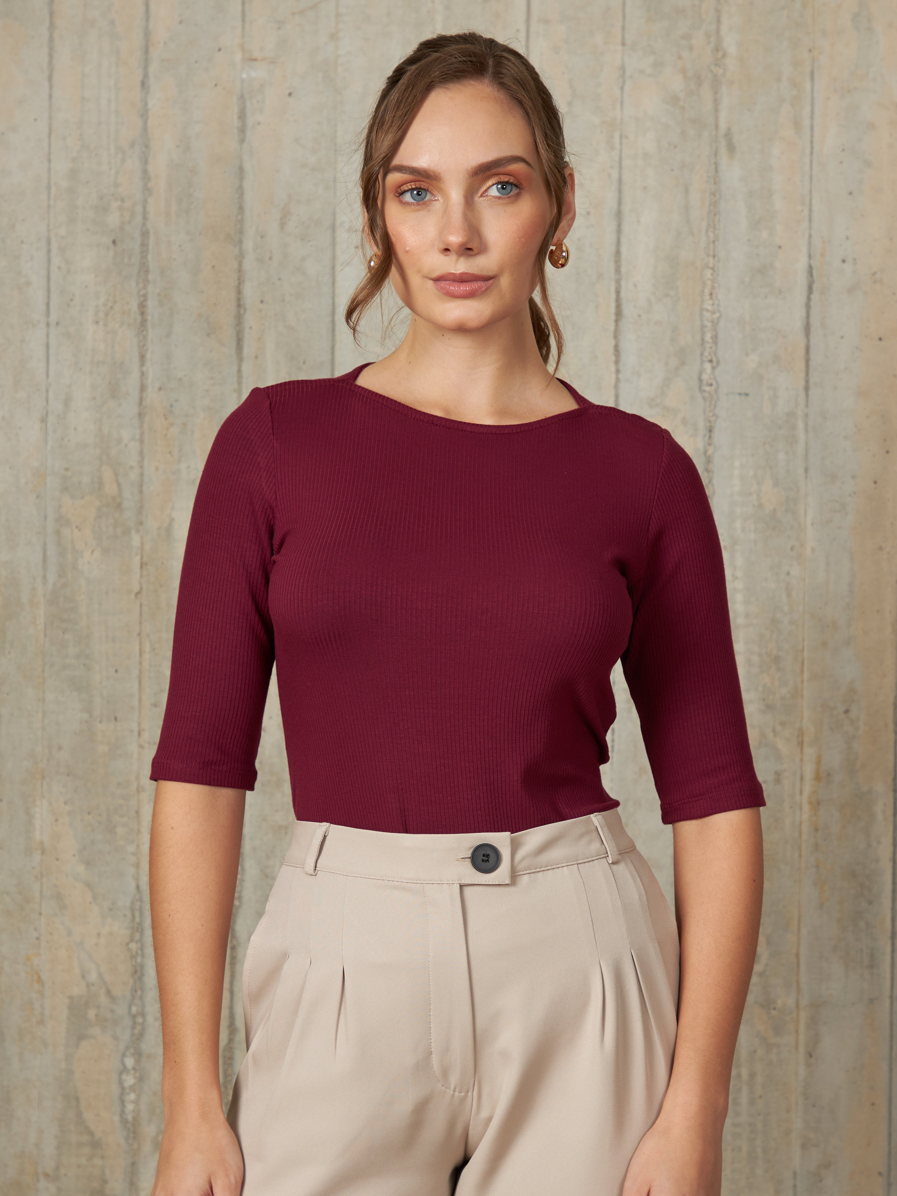Polo con manga tres cuartos, diseñado para ceñirse a la figura y resaltar la silueta.