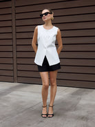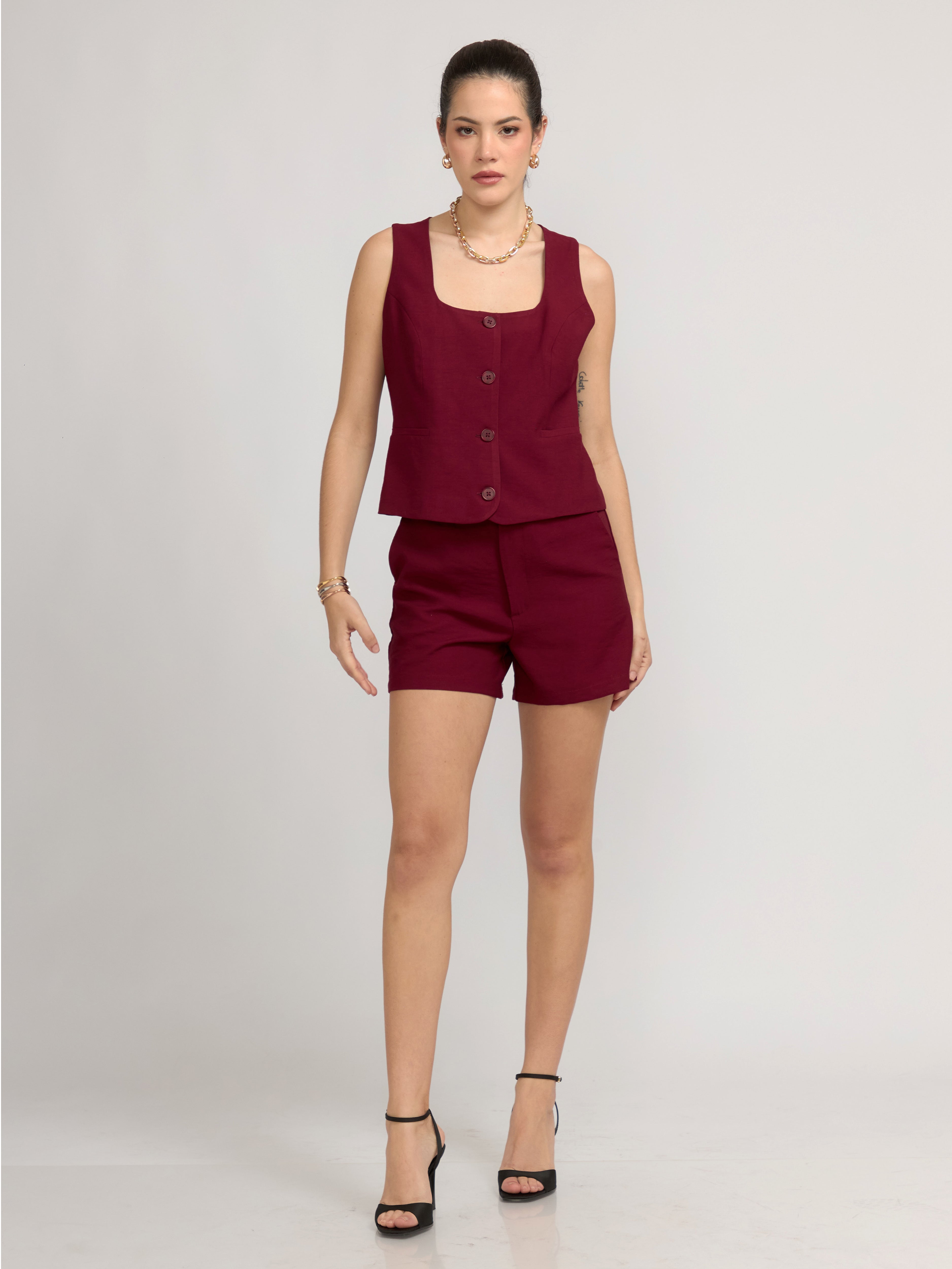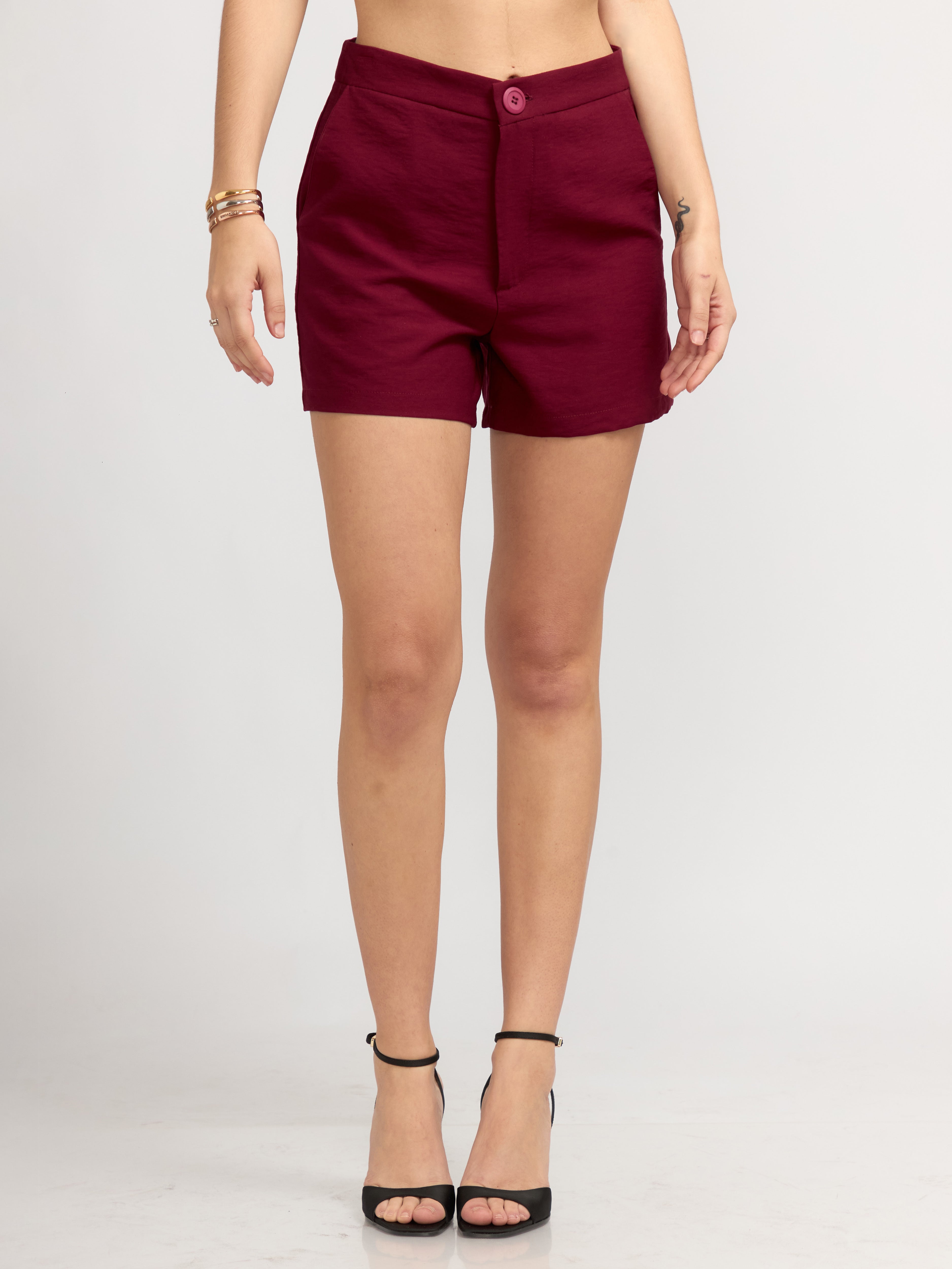 Short clásico de tiro alto, diseñado con un corte recto que estiliza la figura y proporciona un ajuste cómodo. Incluye bolsillos laterales.