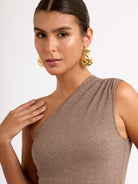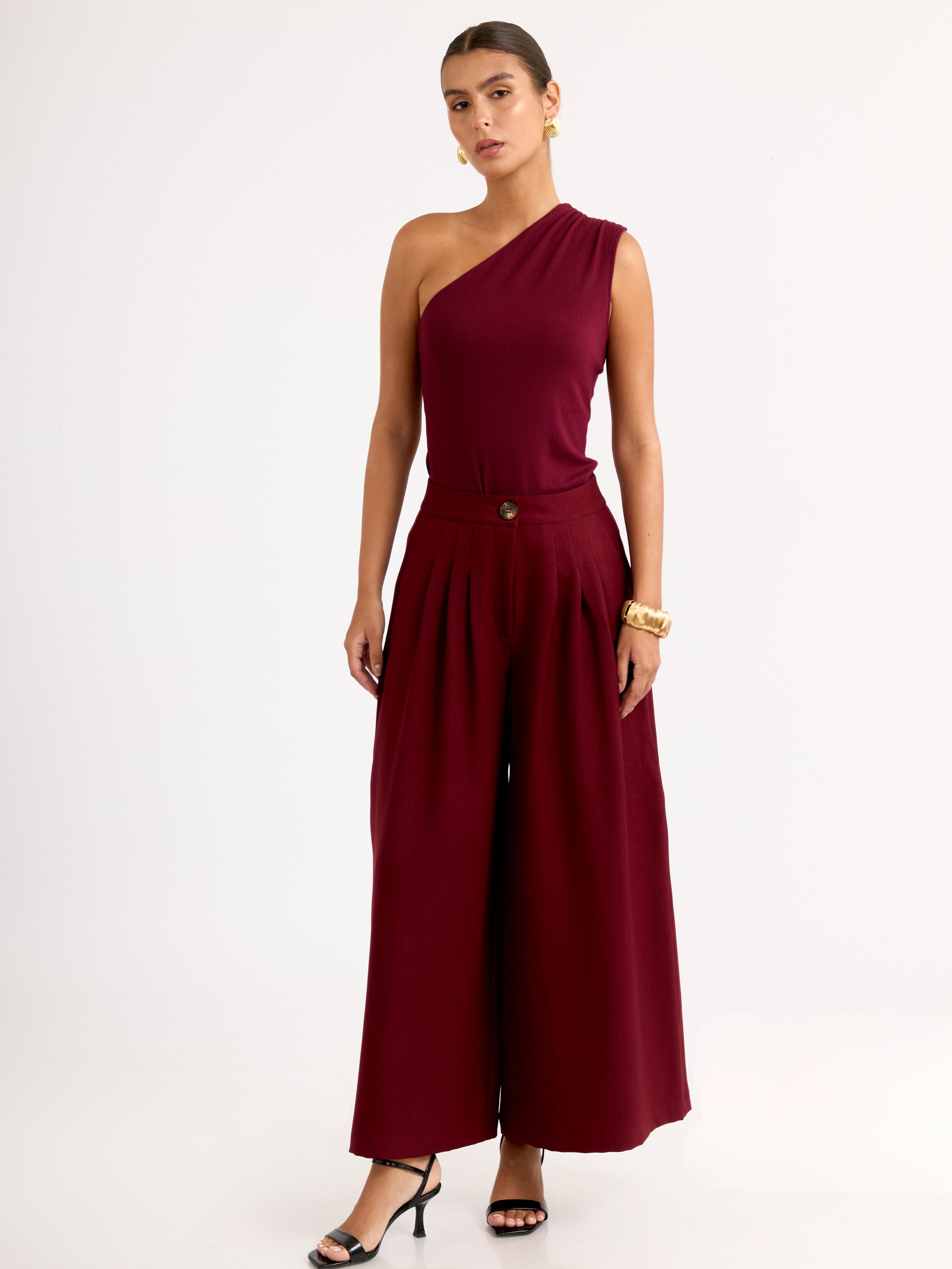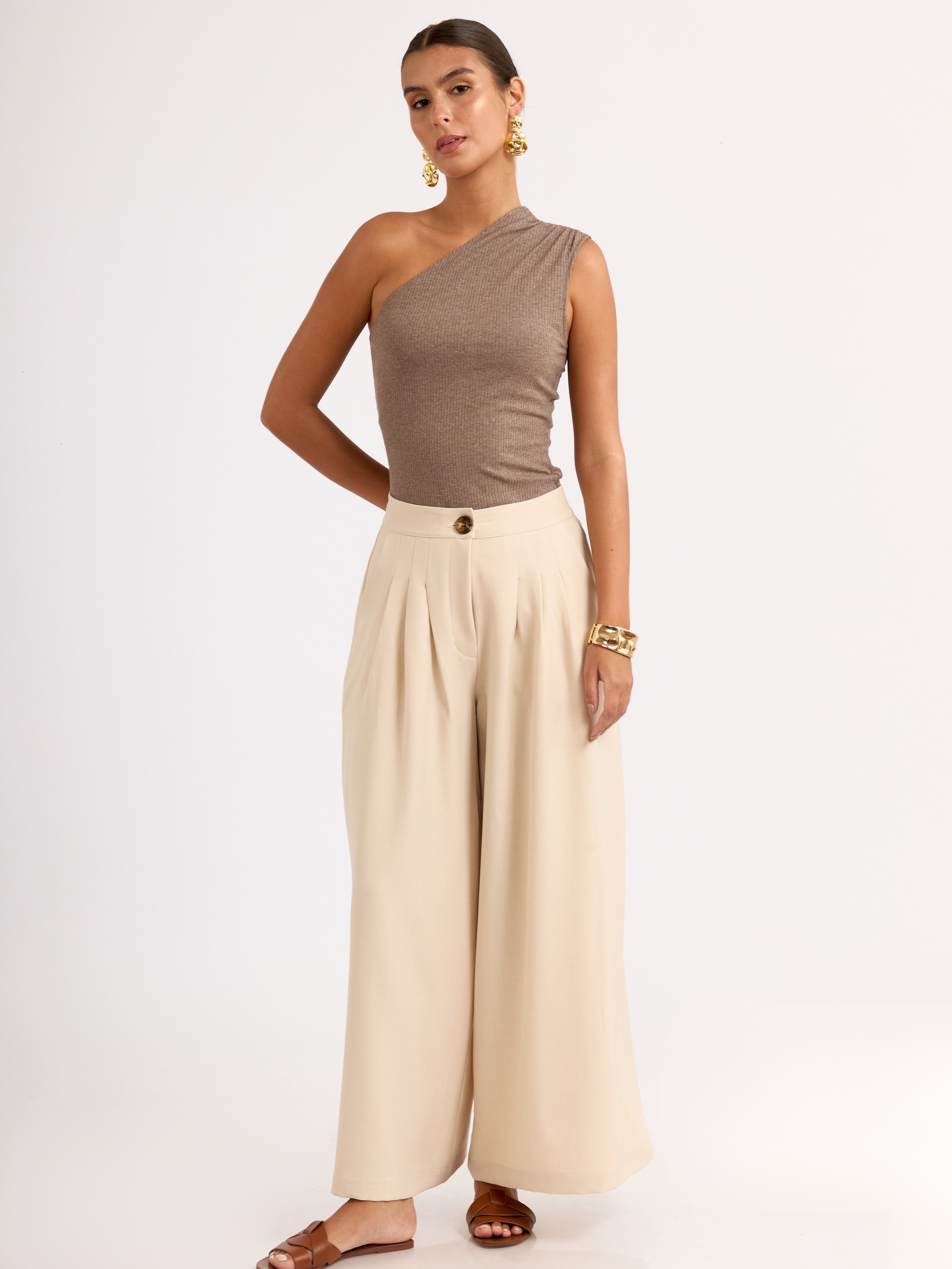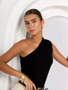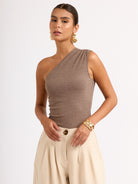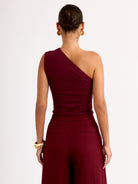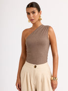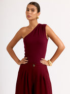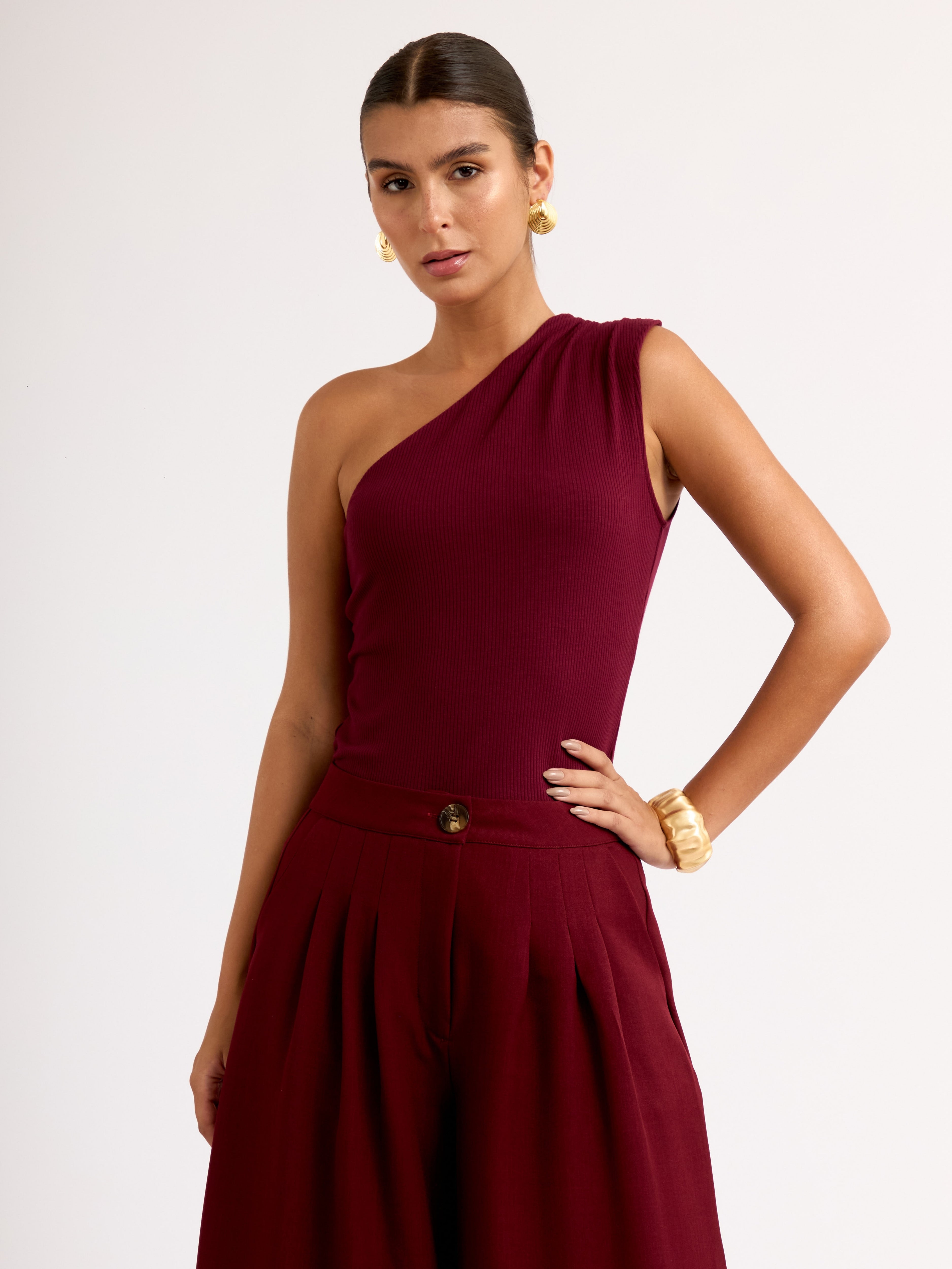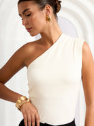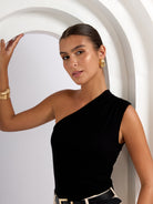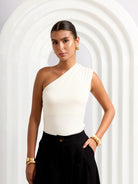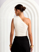 Top de un solo hombro. Diseño minimalista y ajustado se adapta perfectamente al cuerpo, mientras que su largo lo hace ideal para combinar con prendas de tiro alto o capas.