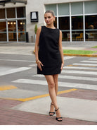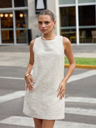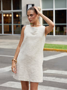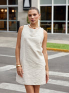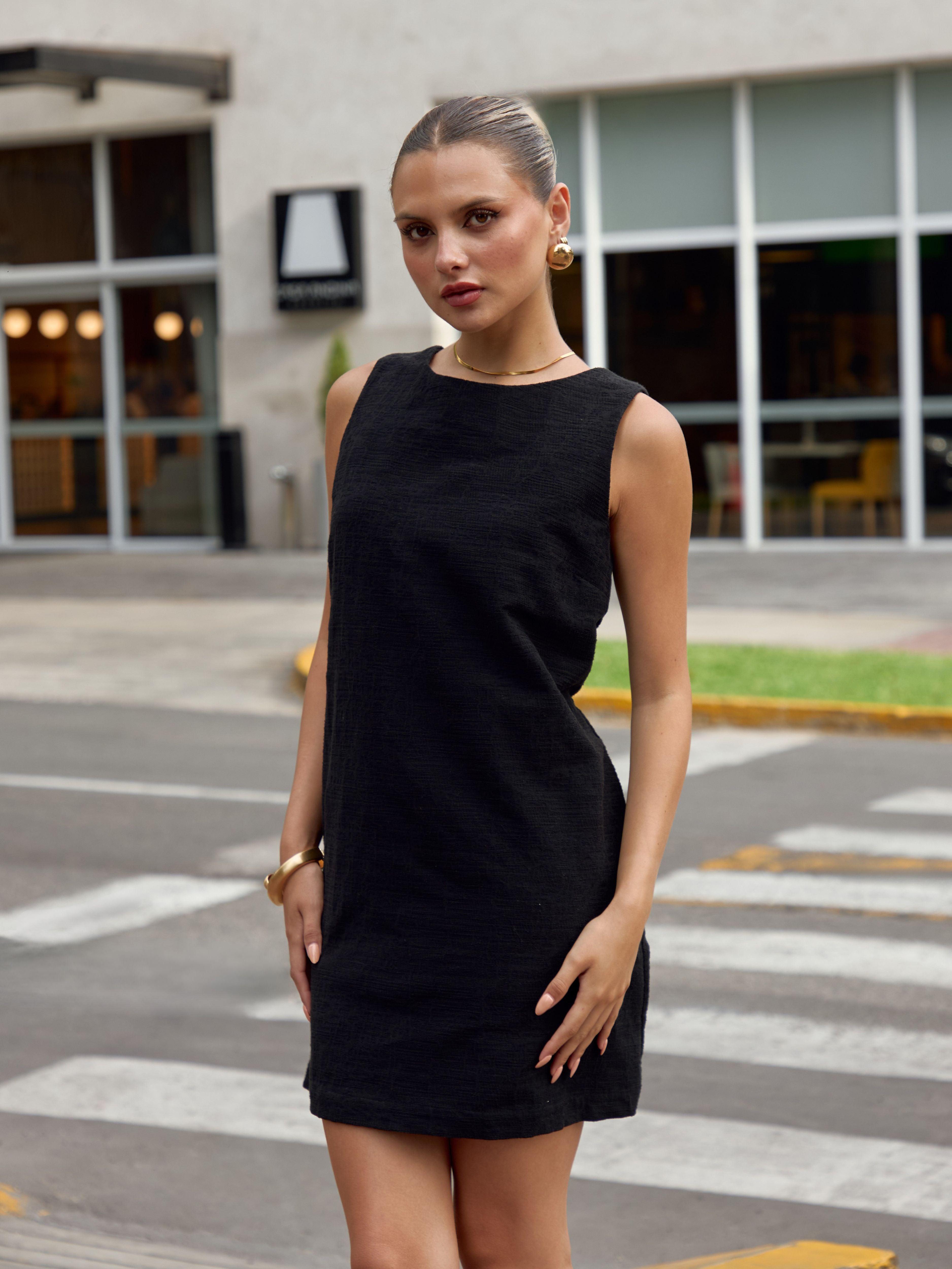 Vestido mini de lino con diseño sin mangas. De corte A, que asegura un ajuste relajado que favorece a diferentes tipos de cuerpo.