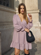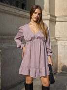 Vestido con un escote en V y elástico en la espalda de la cintura y los puños.