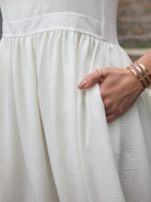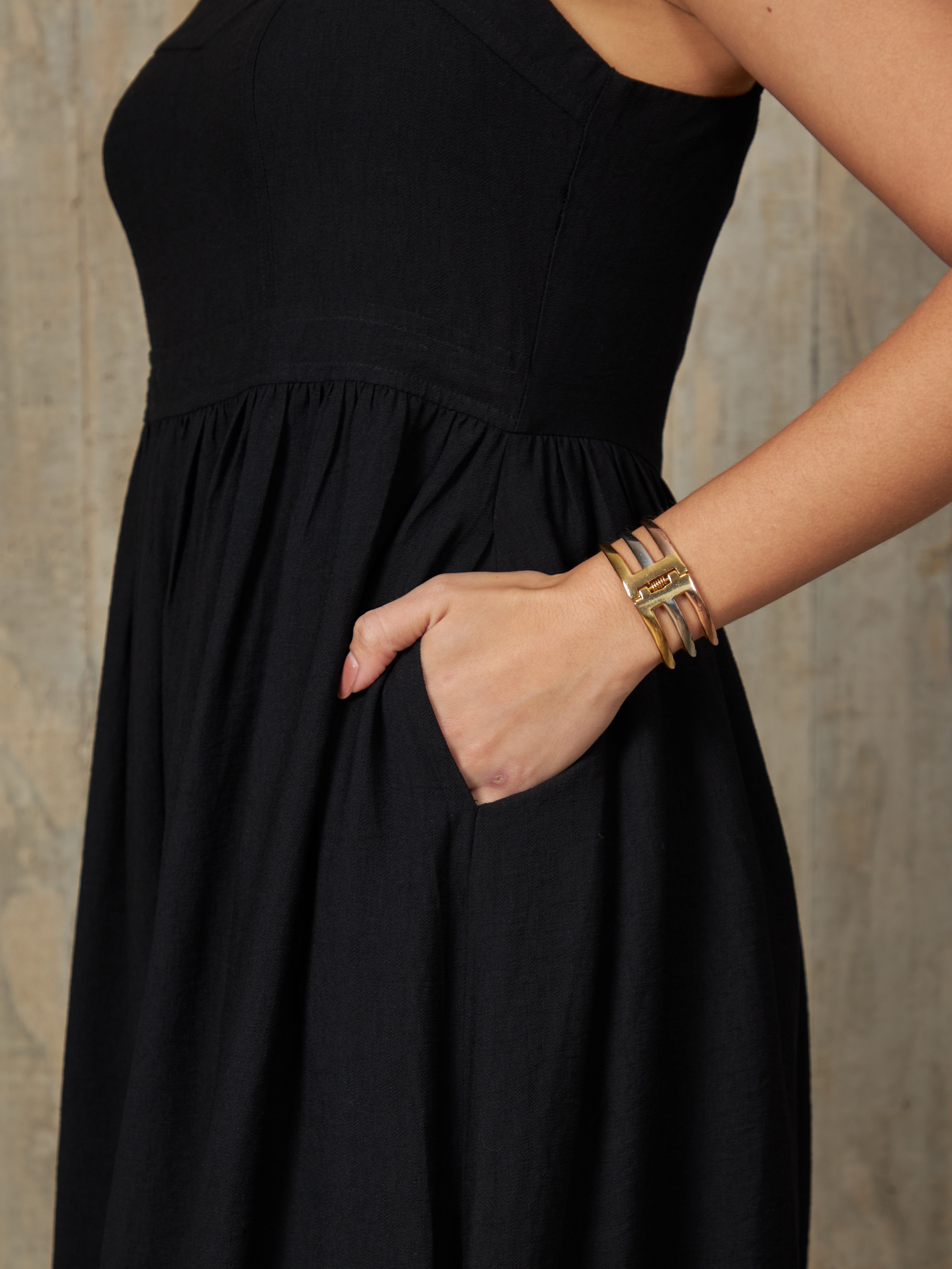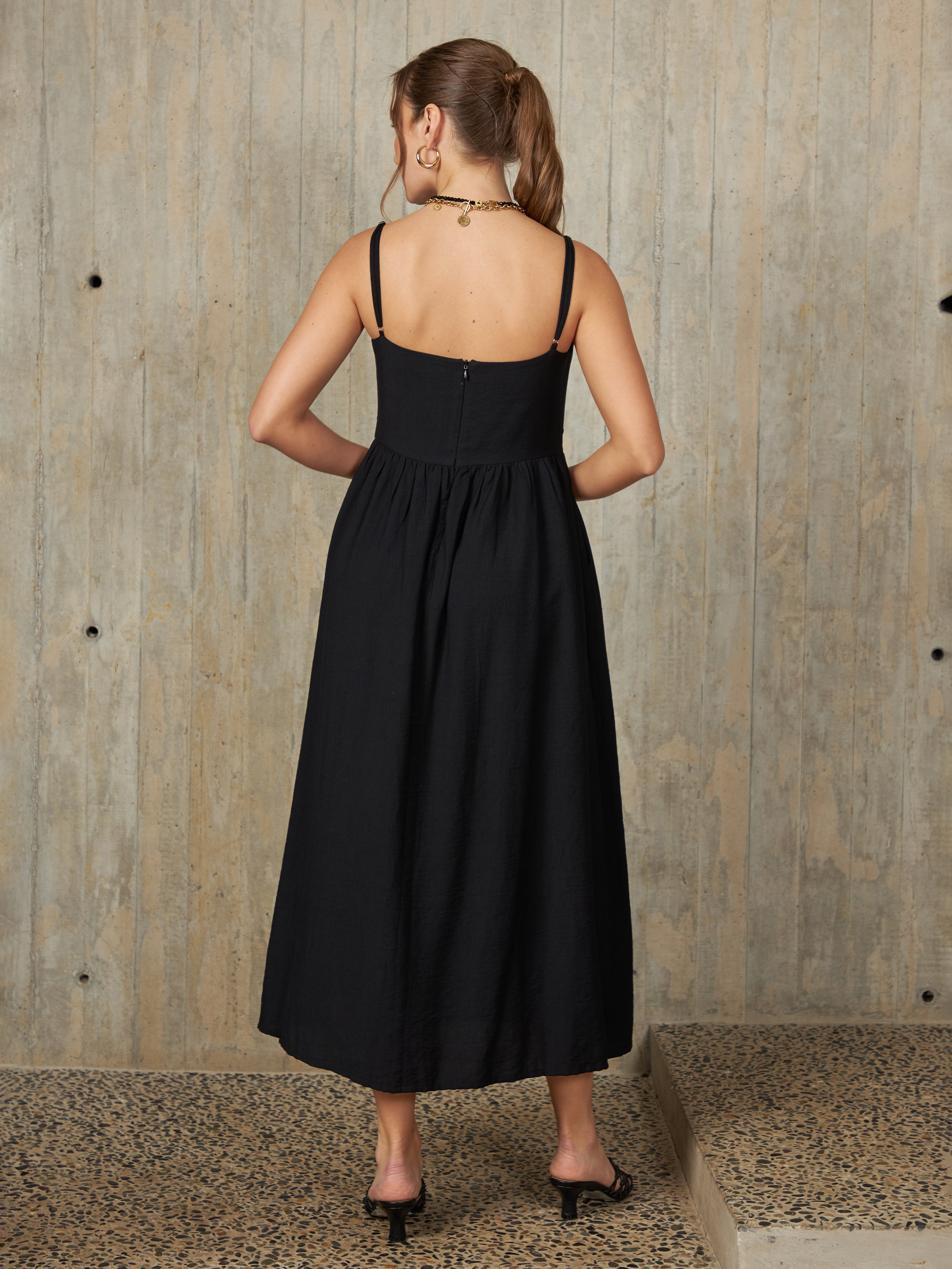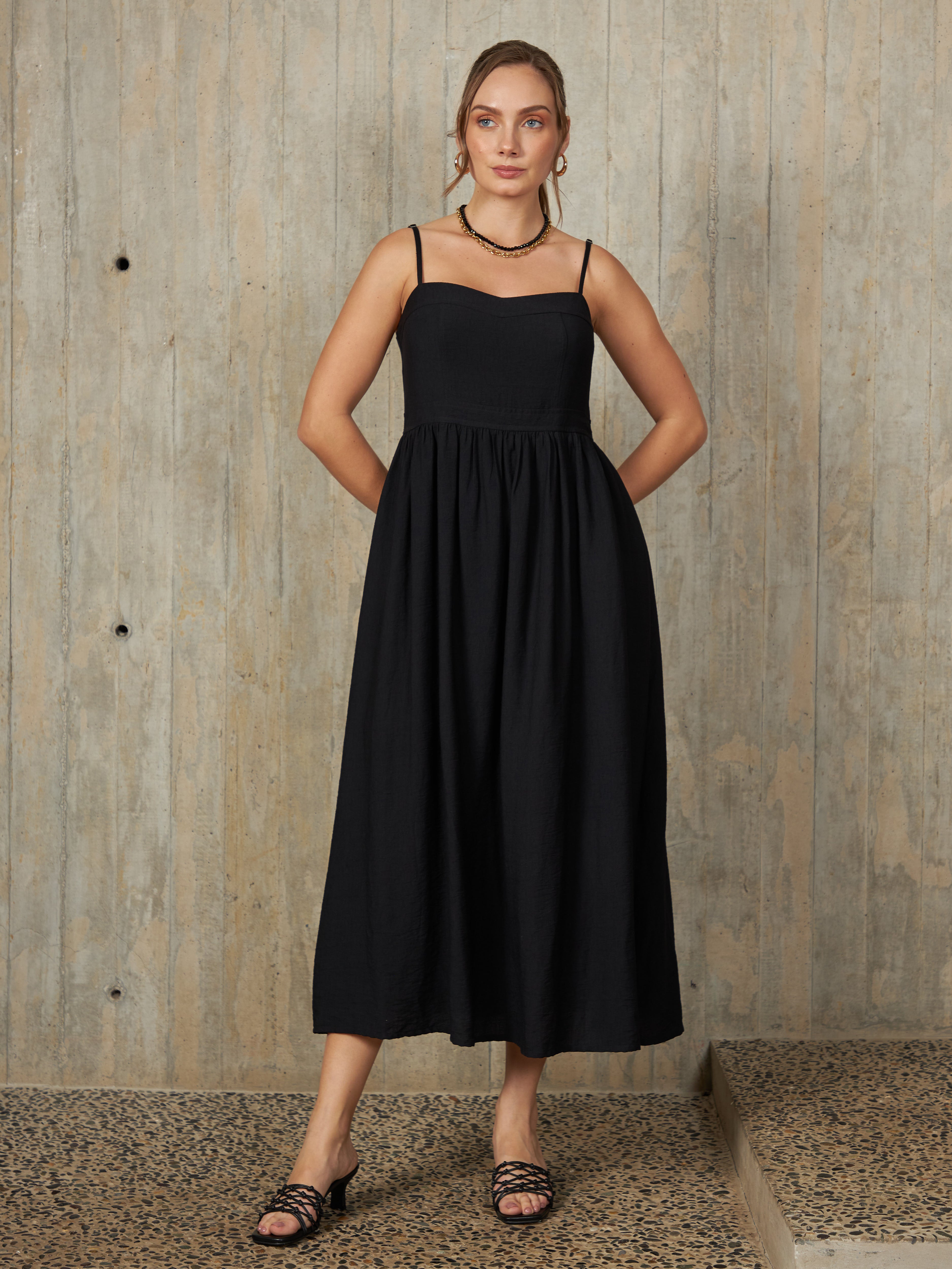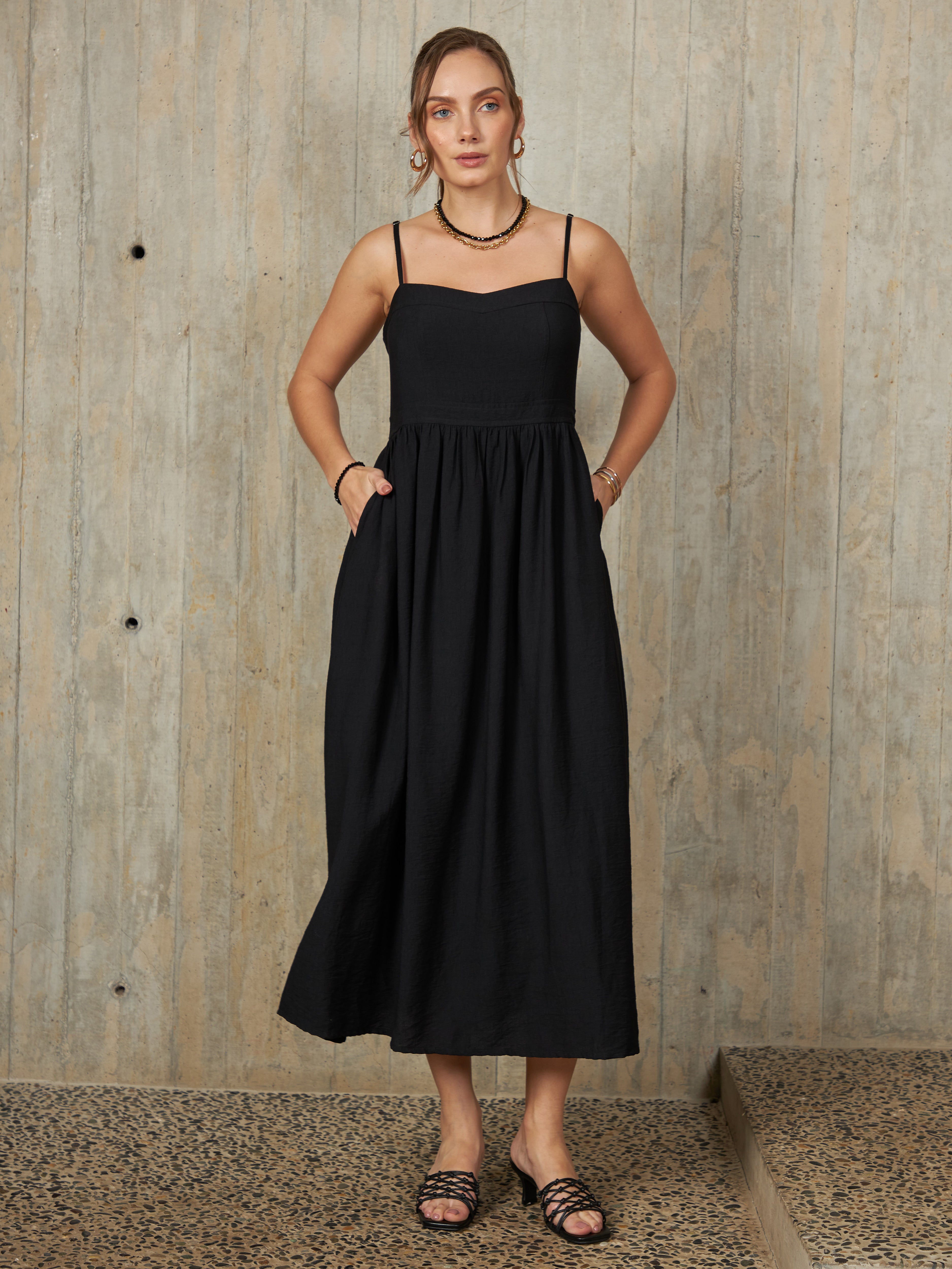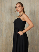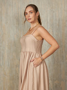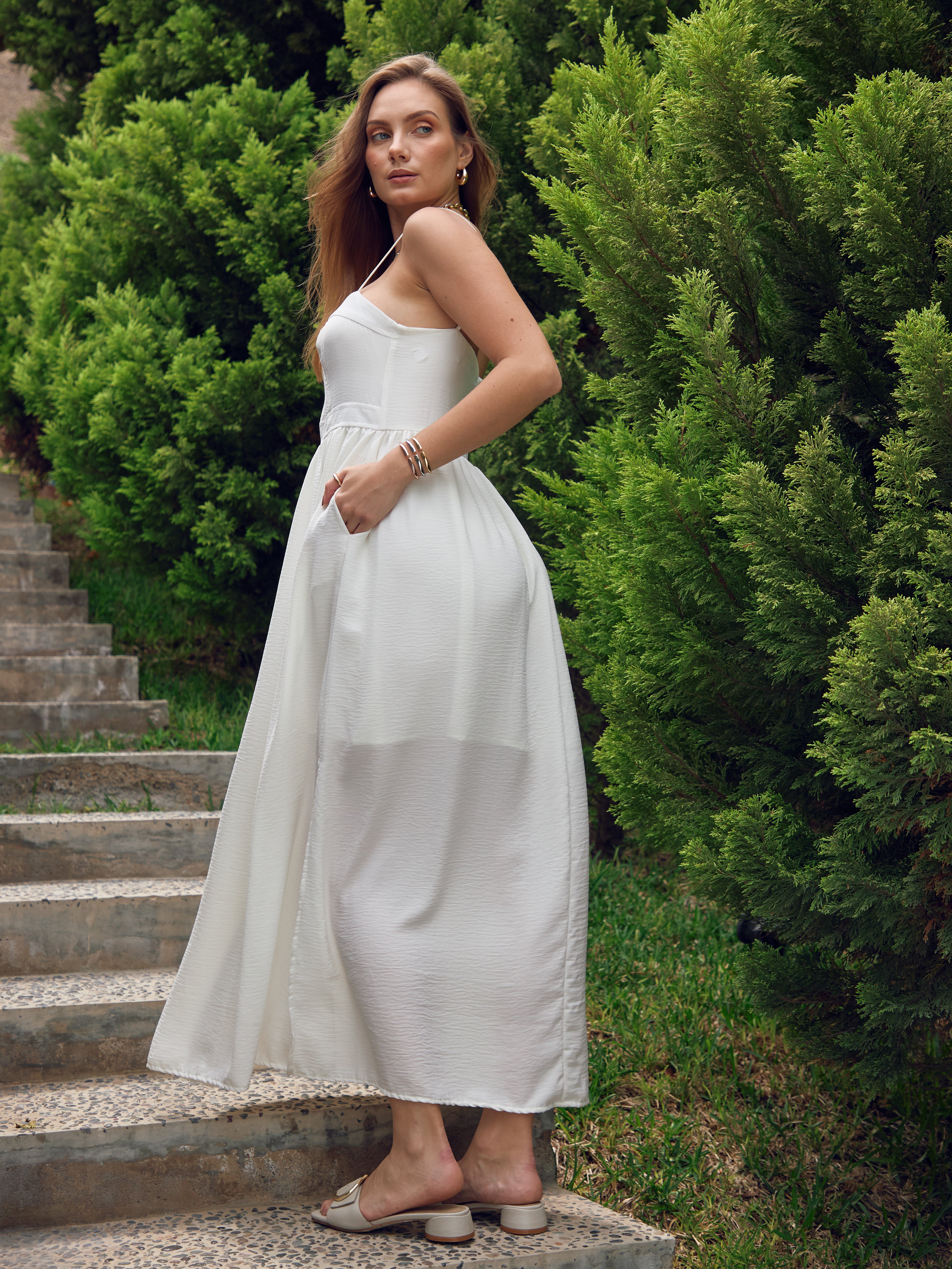 Vestido con tirantes ajustables y corte amplio estilo princesa. Con un ajuste en la cintura y cierre invisible en la espalda para un ajuste perfecto.