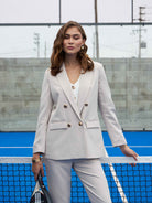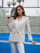 Blazer largo con fit regular, lleva solapa con muesca. Cuenta con doble botonadura en la parte delantera y bolsillos amplios estilo sastre. Versátil para cualquier temporada. Combínalo con el Pantalón Gales.