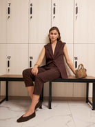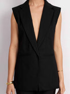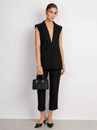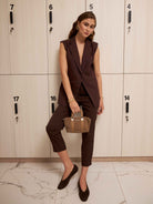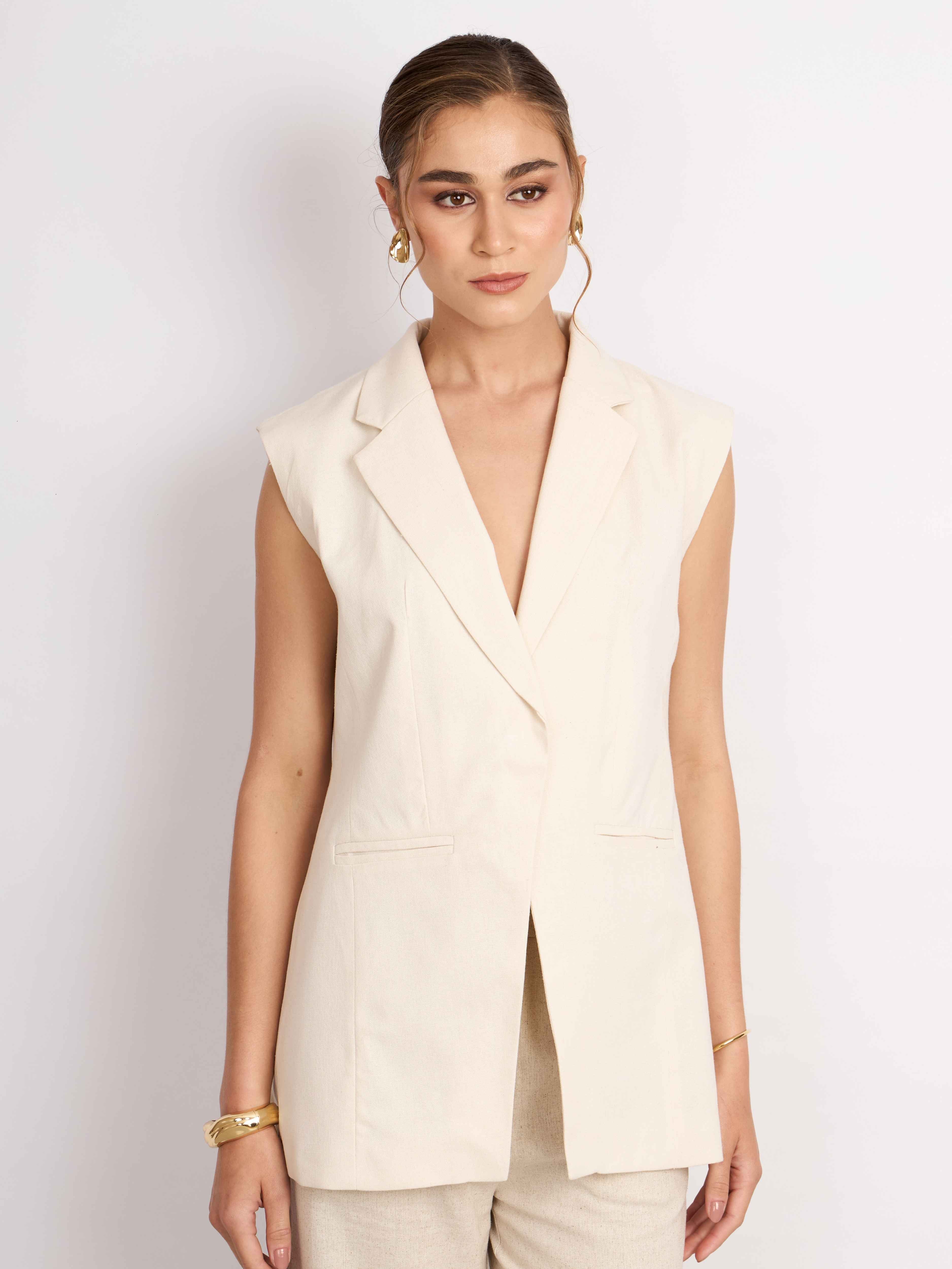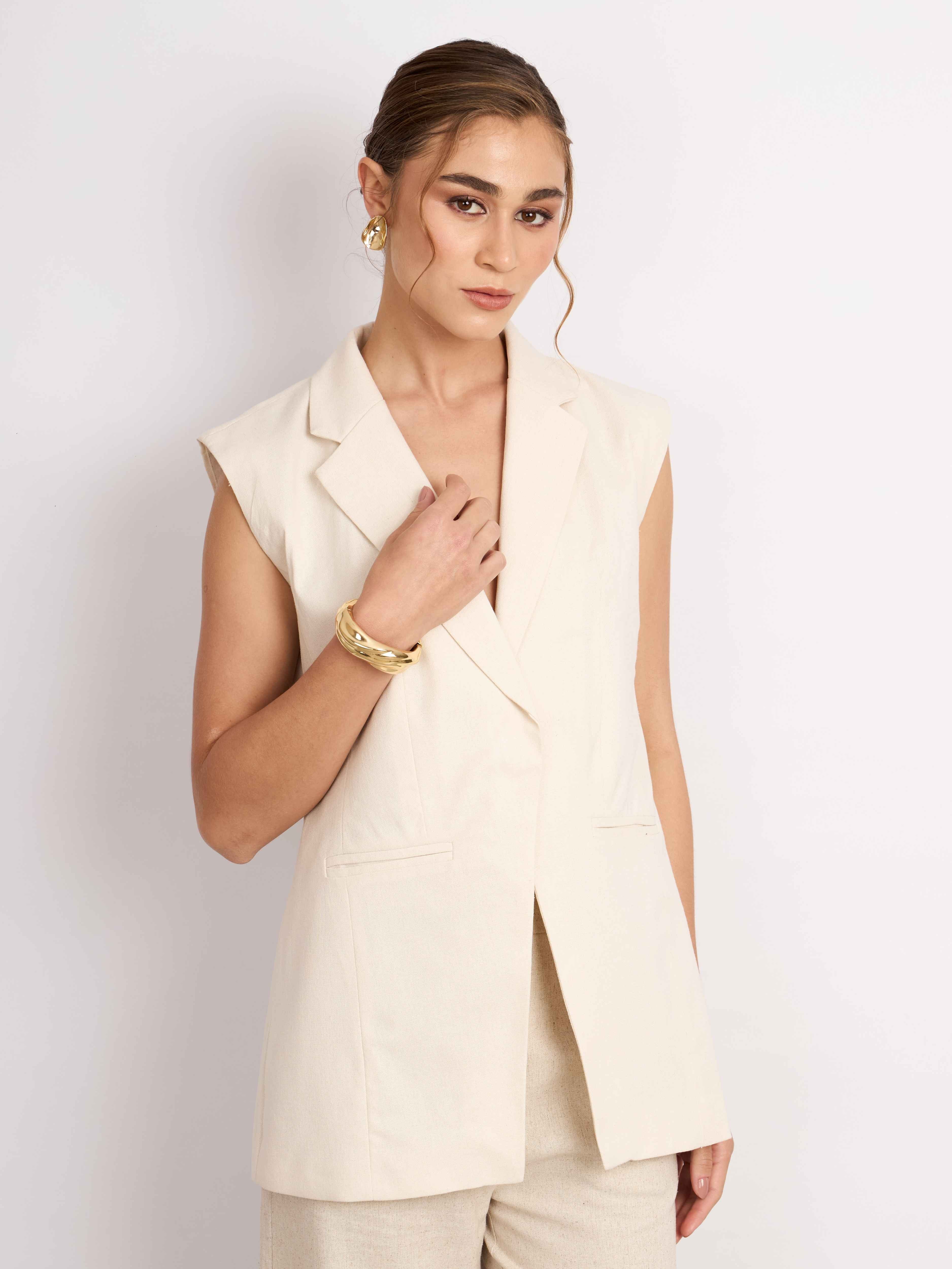 Chaleco estilo traje, fit regular y hombros estructurados. Cuenta con cuello con solapa y bolsillos. Botón delantero interior. Elegante y versátil. Combínalo con el pantalón Diana.