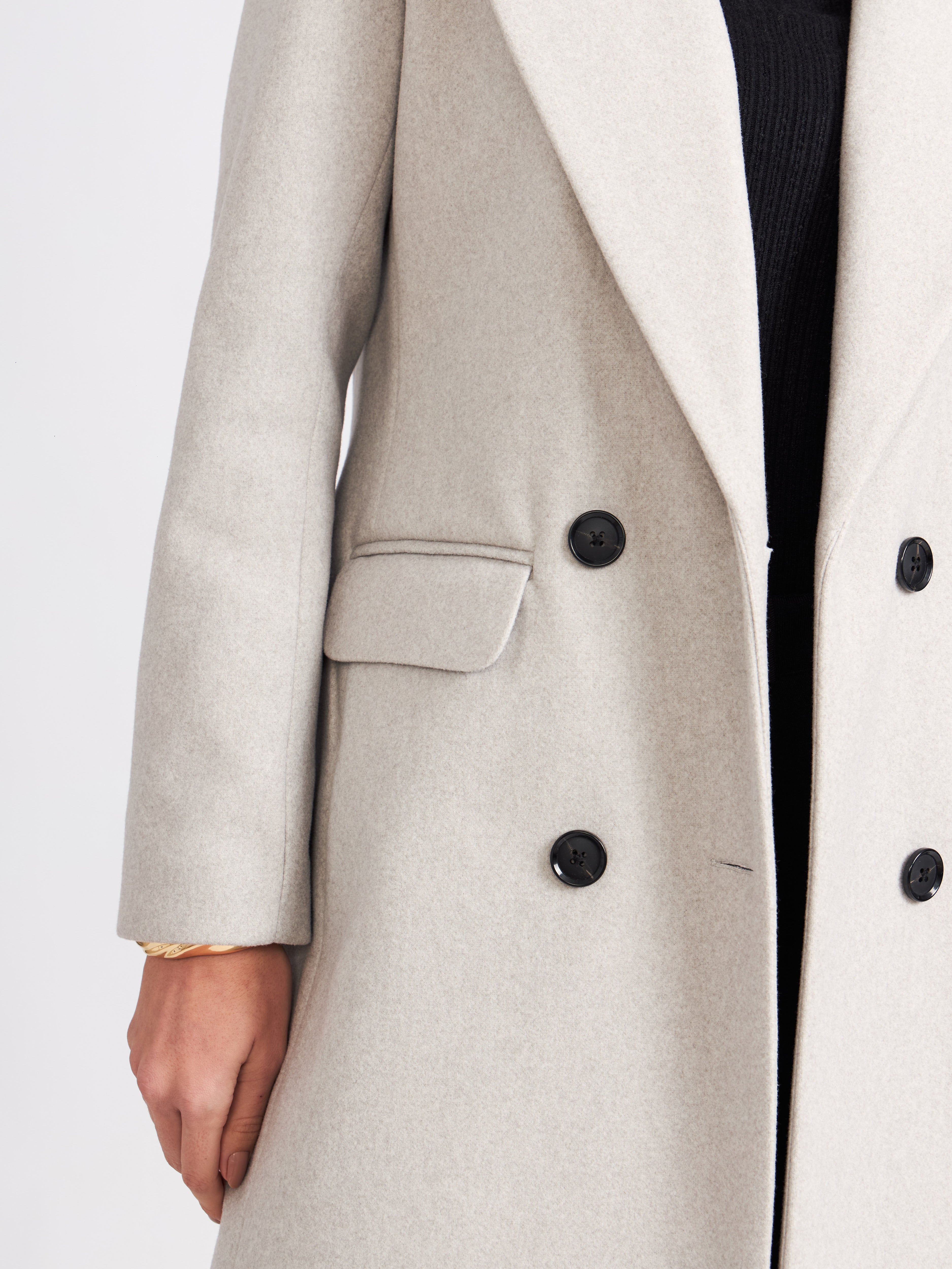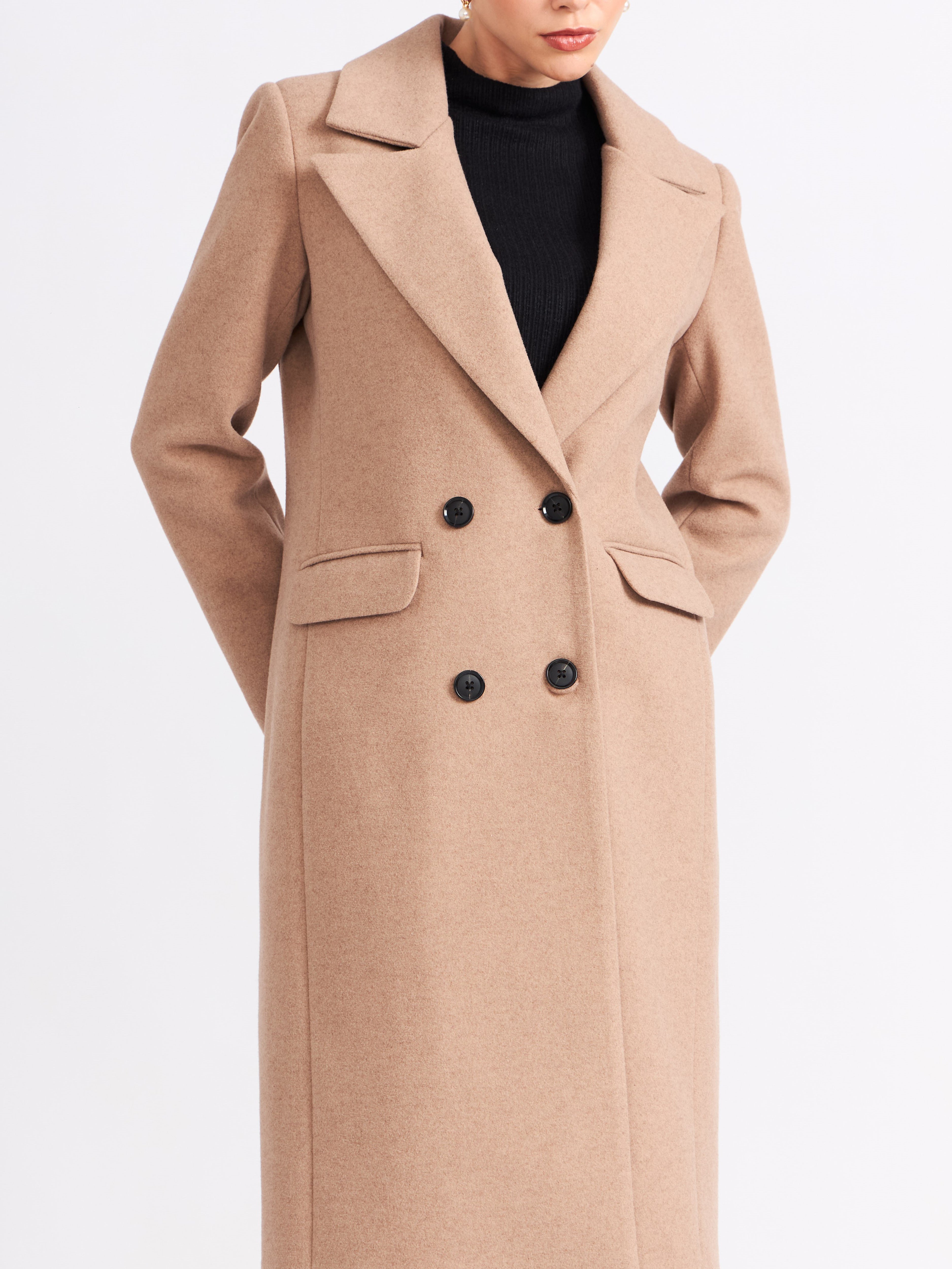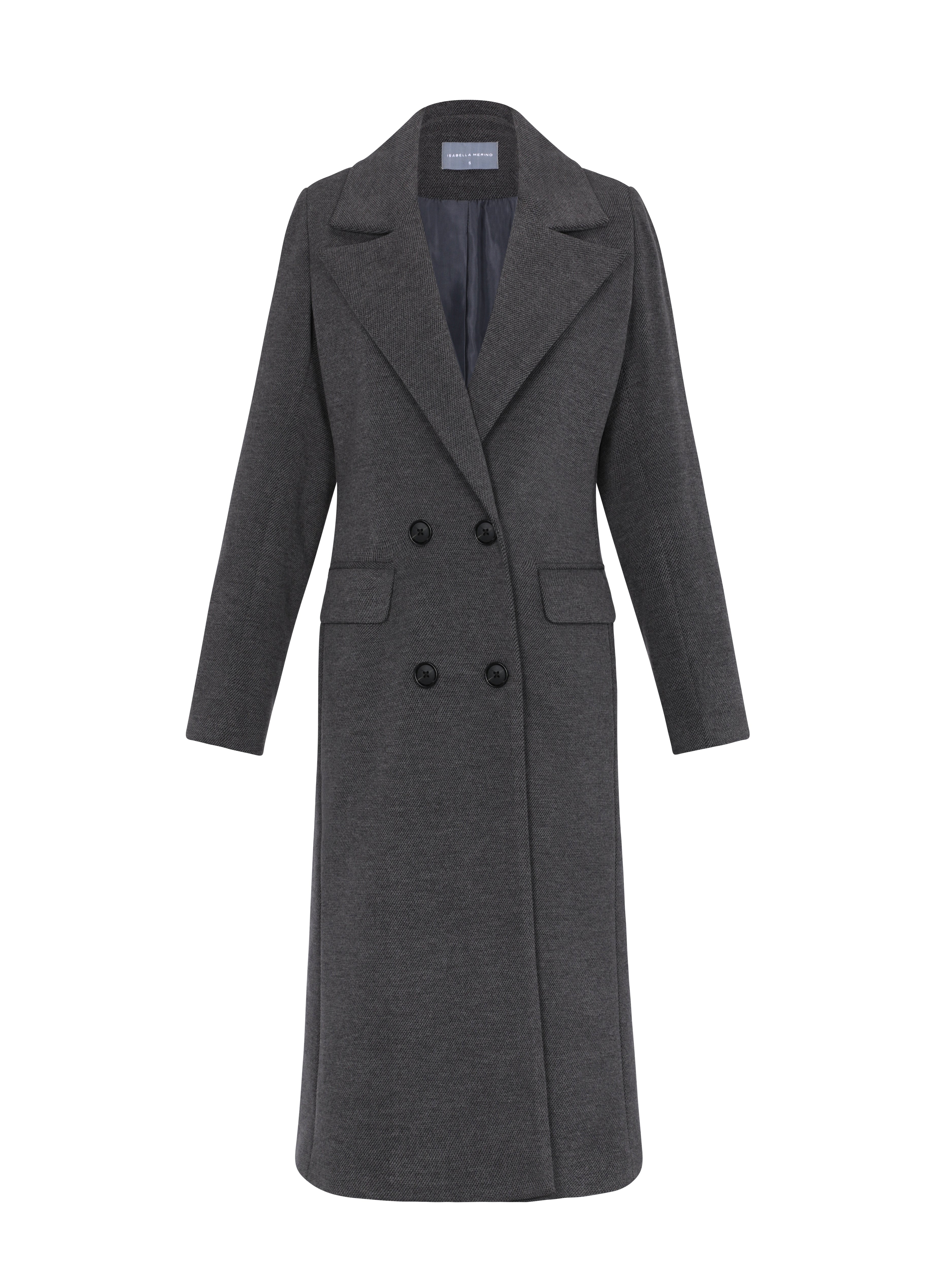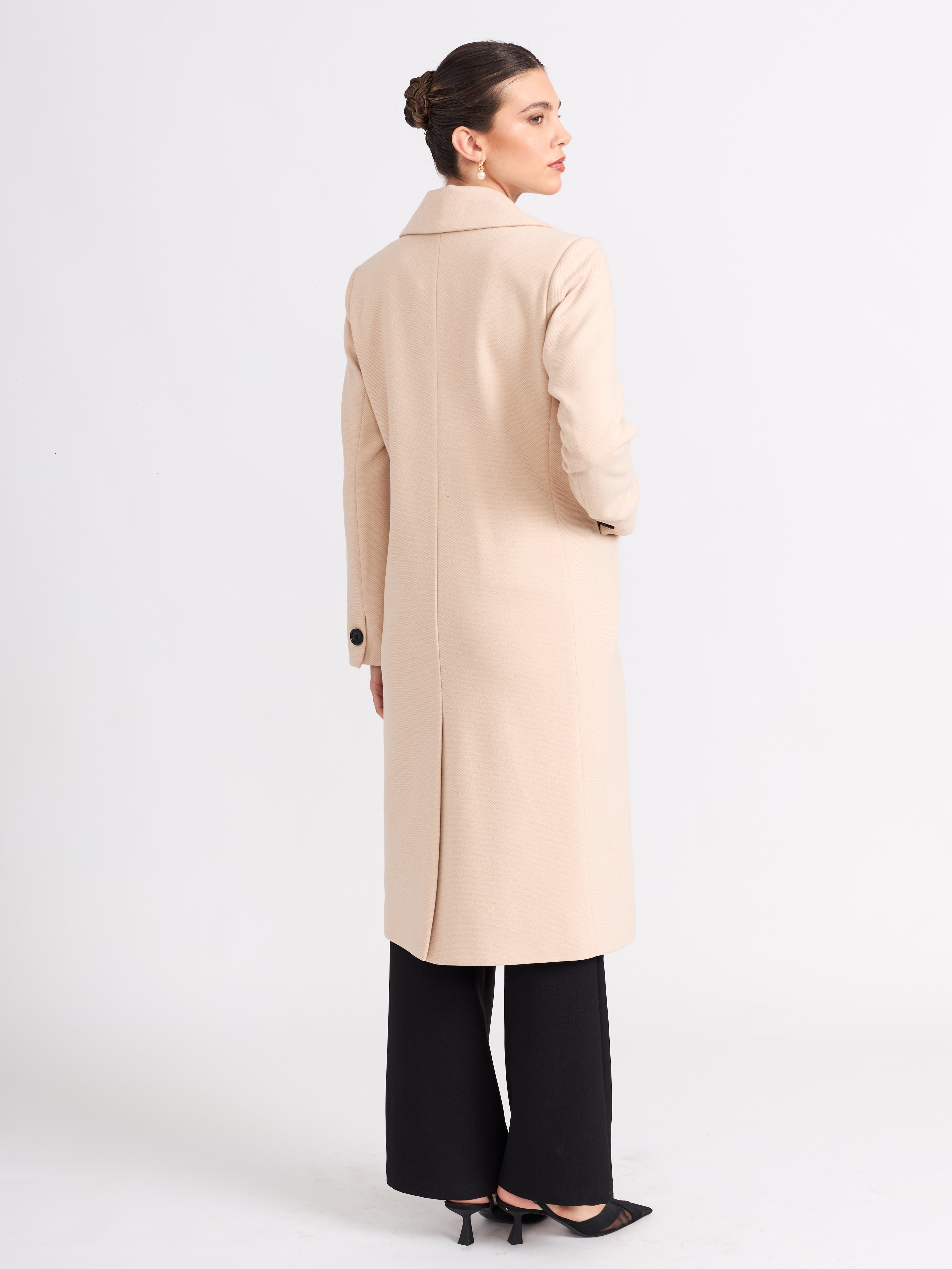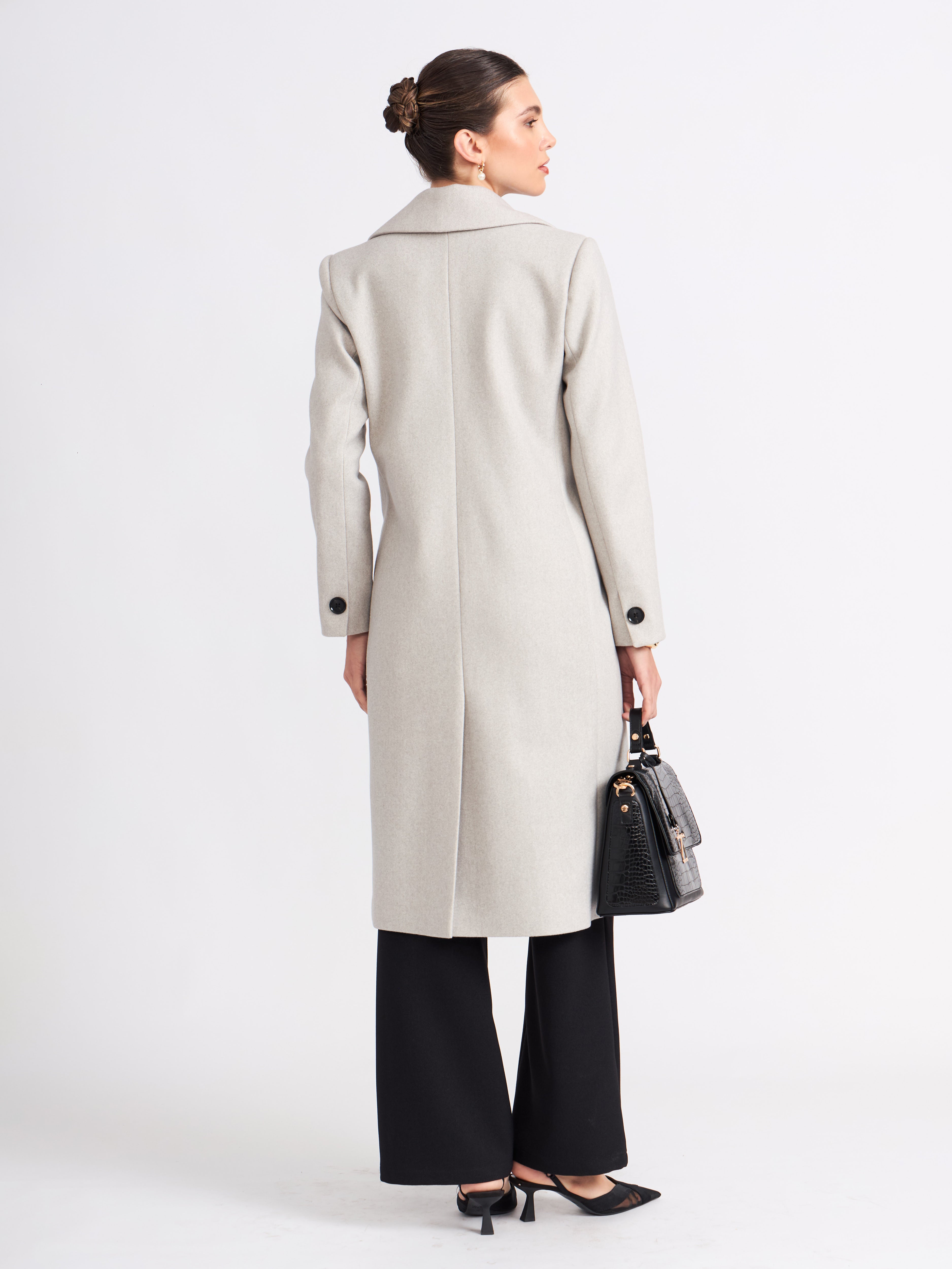 Abrigo largo cruzado fit regular. Con doble botonadura y bolsillos delanteros con solapa. Ideal para elevar todos tus looks.