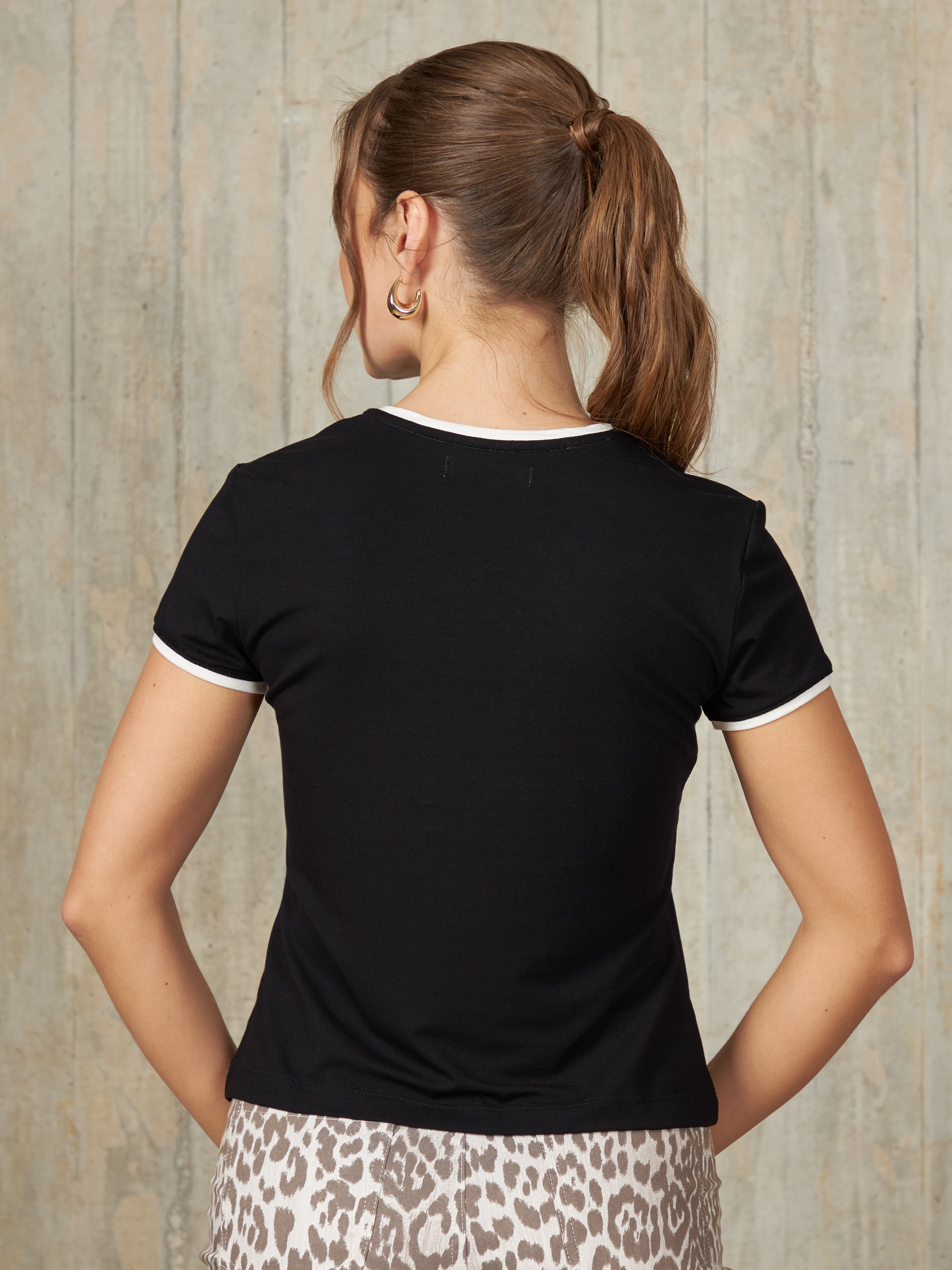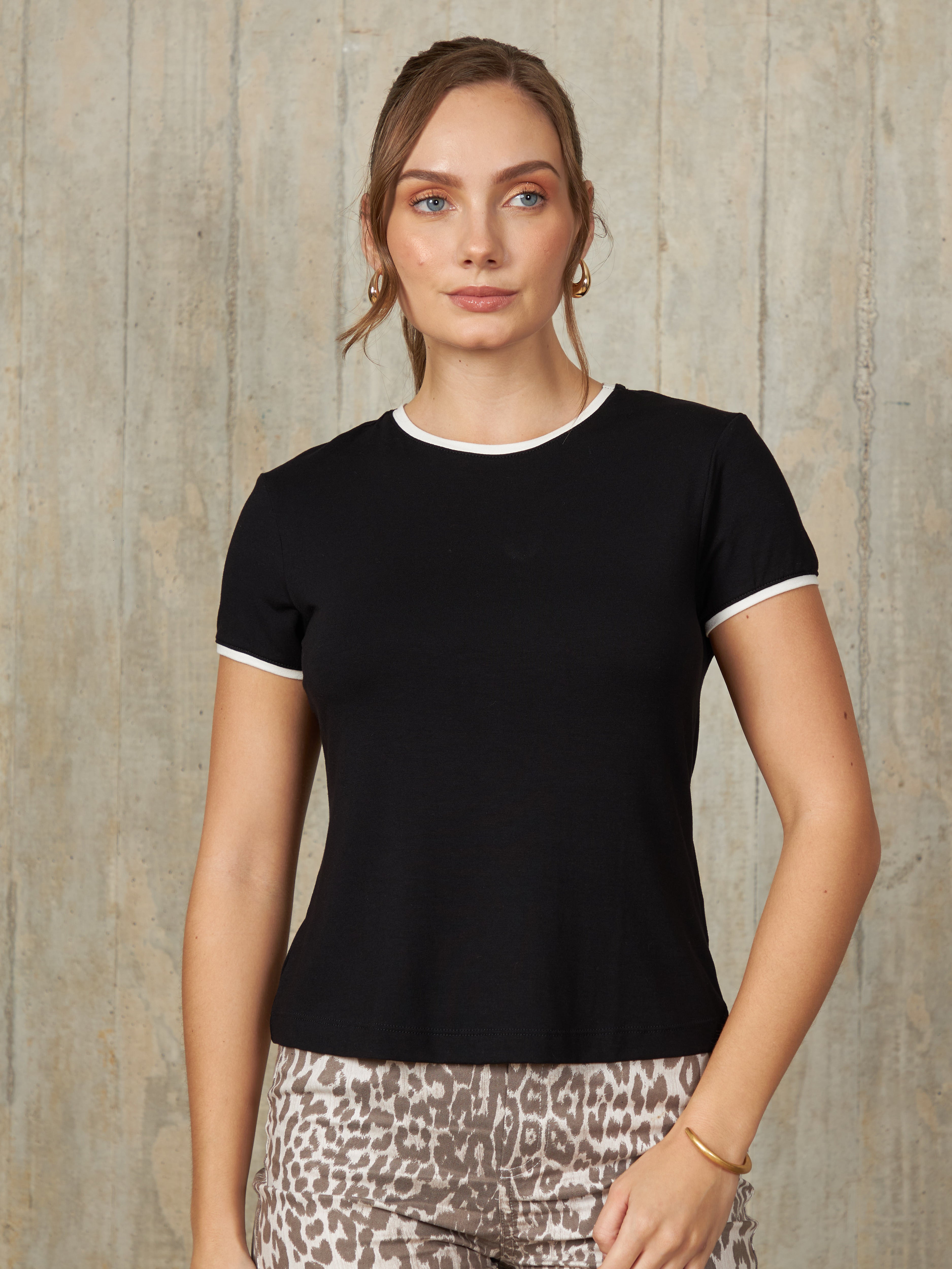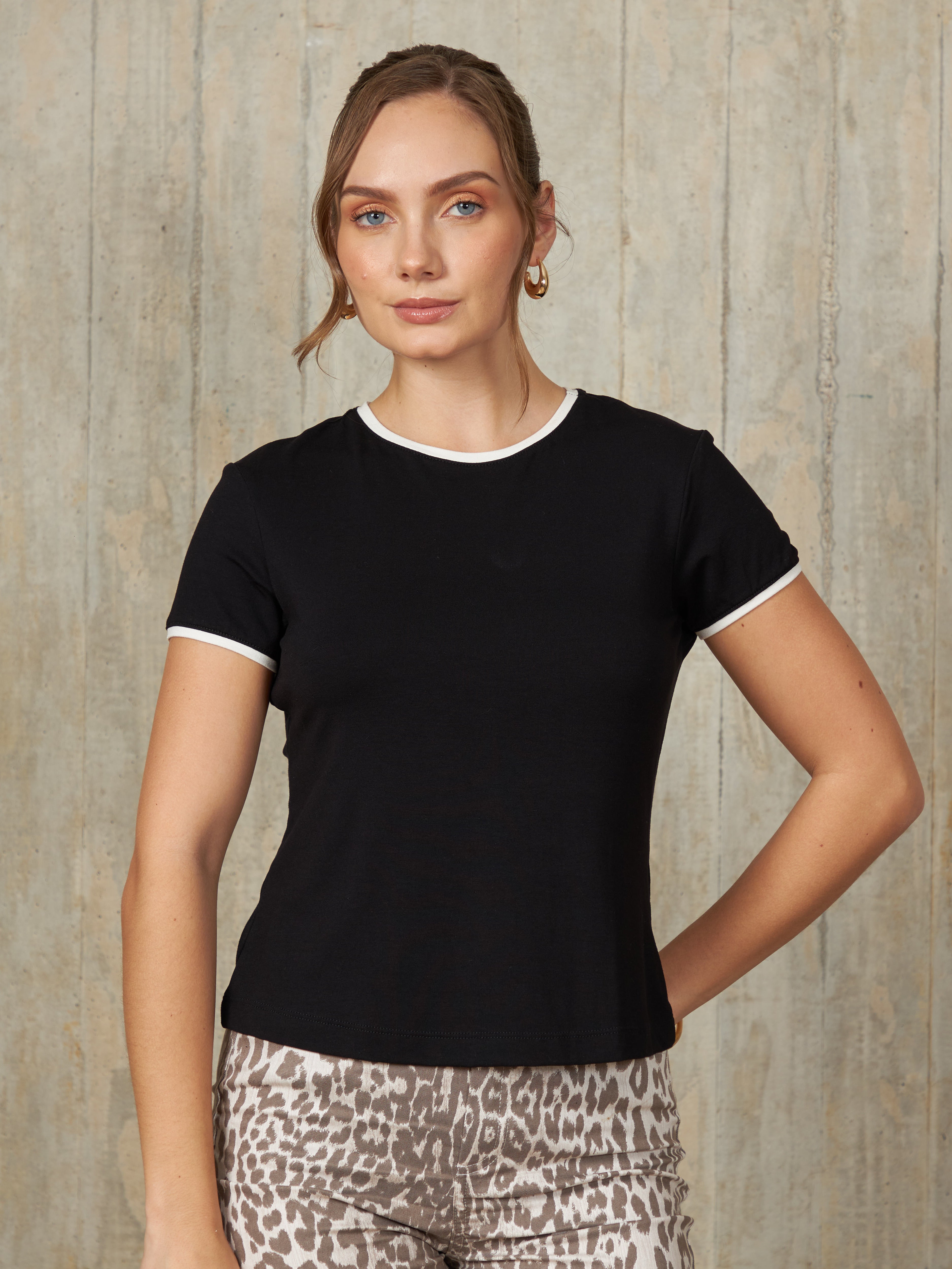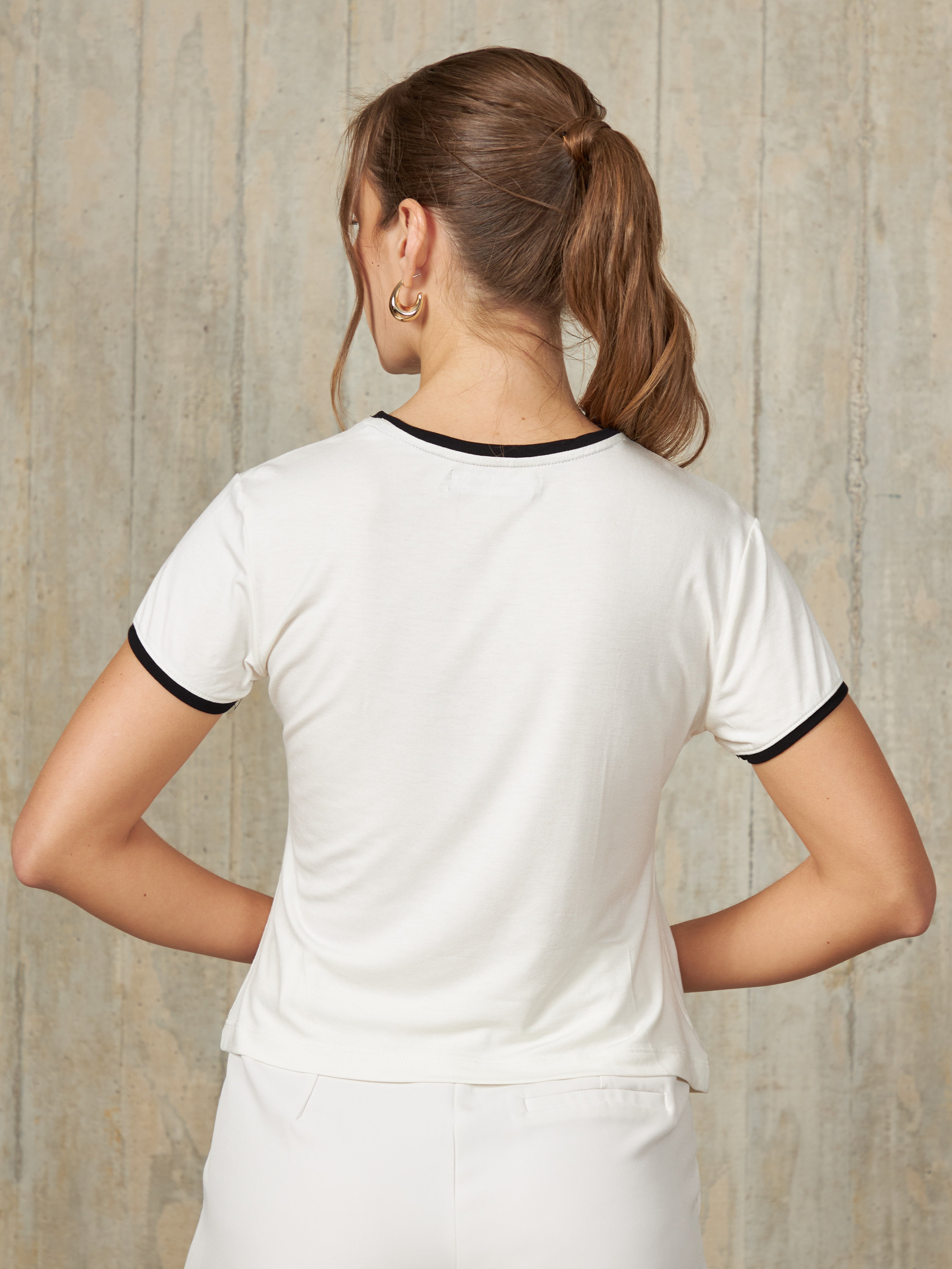 Polo básico de manga corta con corte recto y cuello redondo, diseñado para un ajuste cómodo y casual. Con un toque de color en bordes de las mangas y cuello.