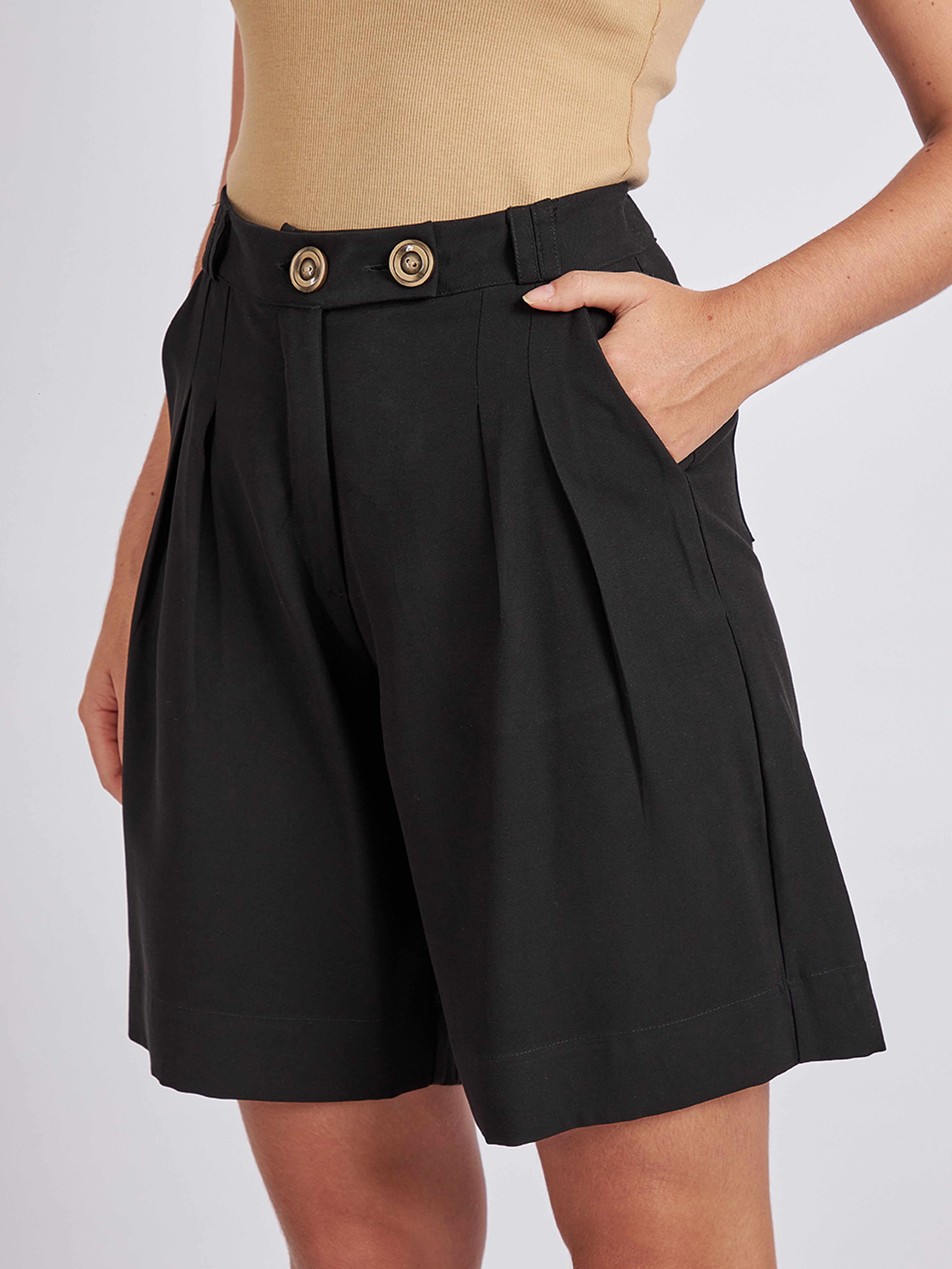 Short a la cintura, que cuenta con pliegues delanteros y bolsillos.