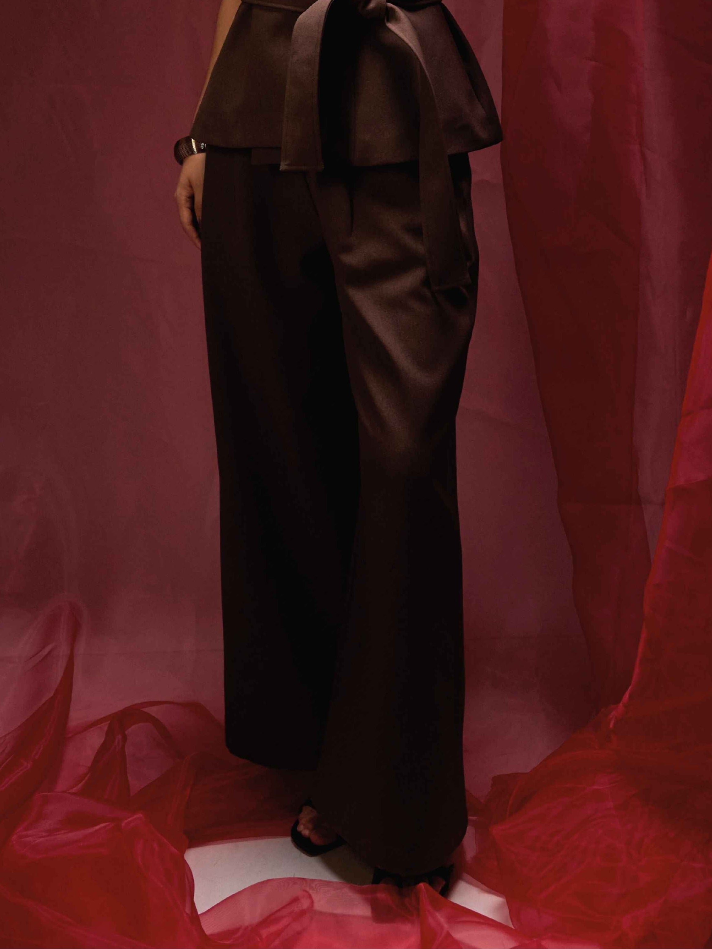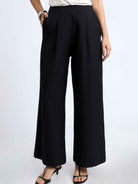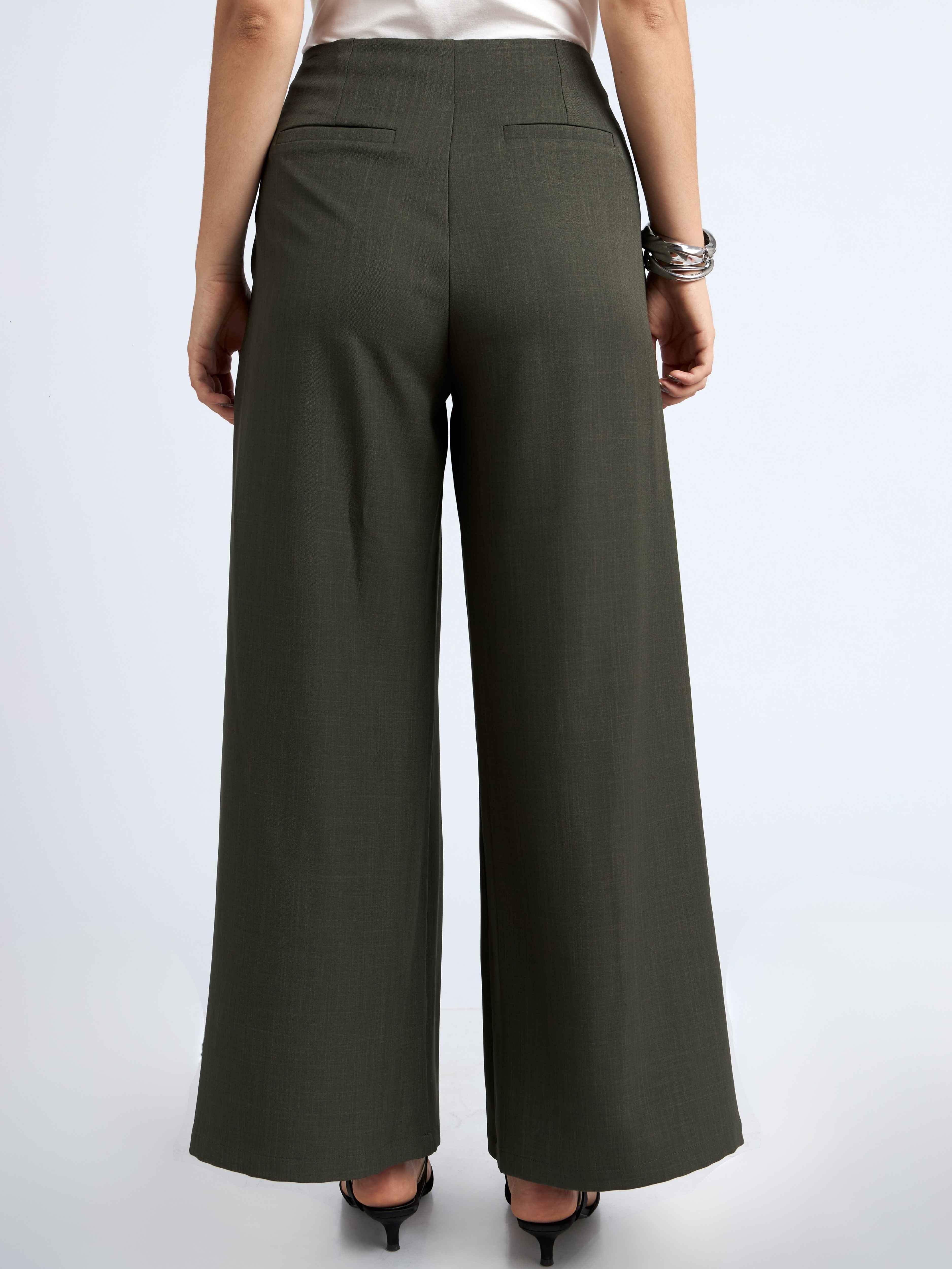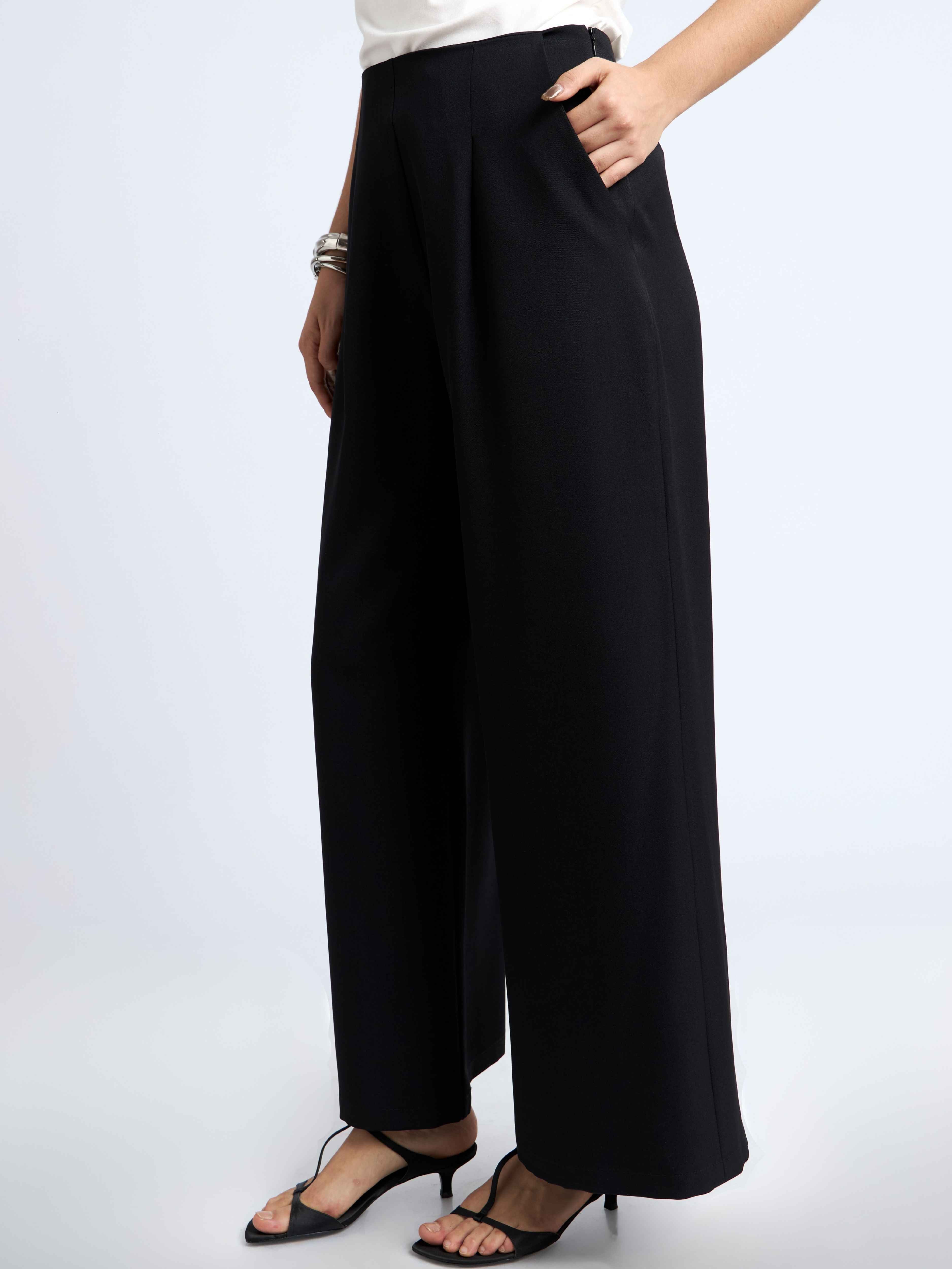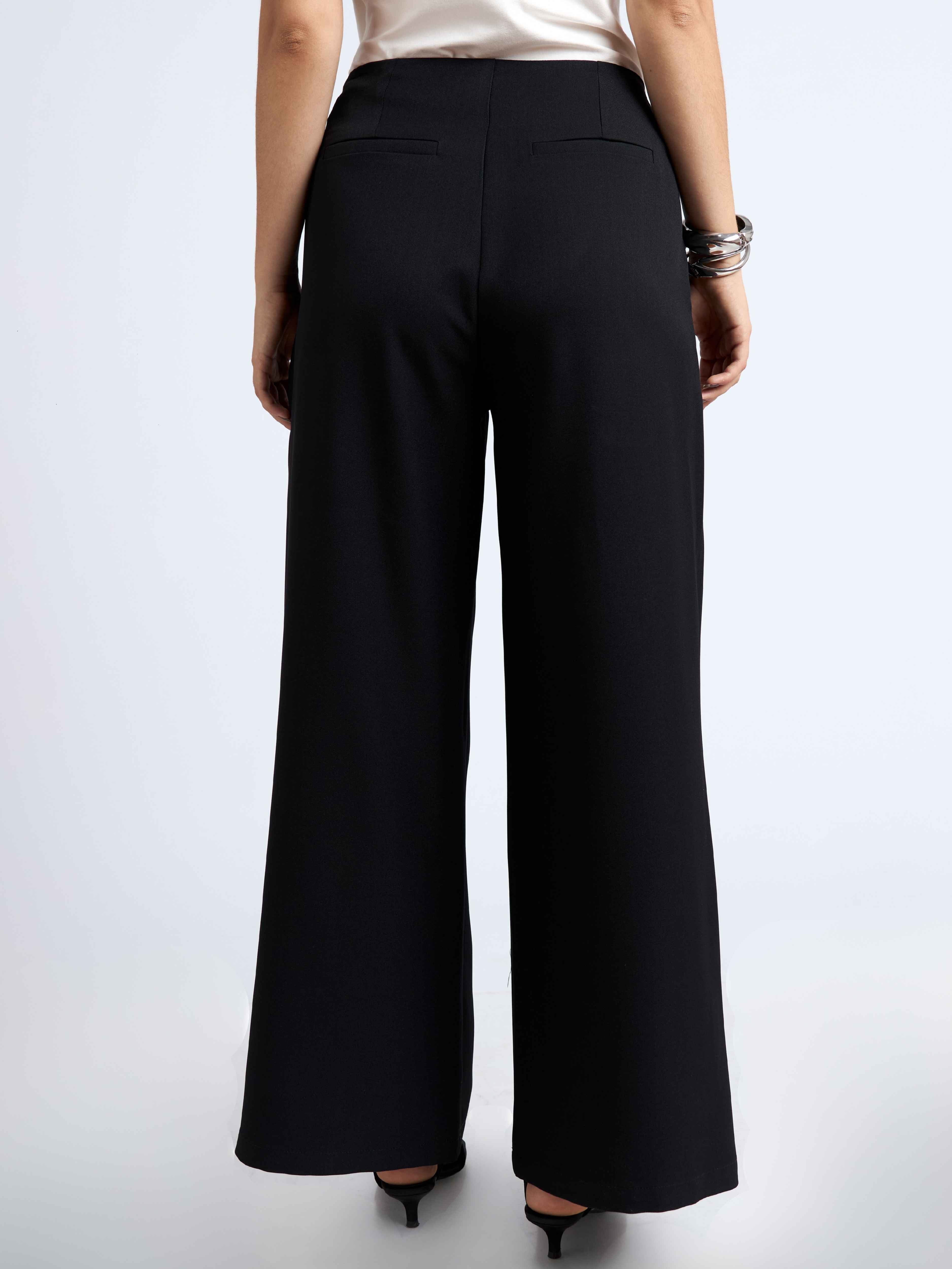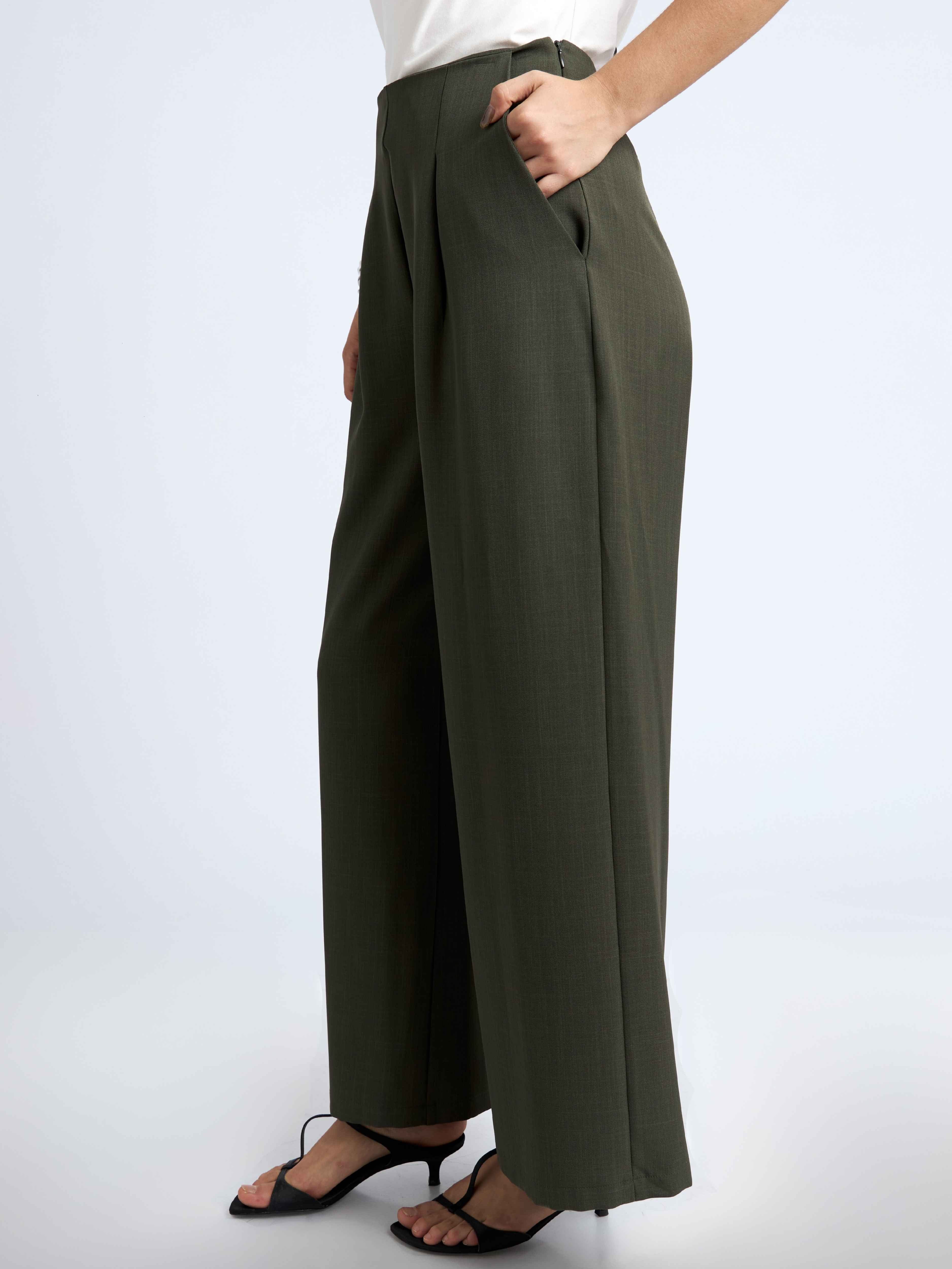 Pantalón fit recto, dos pliegues en la parte delantera y dos pinzas en la parte de la espalda. Con cierre invisible al lado izquierdo y bolsillos a ambos lados.