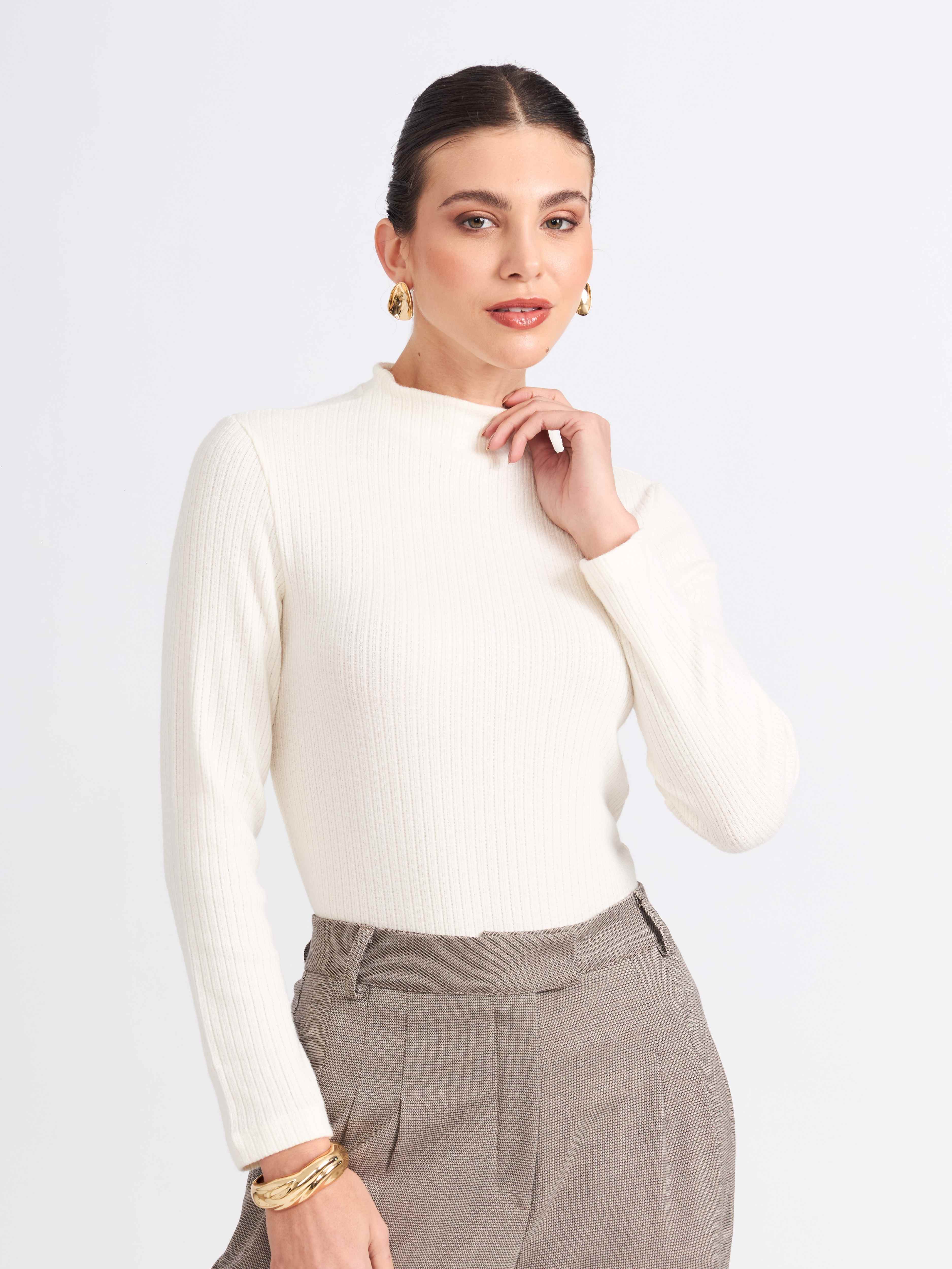 Cafarena básica de cuello cisne, con manga larga. Diseñado con una silueta que estiliza y se adapta facilmente al cuerpo. Una pieza esencial y versátil, perfecta para el uso diario.